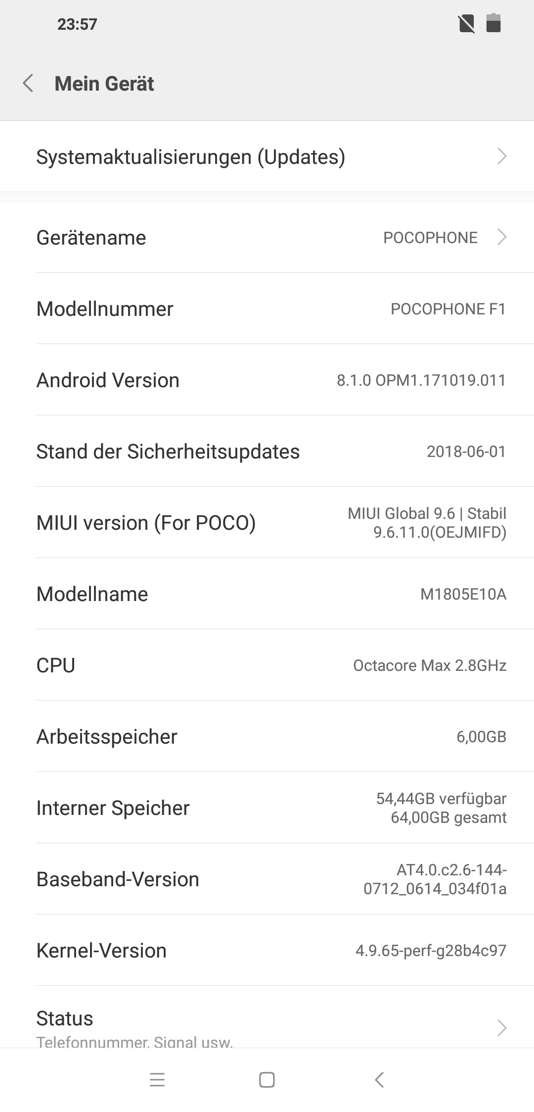 Xiaomi liefert das Pocophone F1 mit verschiedenen Speichergrößen aus. Bei der Ausführung mit 64 GByte stehen dem Nutzer 49,14 GByte für seine Daten zur Verfügung. Prozentual entspricht das 76,8 Prozent. Damit sind Software und Betriebssystem des Pocophone F1 besser, als beispielsweise beim HTC U12+ mit 68 Prozent oder dem Xperia XZ2 Premium mit 67 Prozent freiem Speicheranteil. Doch ein Blick unter die Haube erklärt den Vorsprung: Beim Pocophone F1 verzichtet Xiaomi auf nahtlose Updates und Upgrades , die das System im Hintergrund lädt und für die Aktualisierung vorbereitet.