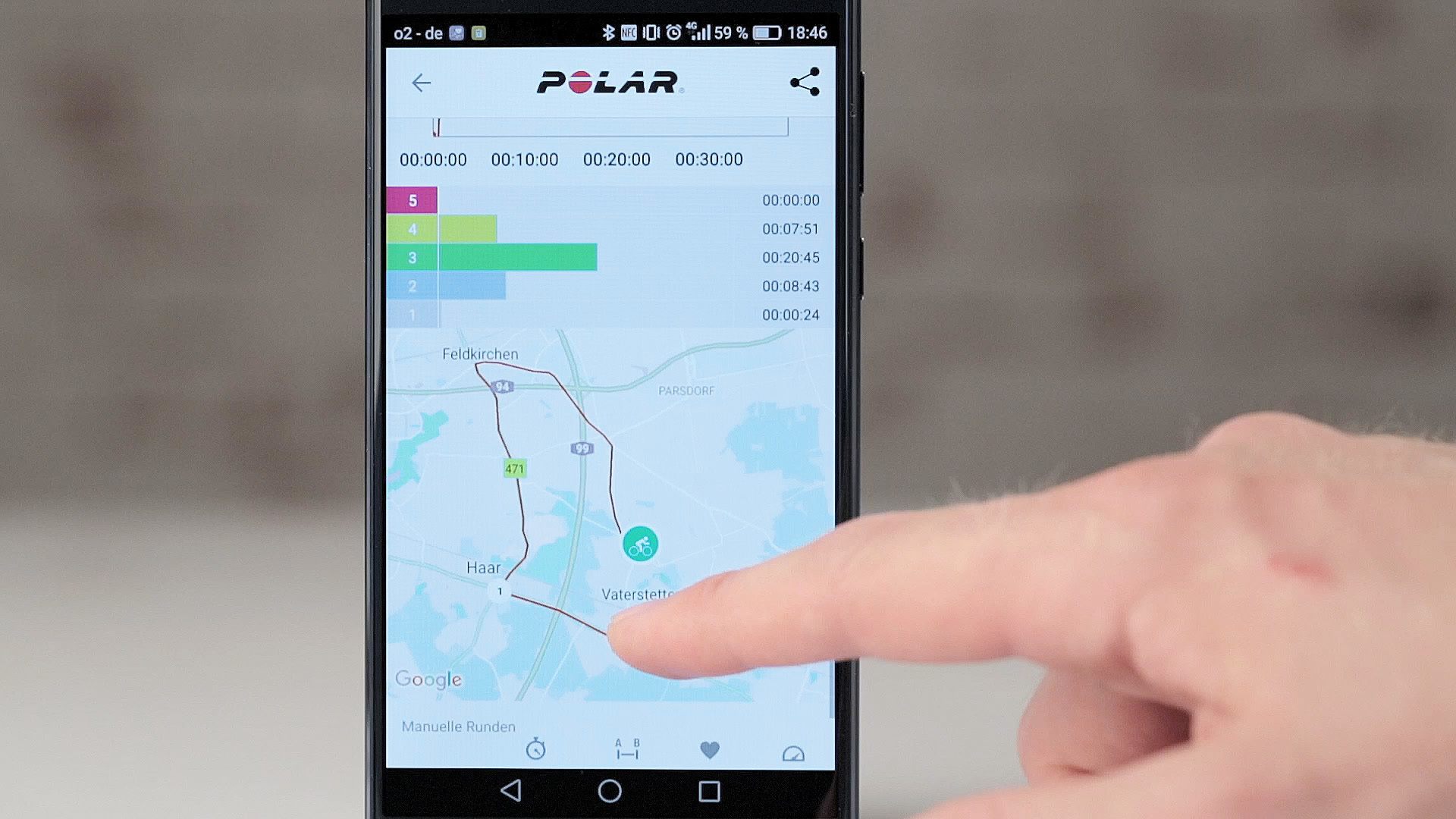 Wie es sich für eine aktuelle Sportuhr gehört, hat die Polar V800 einen Beschleunigungssensor an Bord – und vermisst damit unter anderem die Aktivitätsintensität des Trägers. Dabei unterscheidet die Uhr zwischen Liegen und Sitzen sowie Niedrig, Mittel und Hoch. Um sein Tagespensum zu erreichen, kann sich der Nutzer dann einer Kombination der unterschiedlichen Intensitäten bedienen. Um mein zugegebenermaßen recht hoch gestecktes Ziel zu erreichen, kann ich dann beispielsweise knapp eine Stunde Handball spielen – oder zweieinhalb Stunden Tischtennis oder gut acht Stunden Dart.