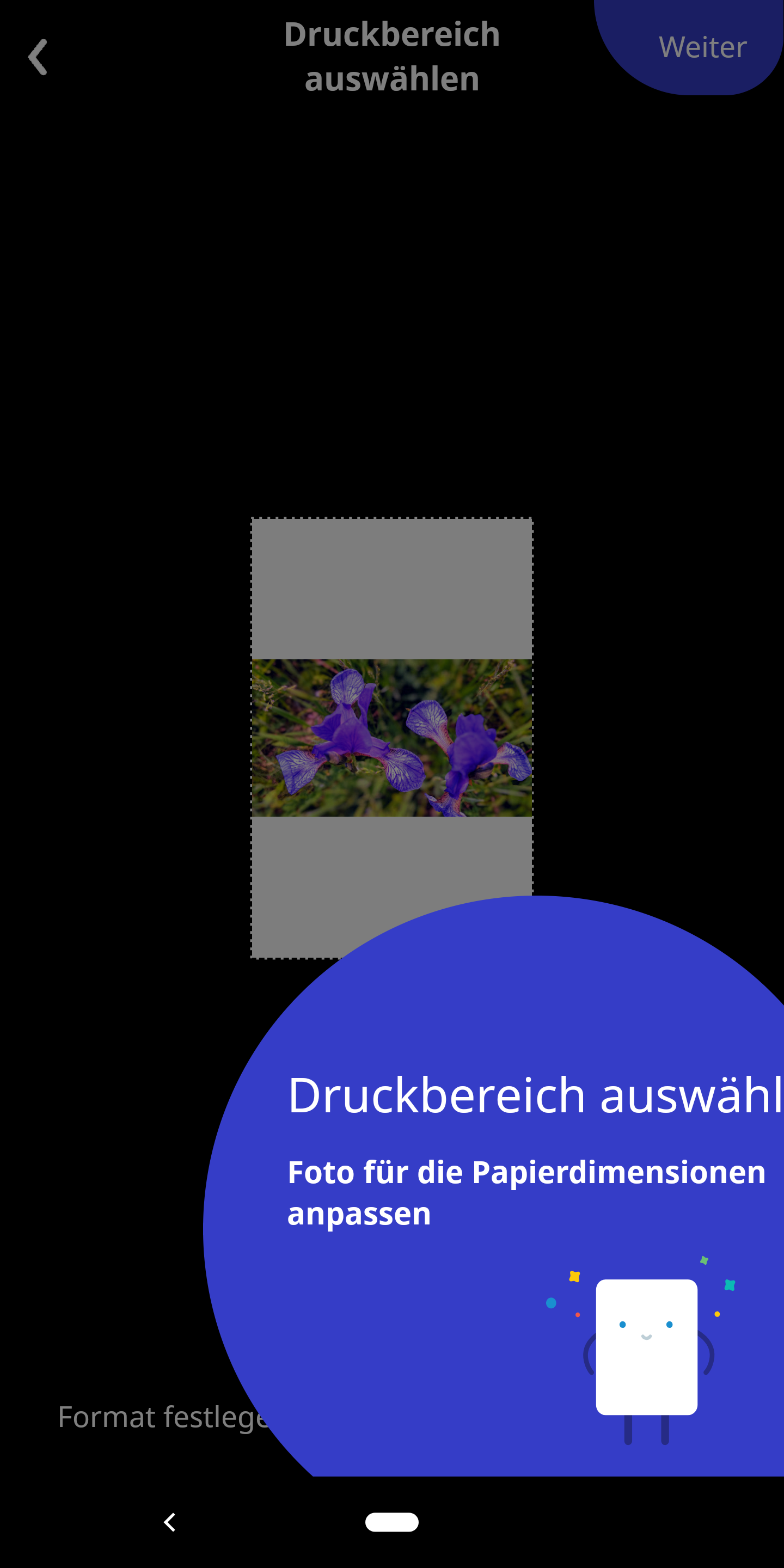 Nach der Auswahl des zu druckenden Bildes wählt man einen Bildschirmausschnitt. Komisch: Querformatbilder werden immer so in das Hochkant-Bild eingesetzt, dass oben und unten dicke weiße Streifen entstehen. Das ist unnötig und nervig. Die App des HP Sprocket Plus (Testbericht) erkennt automatisch, in welchem Format das Bild aufgenommen wurde und passt es so an, dass im fertigen Druck kein weißer Rand zu sehen ist und nur so wenig wie möglich vom Bild abgeschnitten wird. In der Polaroid App müssen Nutzer das Bild manuell drehen und via Zwei-Finger-Zoom-Geste die Größe anpassen. Auch das funktioniert häufig nicht so wie es sollte und stellte uns sowohl unter Android, als auch unter iOS immer wieder vor Probleme.