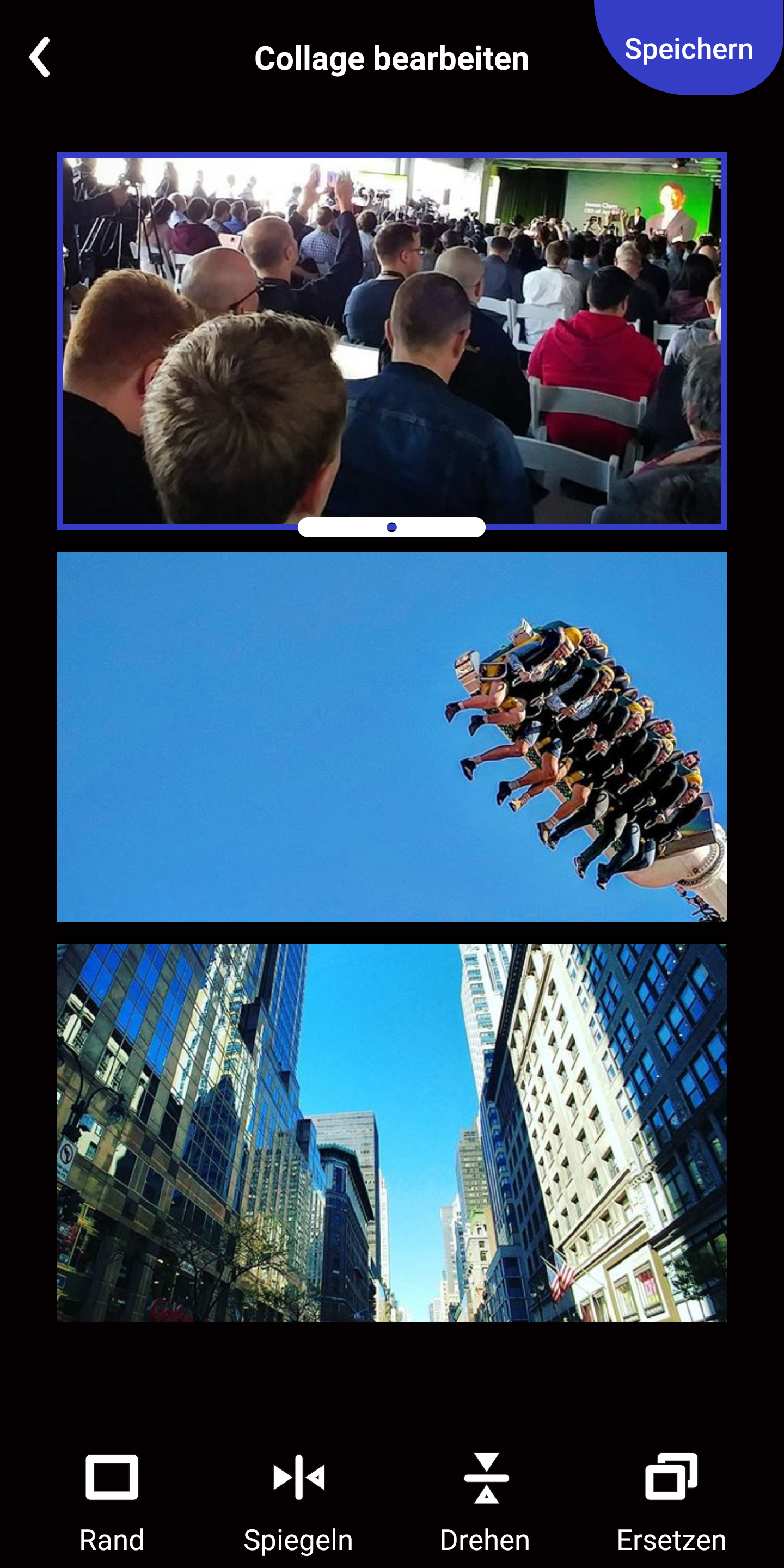 Vogelwild wird es, falls jemand auf die Idee kommt, eine Collage zu basteln. Wir empfehlen hier die Erstellung durch eine externe App und das Importieren des fertigen Bildes in die Polaroid-Zip-App.
