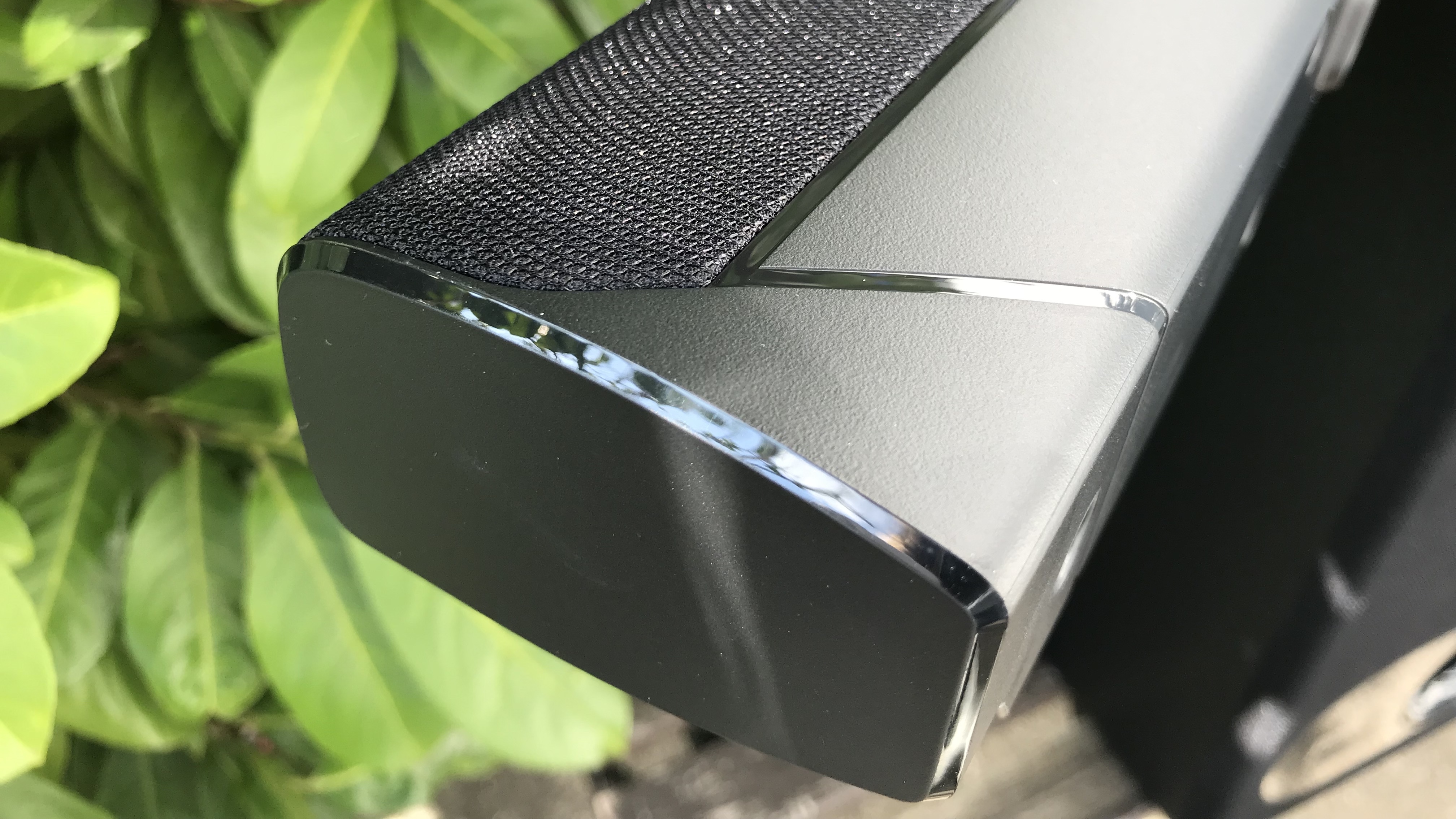 Hier punktet die Polk Signa S2 sowohl mit der sehr flachen und kompakt gehaltenen Soundbar, wie auch dem ebenfalls gut im Wohnbereich integrierbaren Subwoofer. Das in schwarz gehaltene Signa-S2-System gibt sich mit abgerundeten Kanten eher elegant denn futuristisch. Dazu trägt sowohl die Stoffbespannung bei, die dem Ganzen eine gewisse Leichtigkeit verleiht, wie auch der an den Seiten auf Hochglanz polierte Zierring, der einen Hauch edler Noblesse ins Spiel bringt. Die unauffällige Integration entweder direkt per Wandmontage unterhalb des TV oder darunter auf dem Sidebord gelingt ihr aufgrund ihrer flachen Bauweise einfacher als anderen, höher bauenden Soundbars.