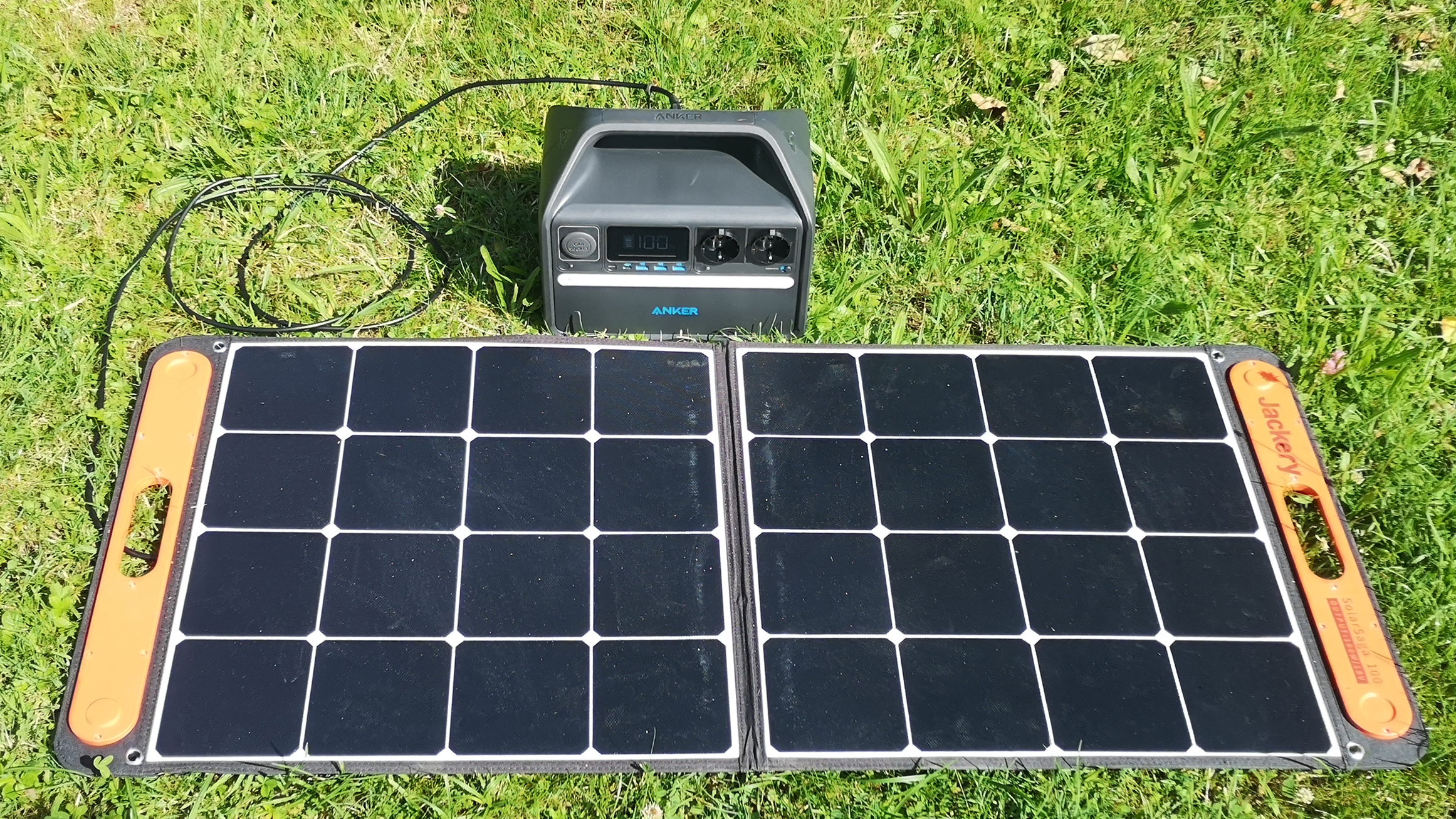 Die Powerstation ist im Auslieferungszustand nur zu dreiviertel gefüllt und so laden wir sie zunächst mit dem mobilen Solarpanel Solar-Saga 100 auf, welches wir aus dem Test der Jackery Explorer 1000 (Testbericht) in der Redaktion haben. Anker setzt hier auf den identischen 8-mm-Stecker, der in dieser Form auch etwa bei der Bluetti Poweroak EB70 (Testbericht) verwendet wird. Die meisten No-Name-Anbieter aus chinesischen Onlineshops setzen stattdessen auf verschiedene Rundsteckverbinder mit deutlich kleinerem Durchmesser.