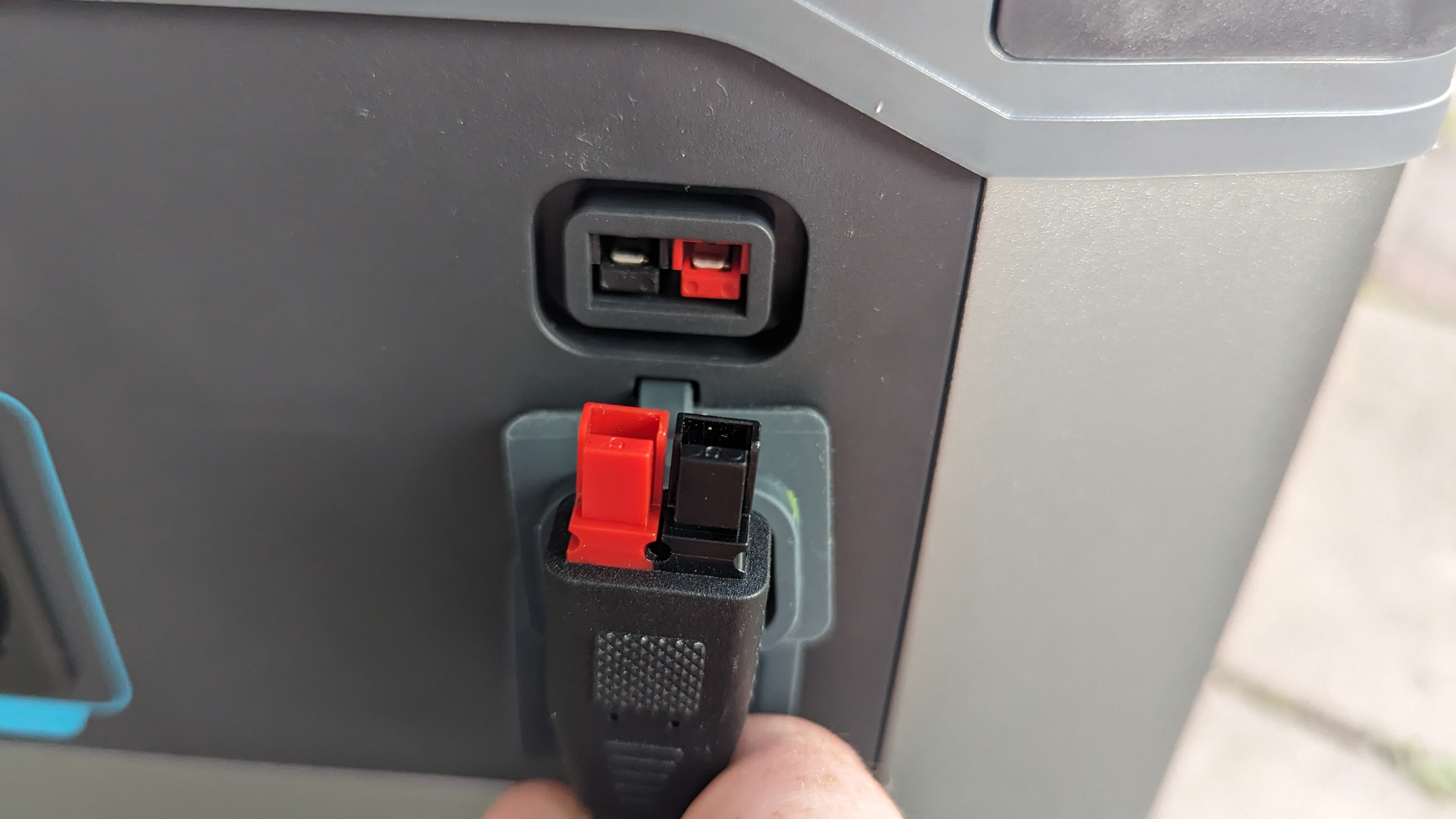 Aufladen klappt dank integriertem Netzteil ganz ohne Ladegerät über ein gewöhnliches Kaltgerätekabel mit 3-Pin-Stecker. Für das Laden per Solarpanel steht ein Anderson-Stecker zur Verfügung, wobei Flashfish hier aus unerfindlichen Gründen Plus- und Minus-Pol vertauscht hat. Damit passt viel Zubehör im Bestand nicht, Flashfish bietet aber ein passendes Anderson-zu-MC4-Adapterkabel an. Ansonsten lassen sich bei einigen Kabeln die Pole durch Verdrehen des Kabels tauschen, sodass sie wieder passen.