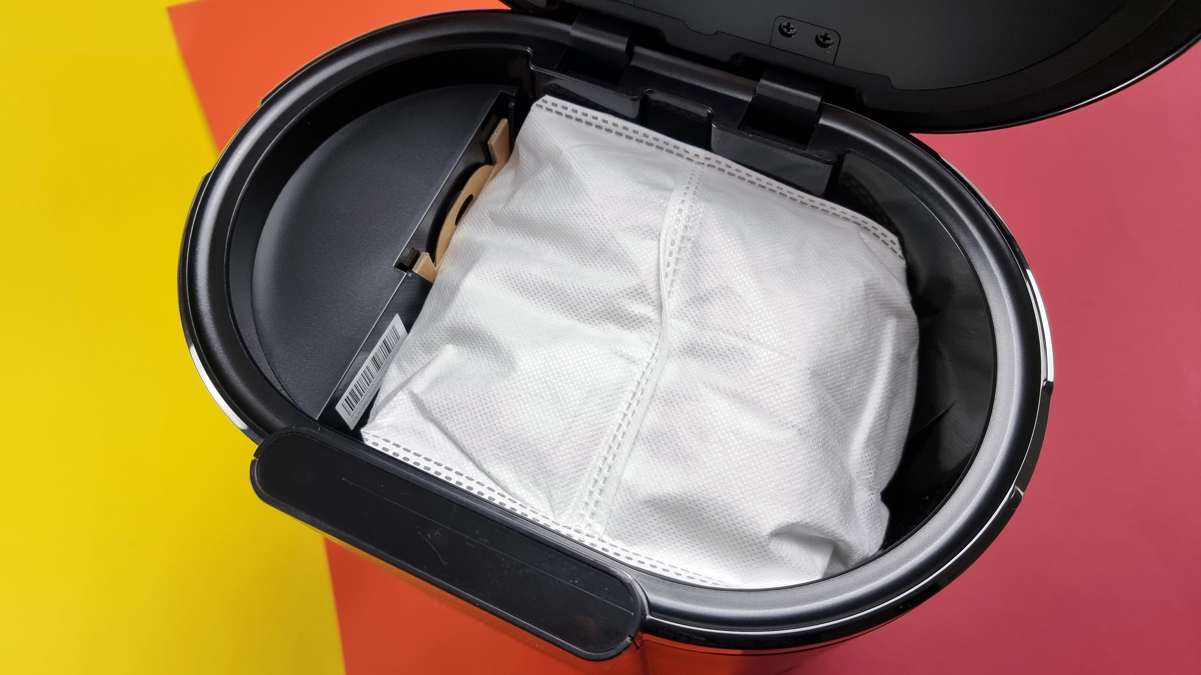 Der Kombibehälter nimmt 280 ml Staub auf, das ist nicht viel. Hinzu kommen aber auf Wunsch auch noch 300 ml Wasser, was den kleinen Staubtank erklärt. Entleeren lässt er sich manuell ohne Probleme, dank Schmutzrückhalteklappe und überstandfreiem Inneren gelingt die zielgenaue Entleerung einfach und komfortabel – auch wenn man das wegen der Absaugstation eigentlich nie muss. Die saugt ordentlich, aber nicht ganz rückstandsfrei den Behälter leer und sammelt den Schmutz in einem Papierbeutel. Das ist hygienischer, sorgt aber auch für mehr Abfall als bei einem beutellosen Sauger.
