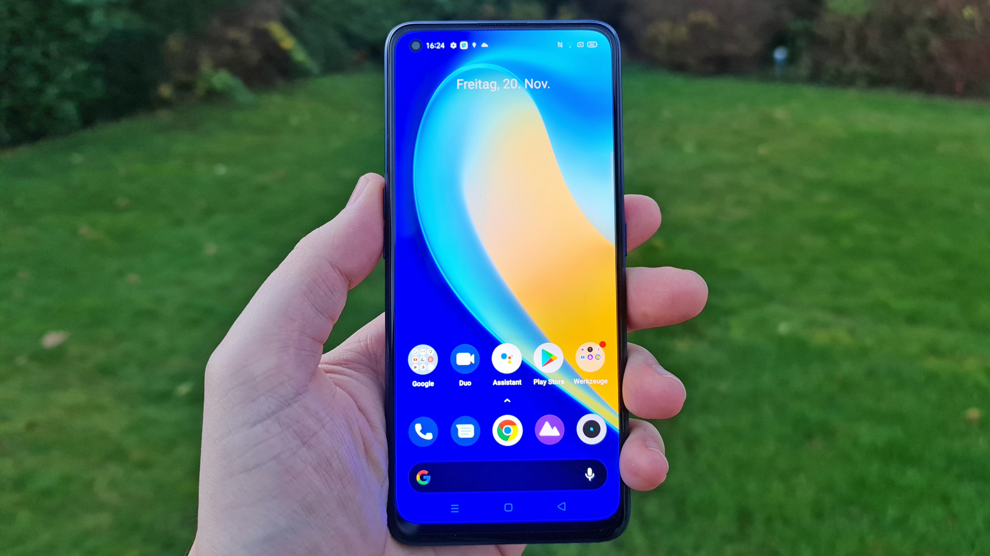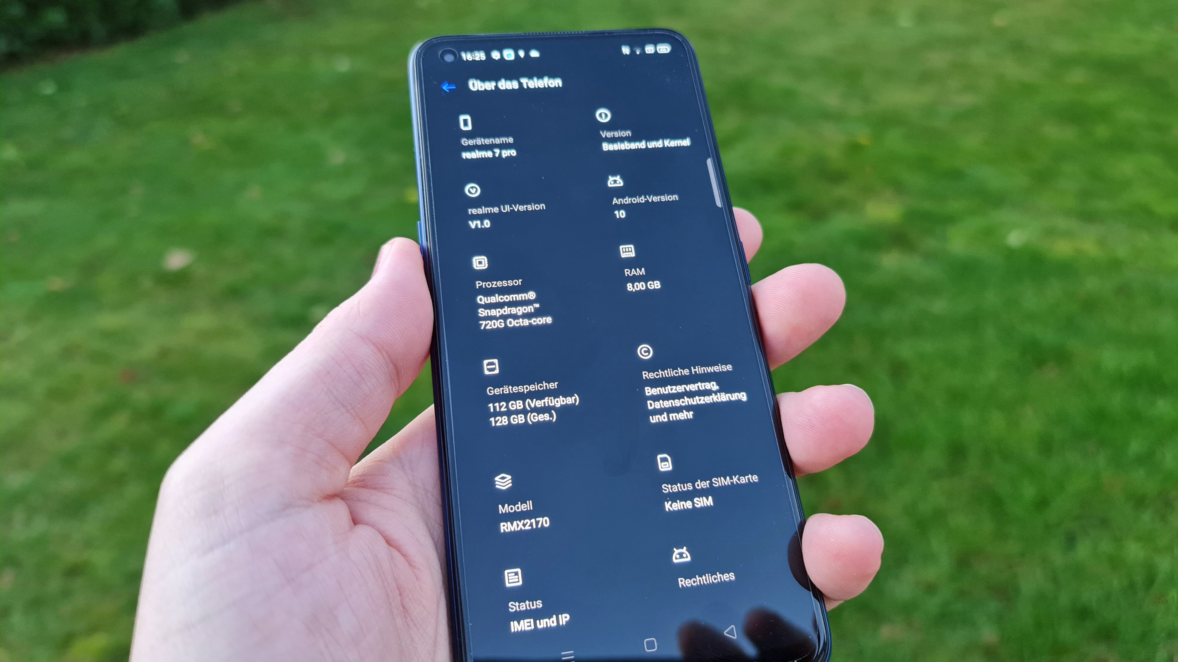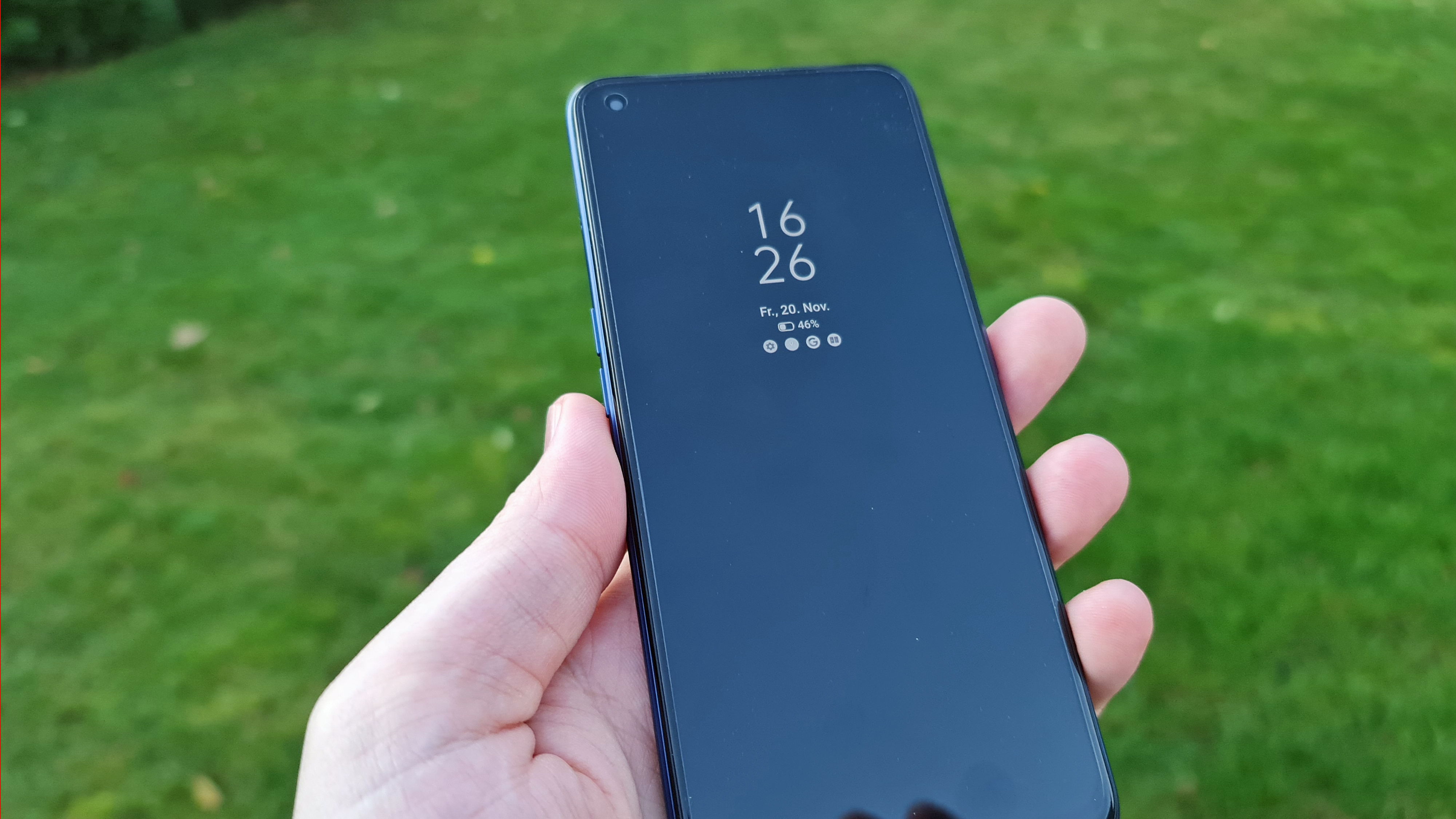 Von der Bildwiederholungsrate abgesehen gibt es gerade auch mit Blick auf den Verkaufspreis des Realme 7 Pro am Display nichts auszusetzen. Die Bildschärfe ist dank erweiterter Full-HD-Auflösung (2400 × 1800 Pixel) sehr gut, die Helligkeit liegt bei sehr guten 600 cd/m² im Automatikmodus – das liegt gar nicht so weit unter dem Niveau des kürzlich getesteten Huawei Mate 40 Pro (Testbericht) für mehr als dreimal so viel Geld. Dank der guten Kontraste und der tollen Blickwinkelstabilität gibt es damit auch im Freien keine Probleme mit der Ablesbarkeit. Vorteil OLED außerdem: Das Realme 7 Pro verfügt über ein praktisches Always-on-Display.