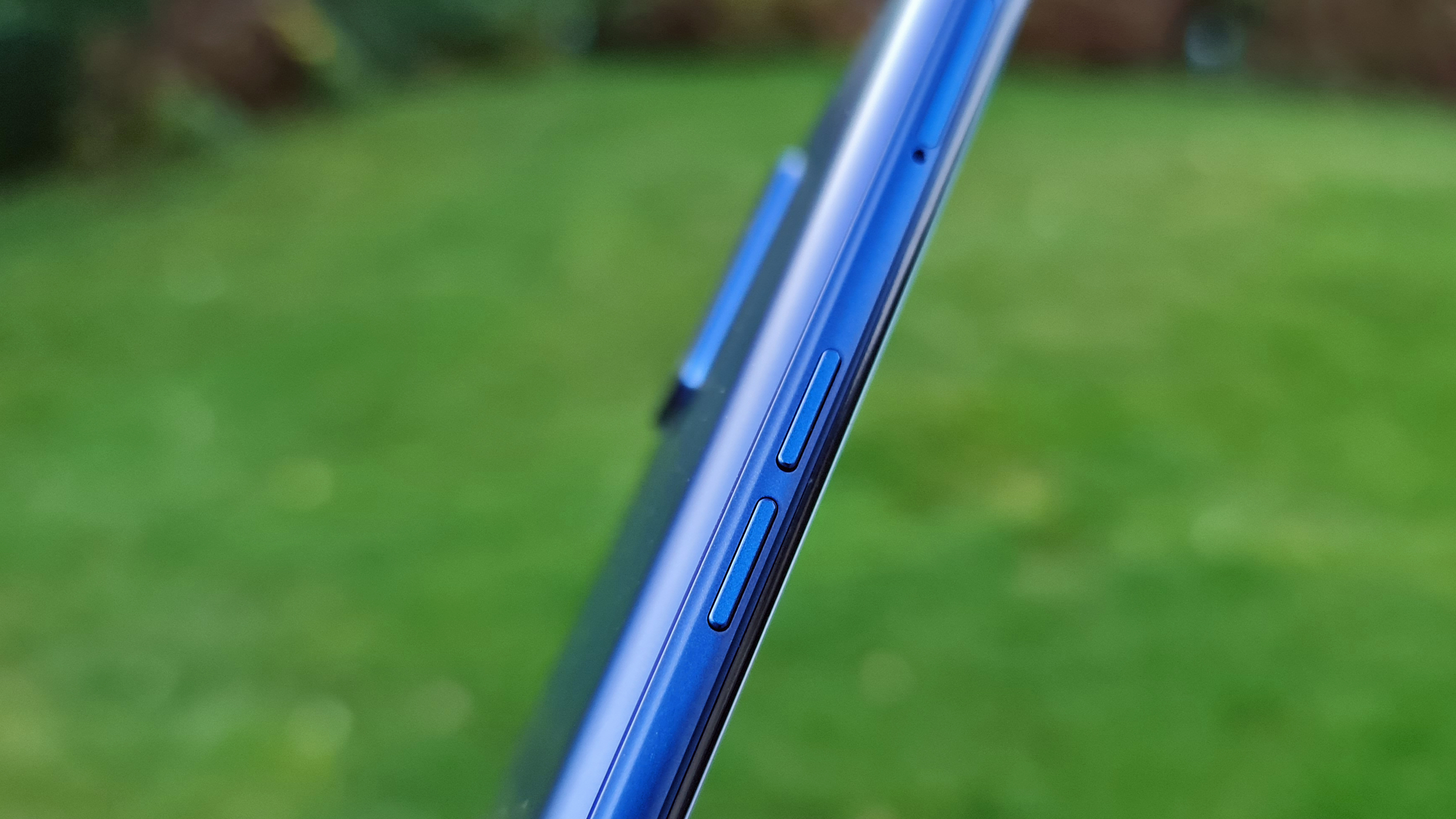 Der Front sieht man den vergleichsweise niedrigen Preis von 299 Euro in der UVP bei genauerem Blick durchaus an. Zwar ist der Rahmen um das Display nicht übermäßig breit, vor allem unterhalb des Displays haben wir das allerdings schon deutlich schmaler gesehen. Dank Punchhole-Notch im oberen linken Eck sieht das Smartphone aber insgesamt ausreichend modern aus. In der Hand liegt das Realme 7 Pro sehr angenehm, auch wenn hier nicht nur Kunststoff statt Glas für die Rückseite, sondern auch die Verwendung des günstigeren Werkstoffes für den Rahmen auffällt. Wegen der sanften Rundungen an allen hinteren Kanten auf der einen sowie für ein heutiges Smartphone vergleichsweise geringen Maßen (161 × 74 × 8.7 Millimeter) und niedrigem Gewicht (182 Gramm) auf der anderen Seite macht sich das Smartphone im Alltag sehr angenehm. An der Verarbeitung gibt es nichts auszusetzen.