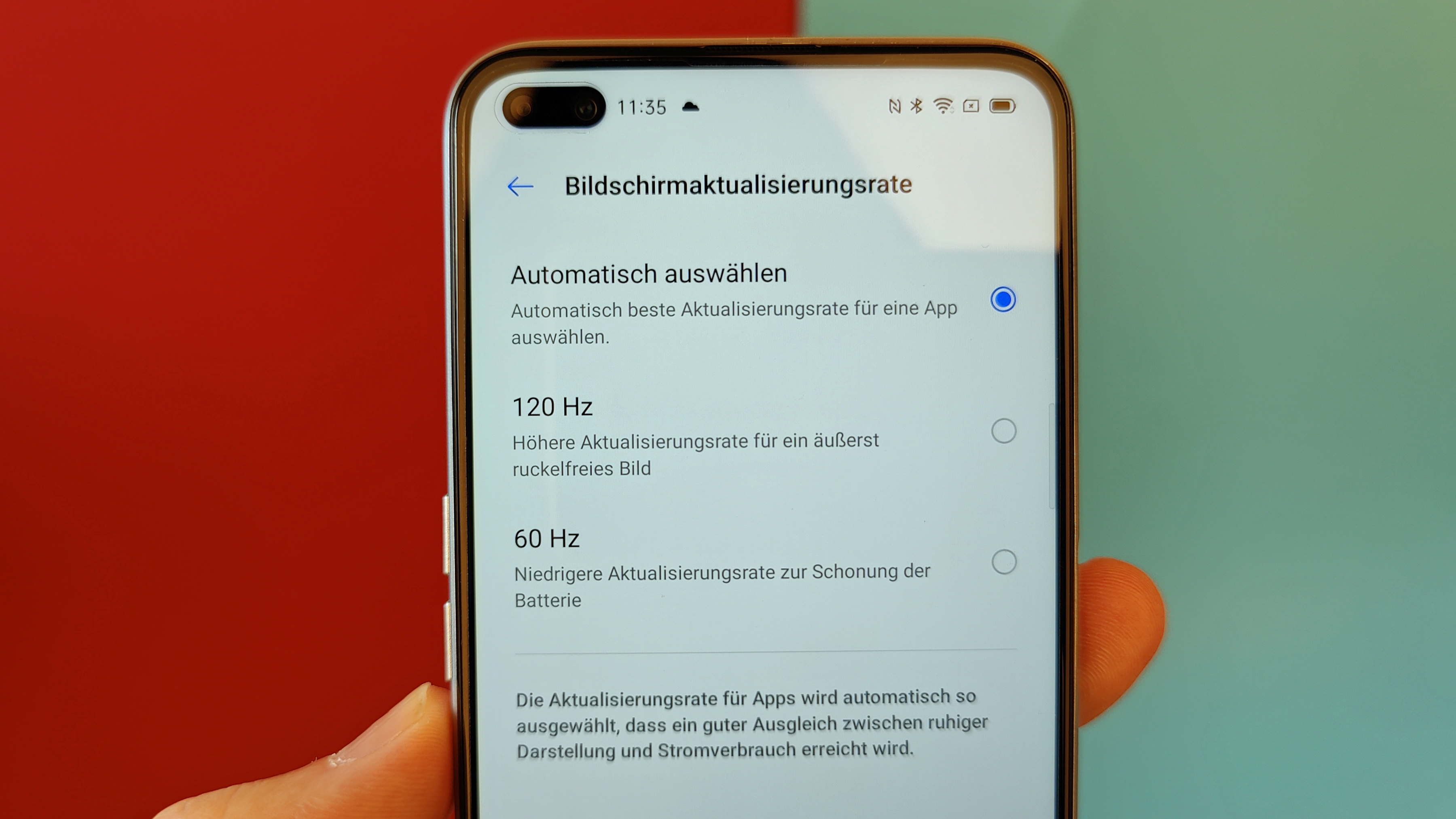 Mangels OLED-Technik gibt es zwar kein Always-on-Display, typische Features wie ein Lesemodus mit Blau-Reduktion, Einstellungsmöglichkeiten für Farbtemperatur und Sättigung sind aber vorhanden, Highlight ist ein anderes Extra: Der Screen zeigt bis zu 120 Hertz, also 120 Bilder pro Sekunde an. Dadurch werden bewegte Inhalte besonders flüssig dargestellt, das können bislang noch nicht übermäßig viele Smartphones. Der Nutzer hat dabei die Wahl zwischen manuell eingestellten 60, 90 und 120 Hertz oder einem Automatikmodus.