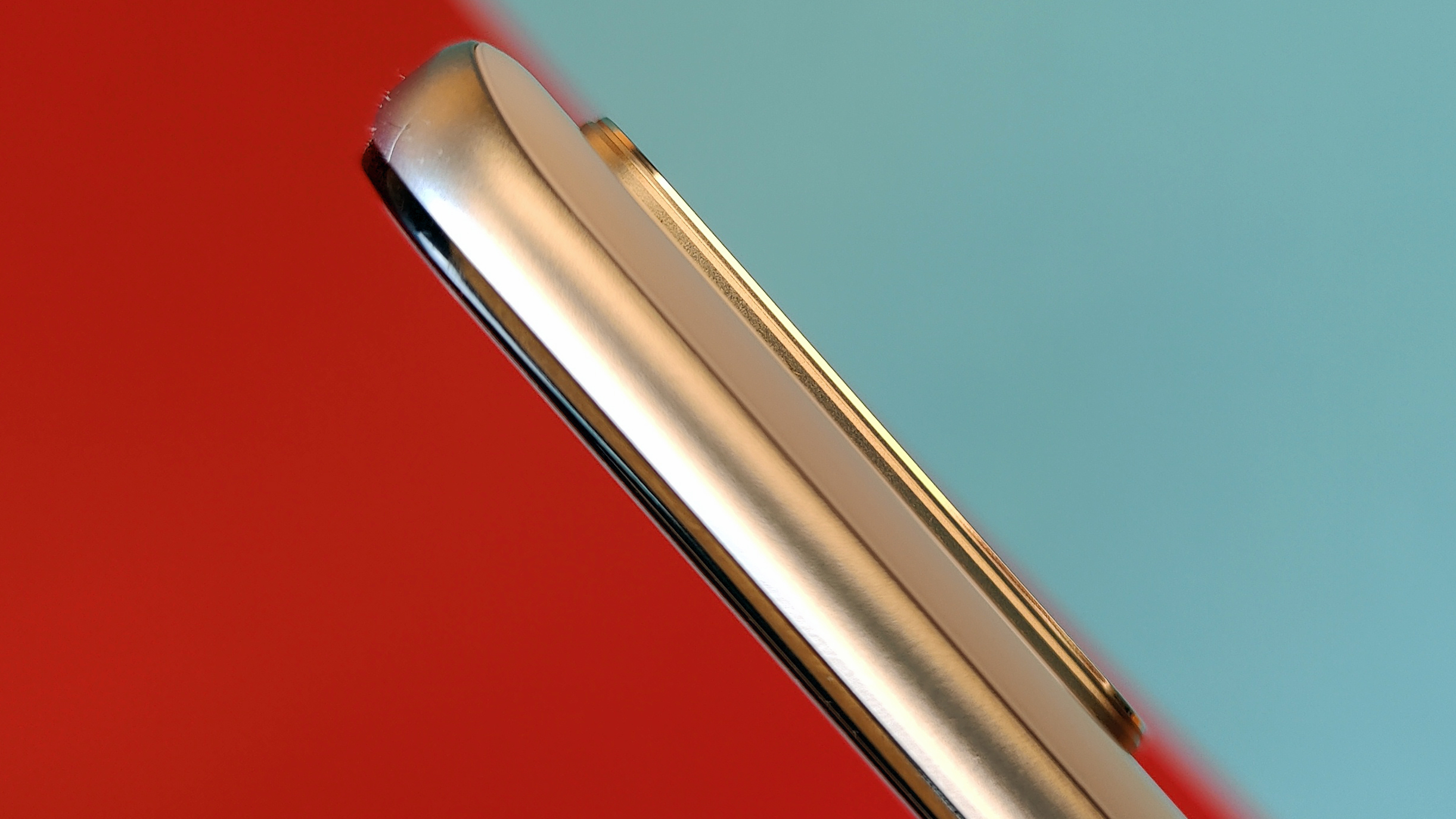 Für gelungene Ablenkung sorgt das hübsche Lichtspiel der Rückseite. Bei langsamen Bewegungen fließen bei unserem perlmutt-farbenen Testmodell dezente Reflexions-Wellen diagonal über das matte Gorilla Glas 5 – das sieht richtig hochwertig und edel aus. Leider verflüchtigt sich dieser Eindruck zumindest zum Teil, wenn man auf die Rückseite klopft. Denn das klingt erschreckend hohl und passt bestenfalls zu einem Smartphone für 150 Euro. Zumindest bleiben dank des matten Finish der Rückseite keine Fingerabdrücke zurück und wegen der sanften Rundungen liegt das Modell trotz Größe und Gewicht angenehm in der Hand. Eine Benachrichtigungs-LED gibt es übrigens genauso wenig wie eine IP-Zertifizierung.