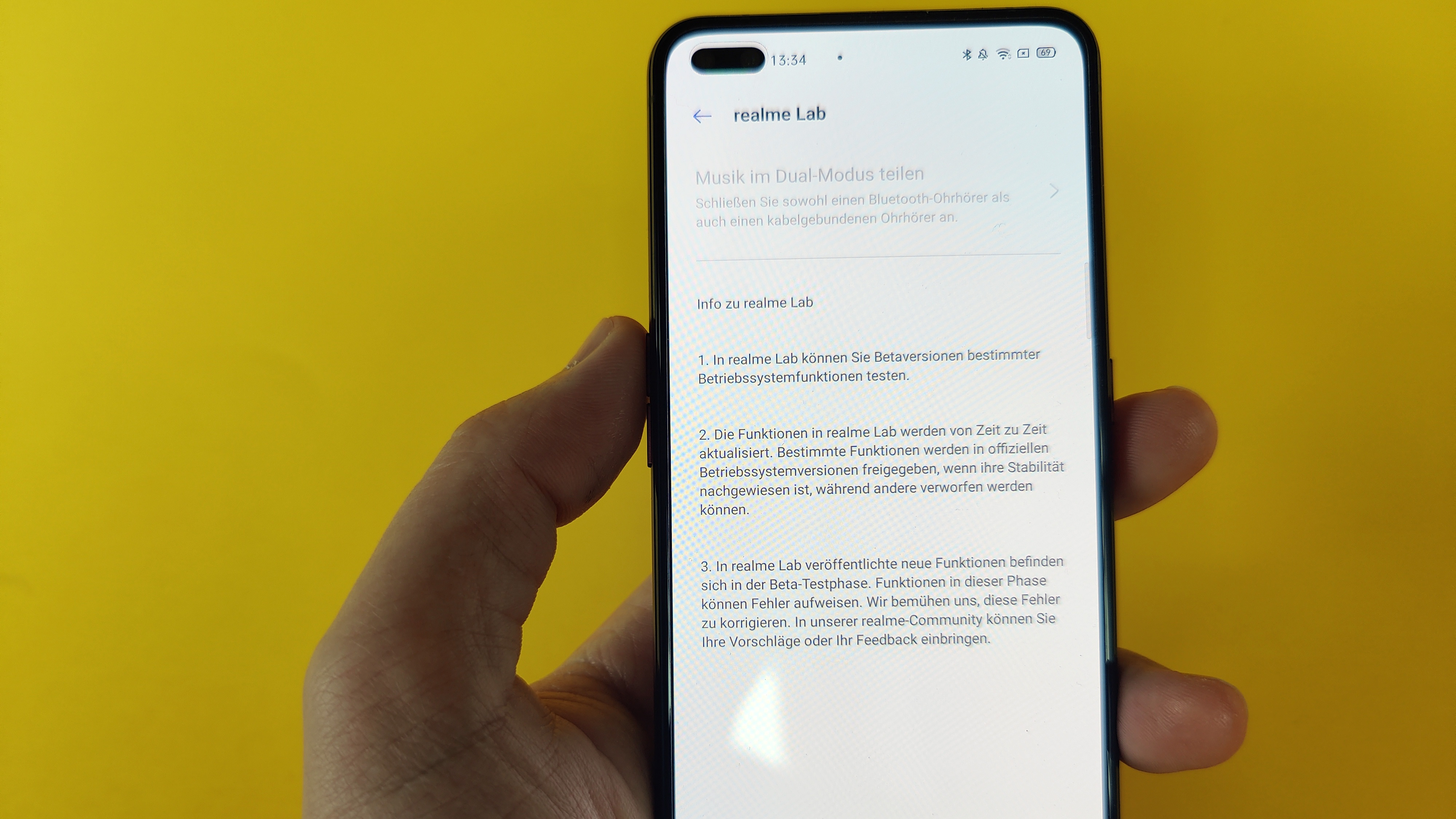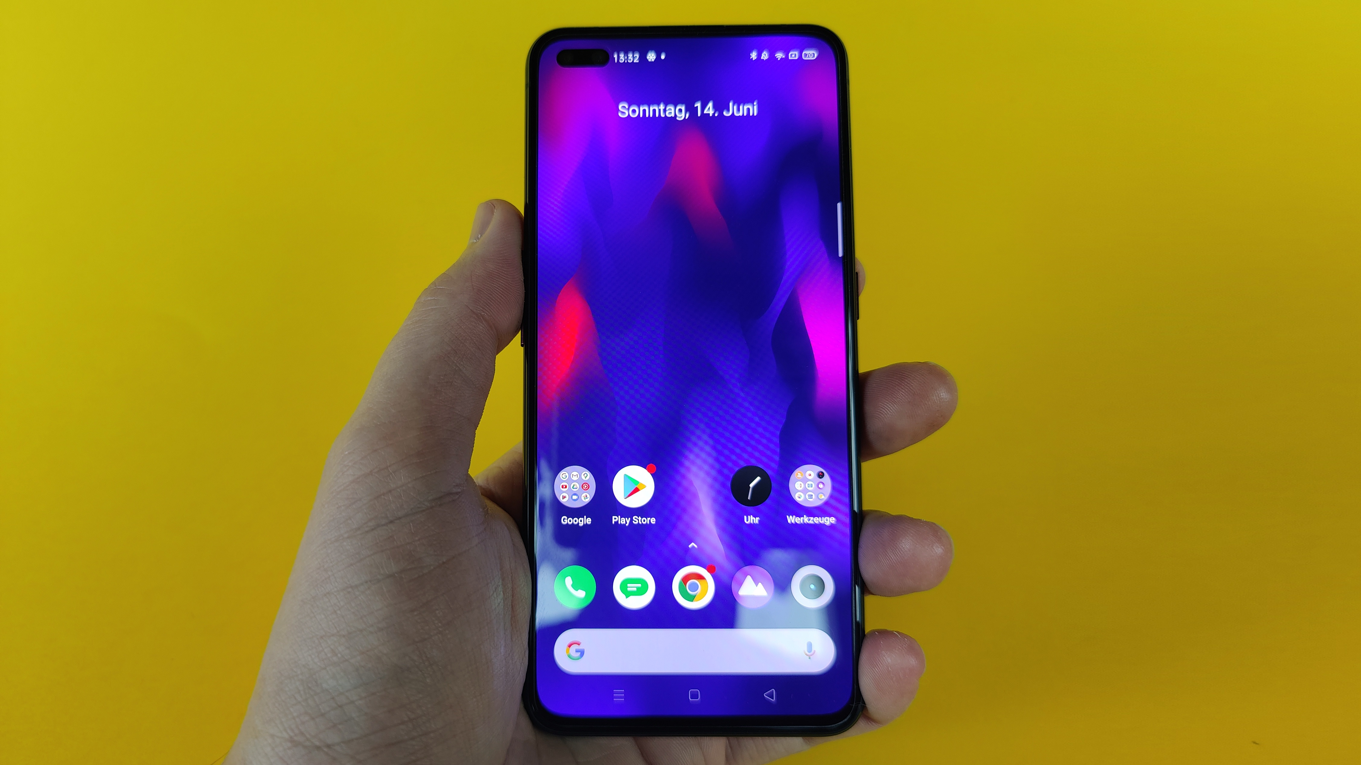 Ebenfalls klasse: Das Panel bietet 90-Hz-Wiedergabe, stellt also 90 statt der sonst üblichen 60 Bilder pro Sekunde dar. Das macht sich vor allem beim Scrolling in Browser und Menüs sowie bei Spielen bemerkbar, sofern diese 90 Hertz unterstützen. Auch hier bieten manche Wettbewerber wie das Oneplus 8 Pro (Testbericht) inzwischen mit 120 Hertz schon mehr, beim zuvor genannten Samsung-Modell ist das aber trotz nomineller 2K-Auflösung auf erweiterte Full-HD-Auflösung beschränkt. Das Realme-Topmodell stellt schon ab Werk „nur“ 2400 × 1080 Pixel dar, da erübrigen sich solche Unterscheidungen zum Glück. Das reicht mit seinen fast 400 PPI ohnehin aus, um ein scharfes Bild zu gewährleisten.