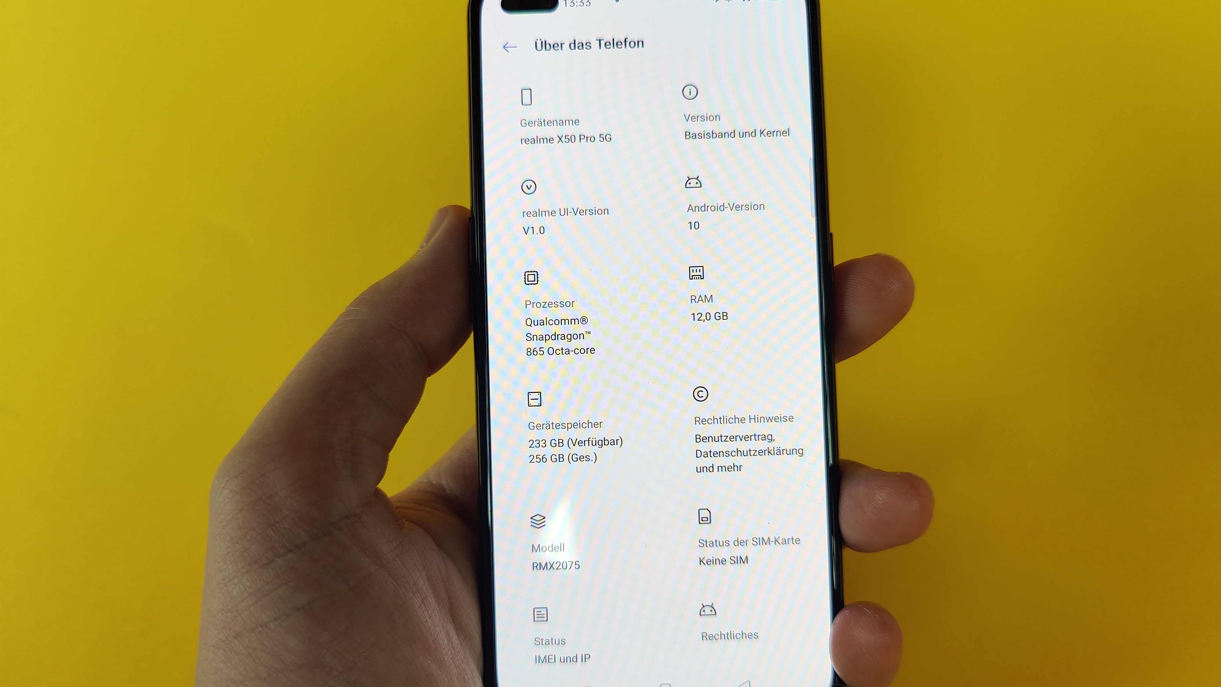 Dieser Vergleich entbehrt nicht einer gewissen Ironie, denn Spötter könnten ihn nicht nur auf die Verarbeitungsqualität, sondern auch auf die Bautiefe und das Gewicht beziehen. Tatsächlich ist das Realme-Topmodell mit rund 9 Millimeter und seiner bauchigen Form sowie 205 Gramm Gewicht etwas korpulenter als Topmodelle anderer Hersteller. Das ist aber nicht so stark ausgeprägt, dass es stören würde. Stattdessen überwiegt der gute Ersteindruck, den das Gerät hinterlässt, zumal die Hauptkamera auf der Rückseite so weit weniger als bei der Konkurrenz hervorsteht. Da fällt die Dual-Frontkamera in ihrer breitgezogenen Punchhole-Notch schon eher auf – zumindest am Anfang. Während das Smartphone mit seiner sanft gerundeten Rückseite trotz seiner Größe von 159 × 74 Millimeter gut in der Hand liegt, hätten die Übergänge vom Rahmen zum Display ruhig etwas weniger kantig ausfallen dürfen. Etwas Linderung verschafft das Entfernen der werksseitig angebrachten Schutzfolie. Eine IP-Zertifizierung fehlt dem X50 Pro übrigens.