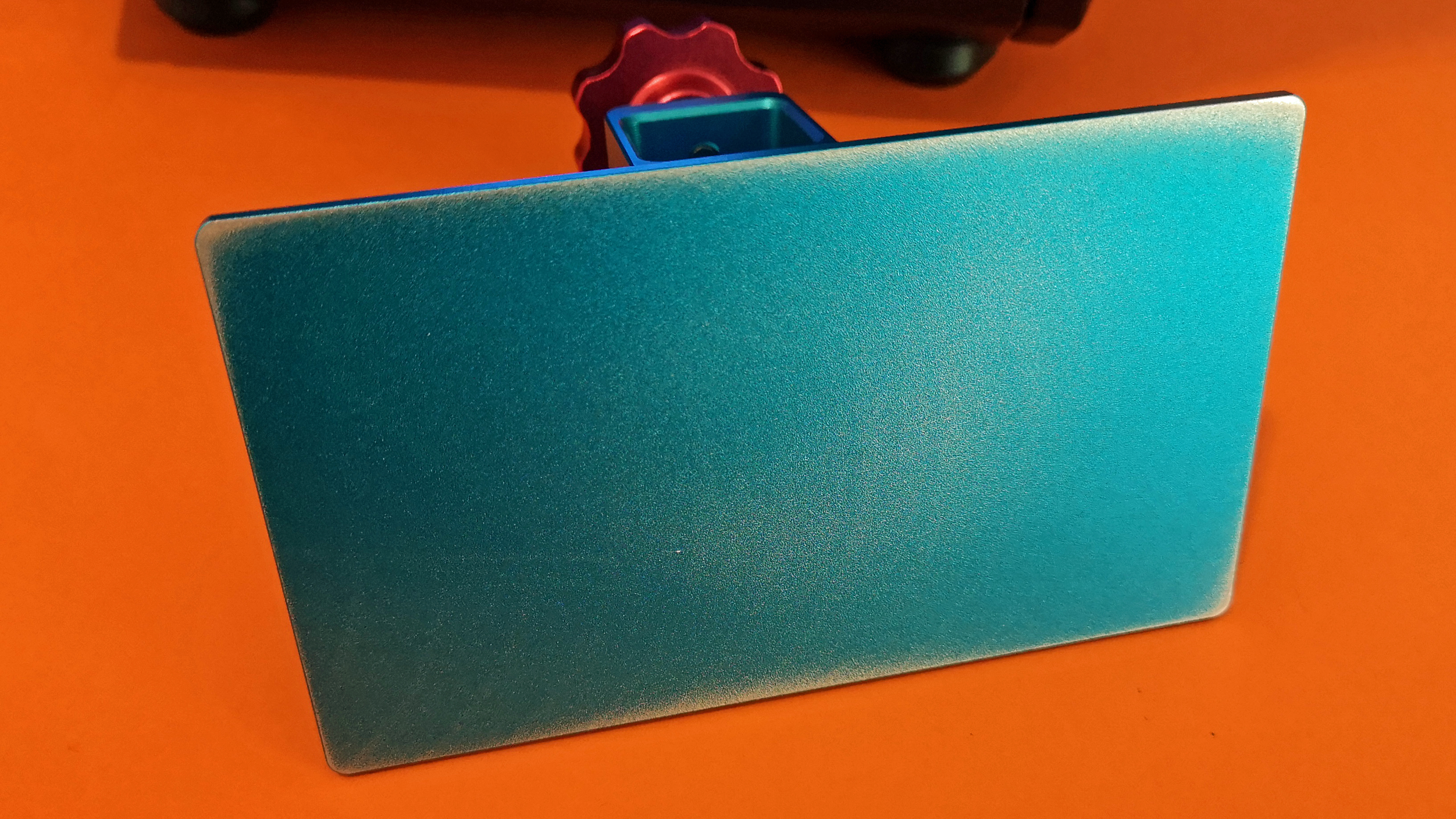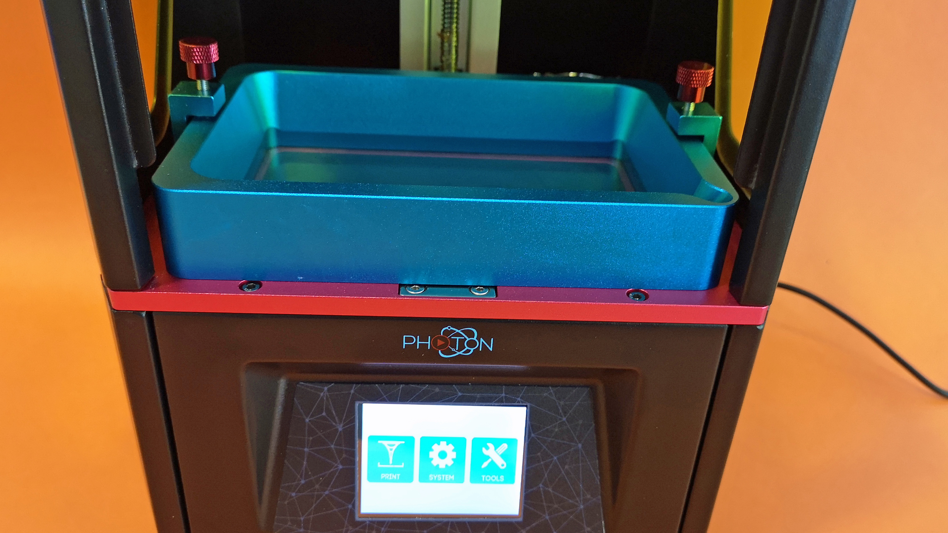 Druckplattform und Resin-Behälter bestehen aus blau eloxiertem Aluminium und sind ebenso gut verarbeitet wie der Rest des Druckers. Wer den Drucker zum ersten Mal sieht, würde einen deutlich höheren Preis vermuten.