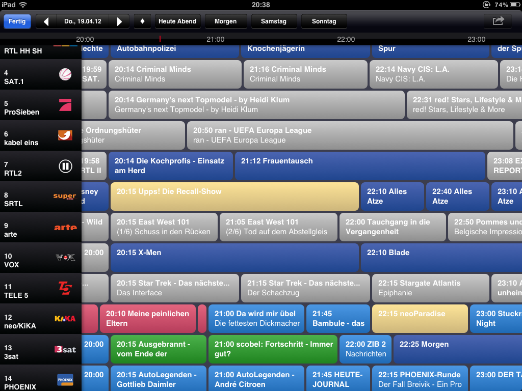 Für die Wiedergabe ist eine eigene Applikation notwendig. Die Universal-App ist kostenlos und wird beim Einstecken des Empfangsteil automatisch aufgerufen. Beim Erststart beginnt der Sendersuchlauf. In Hamburg haben wir 38 Kanäle gefunden.