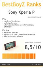 Sonys neuestes Smartphone für die Mittelklasse, das Xperia P ist ein gelungenes Telefon. Die Stärken sind: Kamera, Verarbeitung und das Display. Die 8-Megapixel Fotokamera liefert gute Bilder. Das Gehäuse fühlt sich hochwertig zugleich robust an. Das Hauptfeature des Xperia P ist das 900cd/m2-helle Sony WhiteMagic-Display, das selbst bei sehr starken Sonnenstrahlen ablesbar ist. Zu den Schwächen gehört der schwache Akku – er hätte etwas mehr drauf haben können. Zusammengefasst: Für aktuell 330€ (Link ) ist das Sony Xperia P ein sehr empfehlenswertes Smartphone.