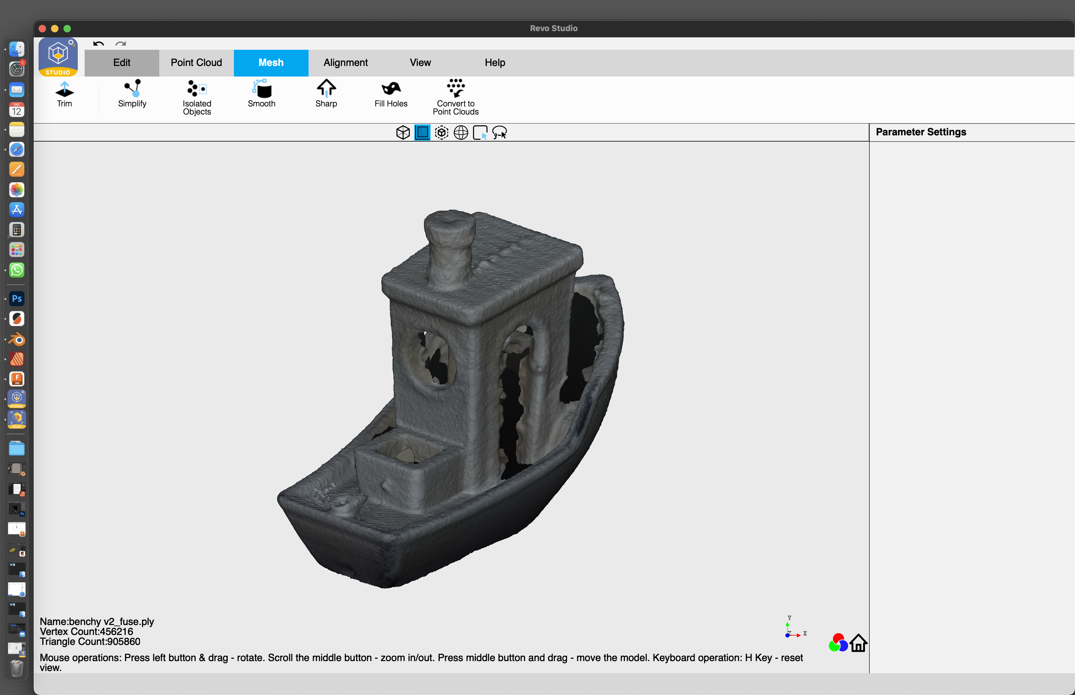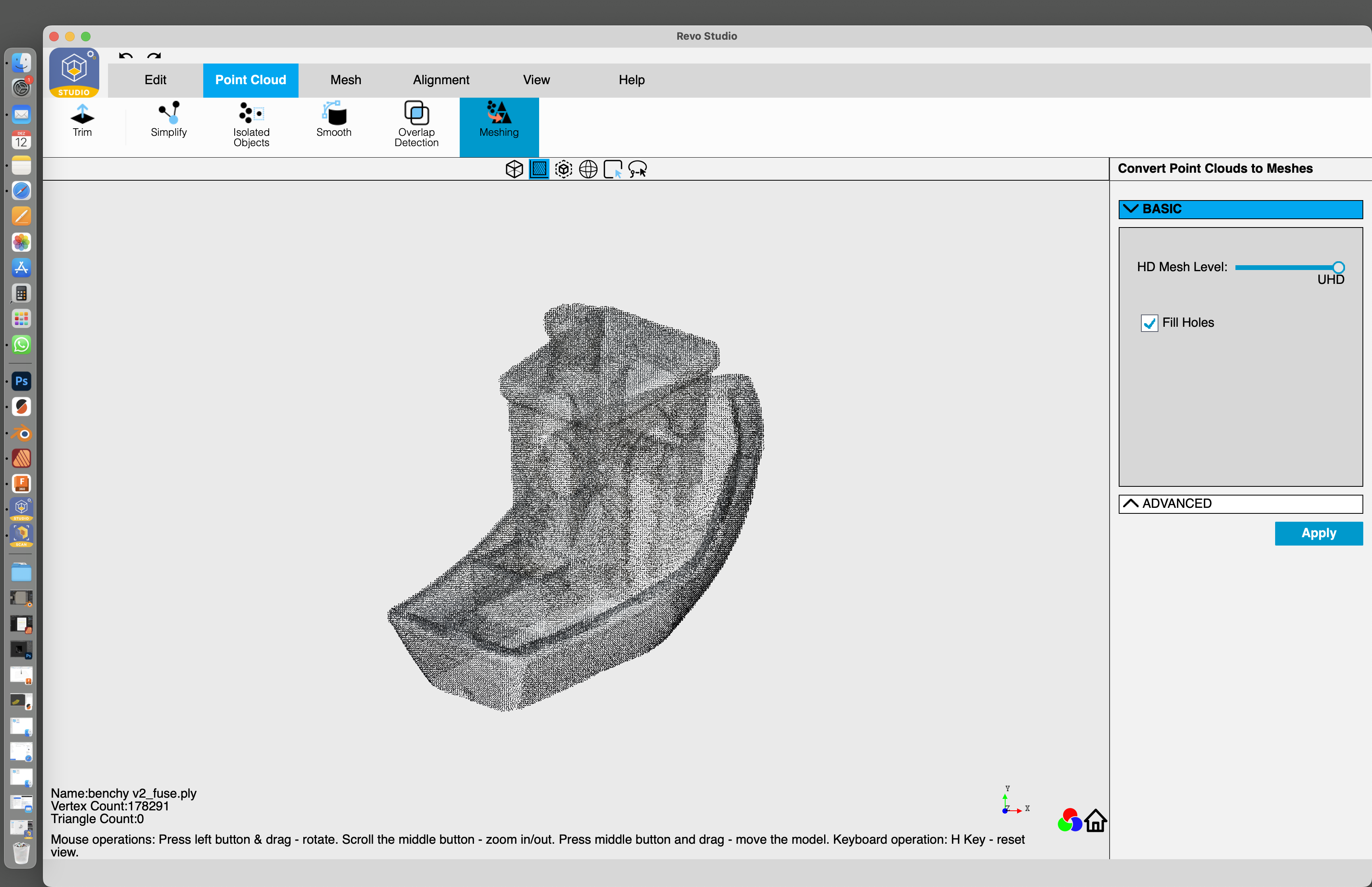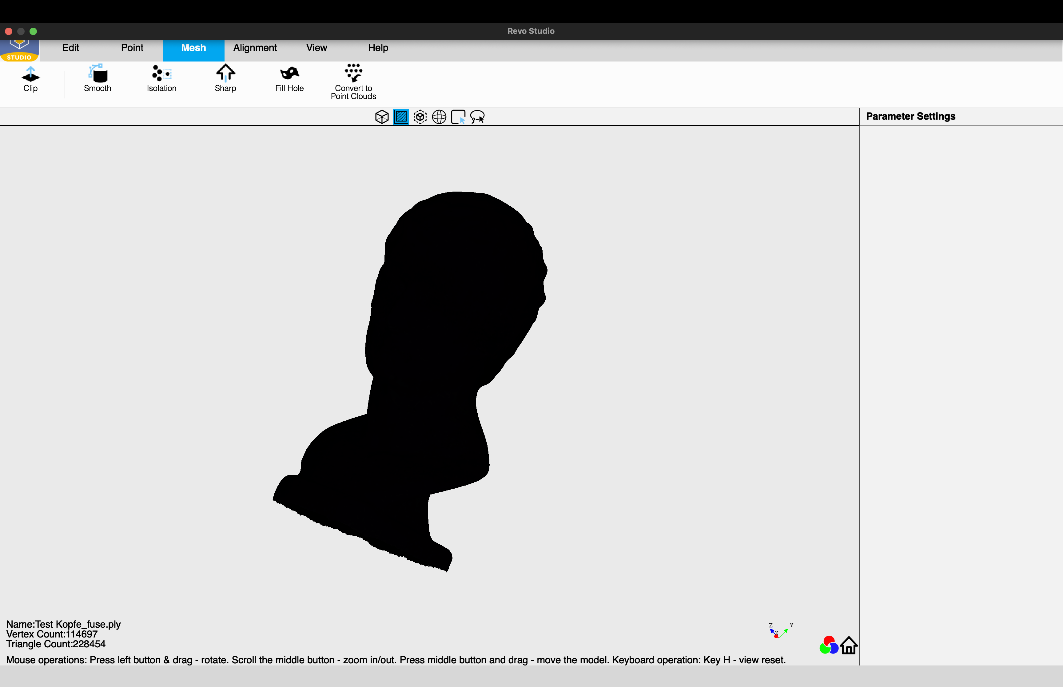 Bevor wir mit dem eigentlichen Scannen beginnen, sollte die Software Revopoint Scan, Studio und der Mini 3D-Scanner auf die neuesten Versionen bzw. Firmware aktualisiert werden. Diese arbeiten deutlich fehlerfreier und mit stabilerem Tracking. Die 3D-Scan Software gliedert sich in zwei Bereiche. Revopoint Scan erfasst die Daten des 3D-Scanners in Echtzeit und baut sie zu einer Punktwolke zusammen. Revopoint Studio rechnet diese Punktwolke in Flächen um und lässt so ein brauchbares 3D-Modell entstehen. Dieses besteht aus definierten Oberflächen in Form eines Netzes aus Polygonen.