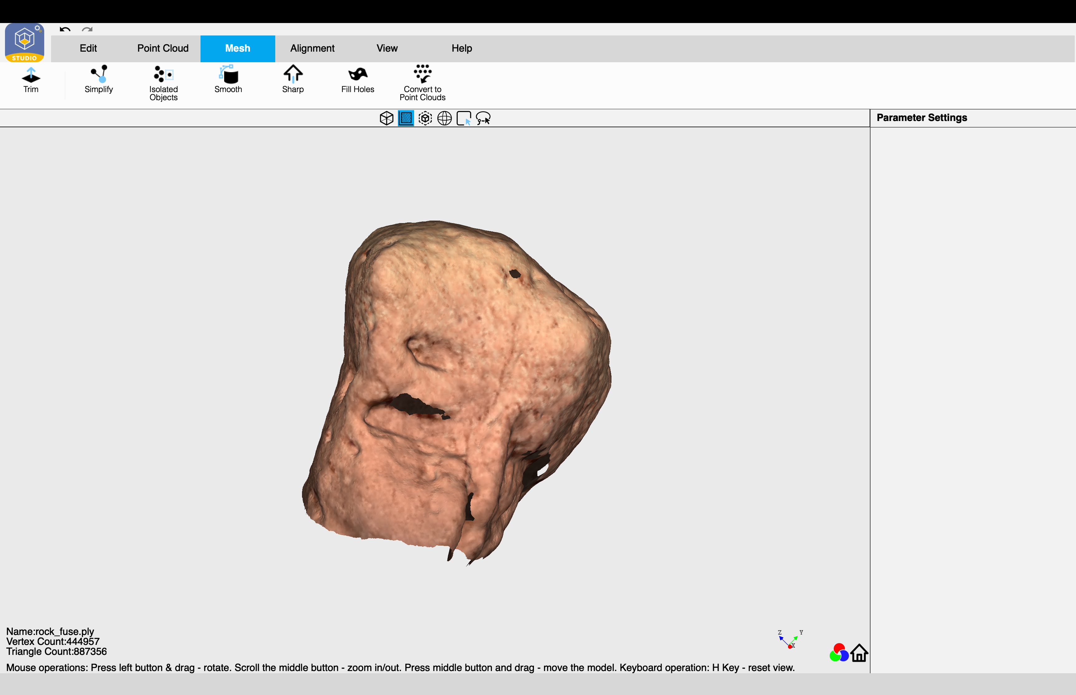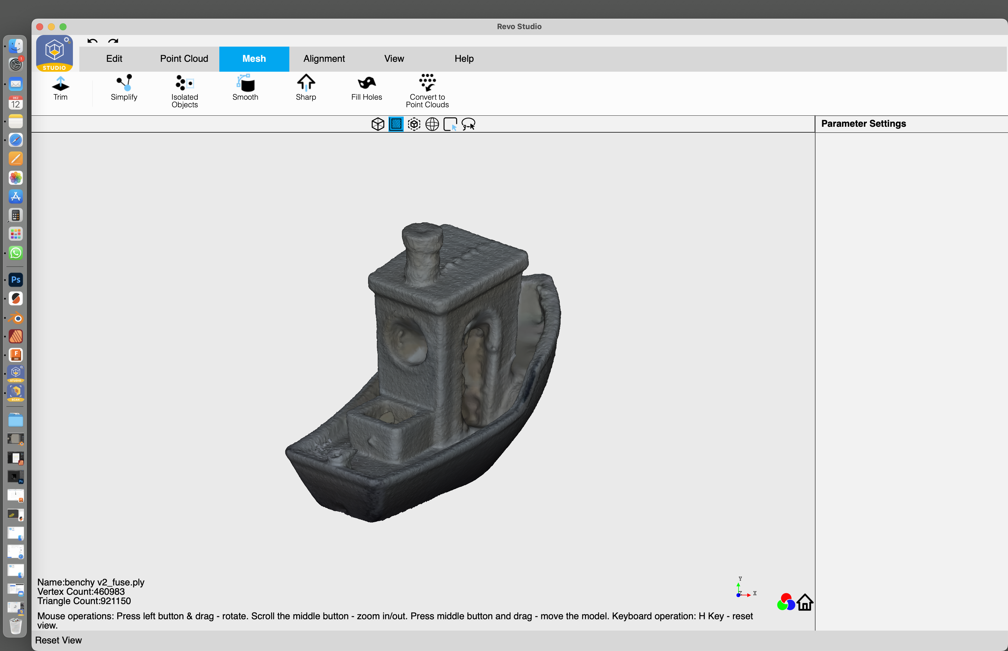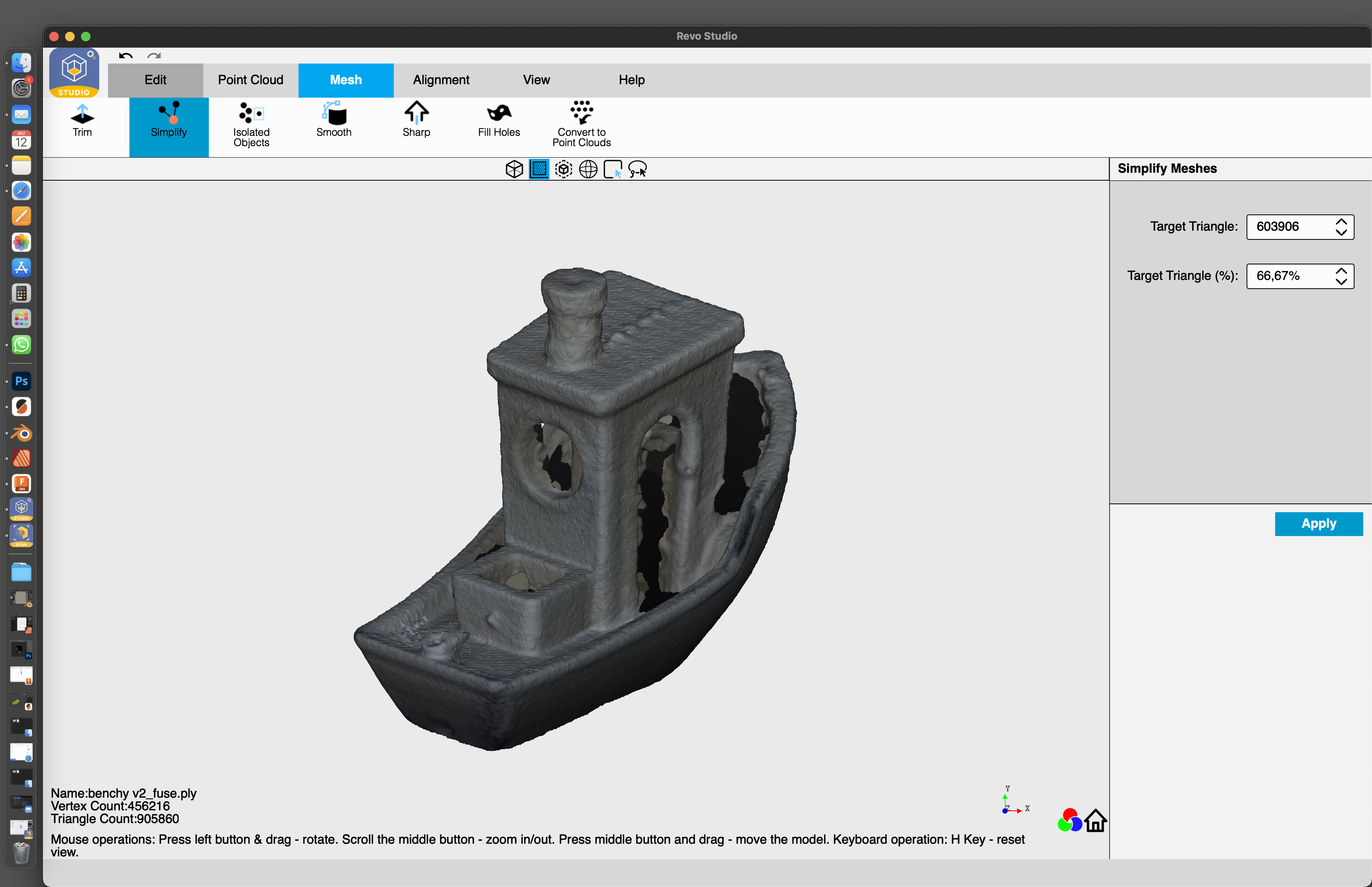 Bevor wir mit dem eigentlichen Scannen beginnen, sollte die Software Revopoint Scan, Studio und der Mini 3D-Scanner auf die neuesten Versionen bzw. Firmware aktualisiert werden. Diese arbeiten deutlich fehlerfreier und mit stabilerem Tracking. Die 3D-Scan Software gliedert sich in zwei Bereiche. Revopoint Scan erfasst die Daten des 3D-Scanners in Echtzeit und baut sie zu einer Punktwolke zusammen. Revopoint Studio rechnet diese Punktwolke in Flächen um und lässt so ein brauchbares 3D-Modell entstehen. Dieses besteht aus definierten Oberflächen in Form eines Netzes aus Polygonen.