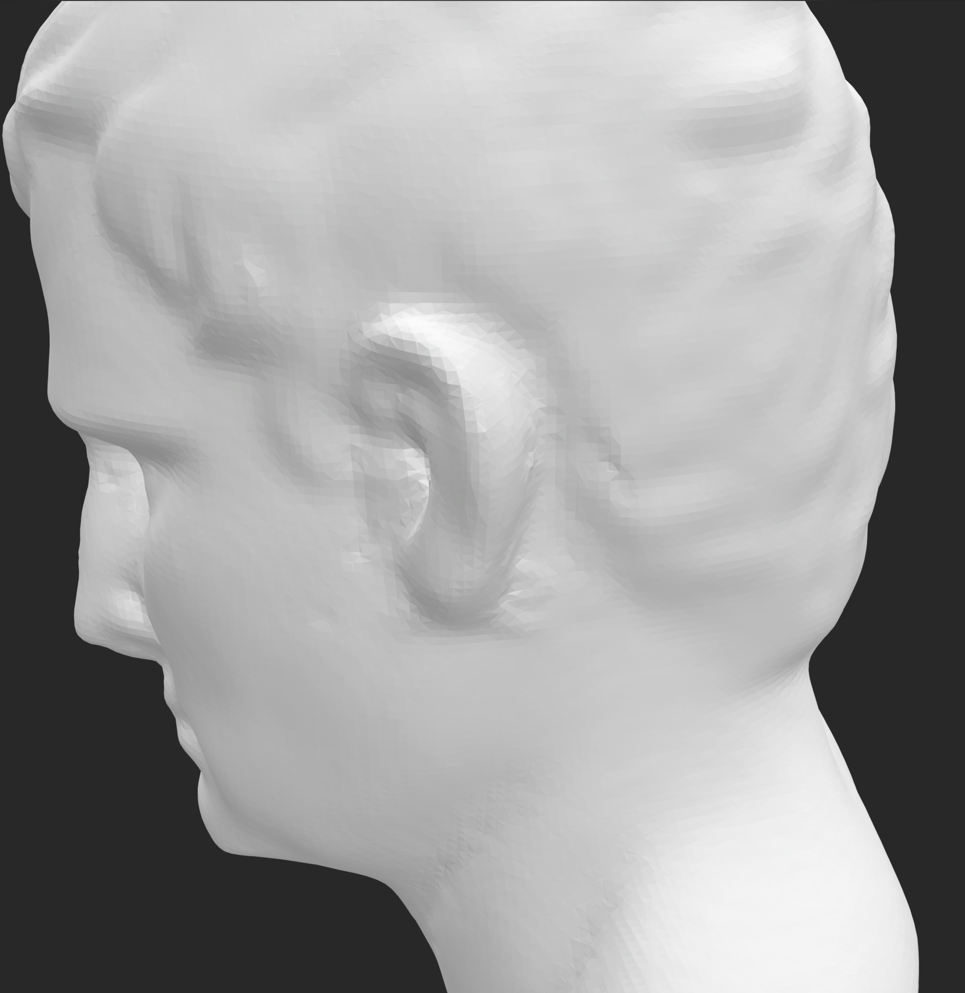 Aber oben sprechen wir doch von einer Genauigkeit von 0,05 mm – warum diese zwei unterschiedlichen Werte? Die sind im Unterschied von Scangenauigkeit und Scanpräzision zu finden. Die abgetasteten Punkte mit jeweils x / y / z-Koordinate der Oberflächenstruktur bilden eine Punktwolke mit einer Auflösung (= Abstand von Punkten zueinander) von 0,02 mm. In ihrer modellierten Form als 3D-Modell beträgt die Oberflächenpräzision dann allerdings 0,05 mm. Das ist letztendlich auch die finale Genauigkeit des 3D-Modells.
