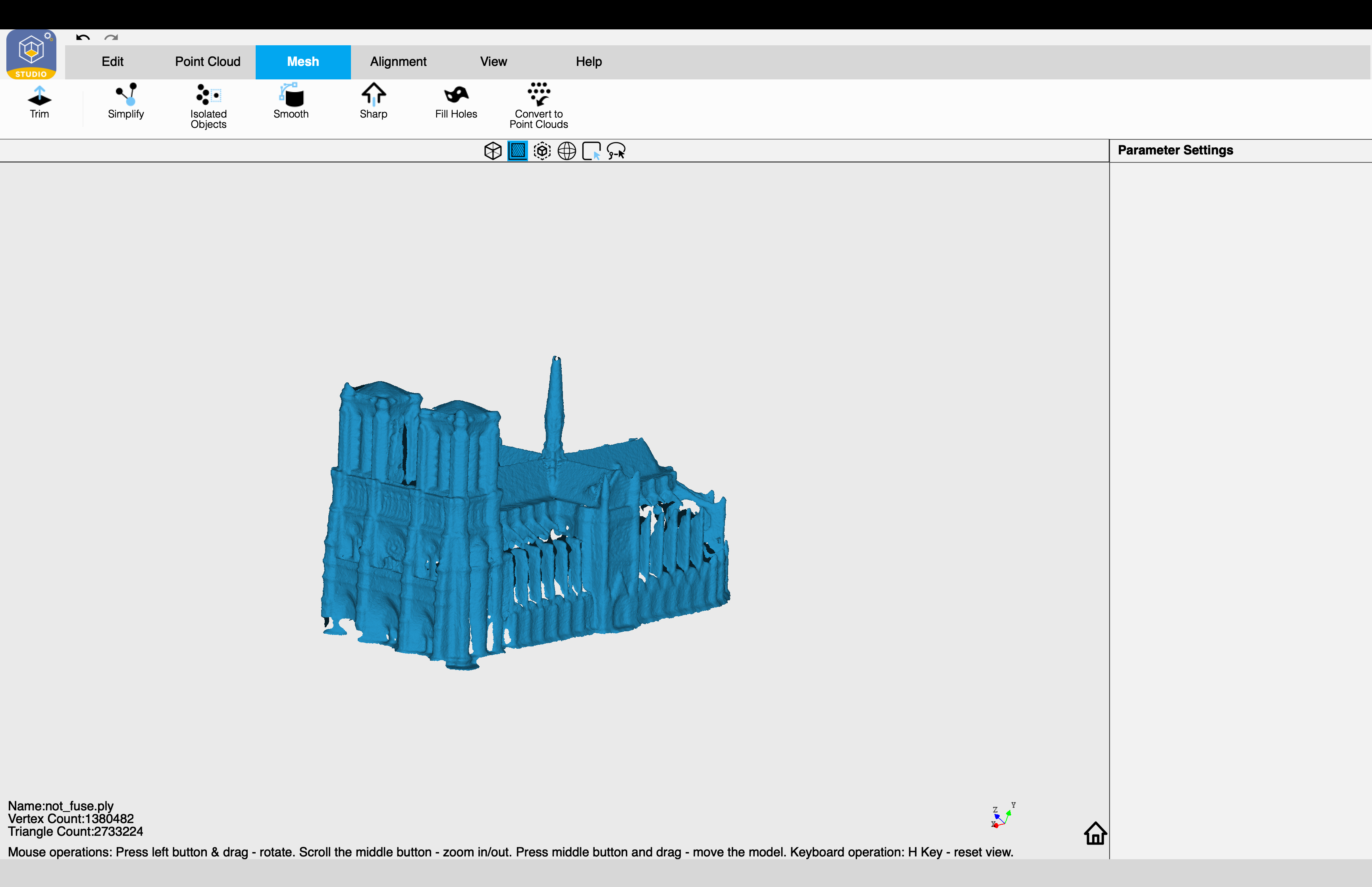 Bei Hand-Scans hatten wir Probleme mit dem Tracking. Etwas zu viel gewackelt, schon verliert der Mini das begonnene Tracking. Ruhige Bewegungen wie beim Qi-Gong sind hier das Allerwichtigste. Bei dem Notre-Dame-Modell mit all seinen Hinterschneidungen und Vertiefungen stieß der Revopoint Mini dann allerdings an seine Grenzen. Der genauere Hand-Scan und ein zusätzliches Oberflächen-Tuning brachten zwar bessere Ergebnisse, aber trotzdem keine wirklich brauchbaren.