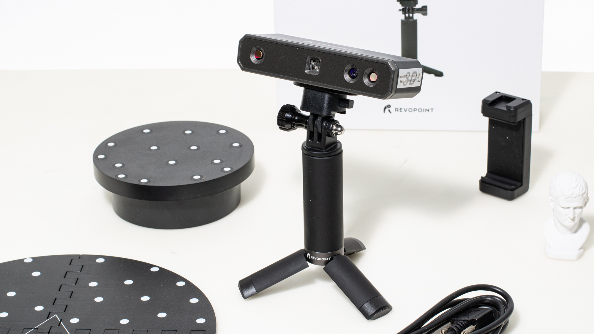 Für den letzten Punkt bietet sich der im Lieferumfang enthaltene Drehteller von Revopoint an. Noch komfortabler ist der zweiachsige Drehteller mit horizontal kippender und drehender Plattform. Wir haben dieses Produkt zwar noch nicht getestet, während der Tests mit dem Standard-Drehteller hatten wir allerdings große Sehnsucht nach einer komfortableren Lösung.