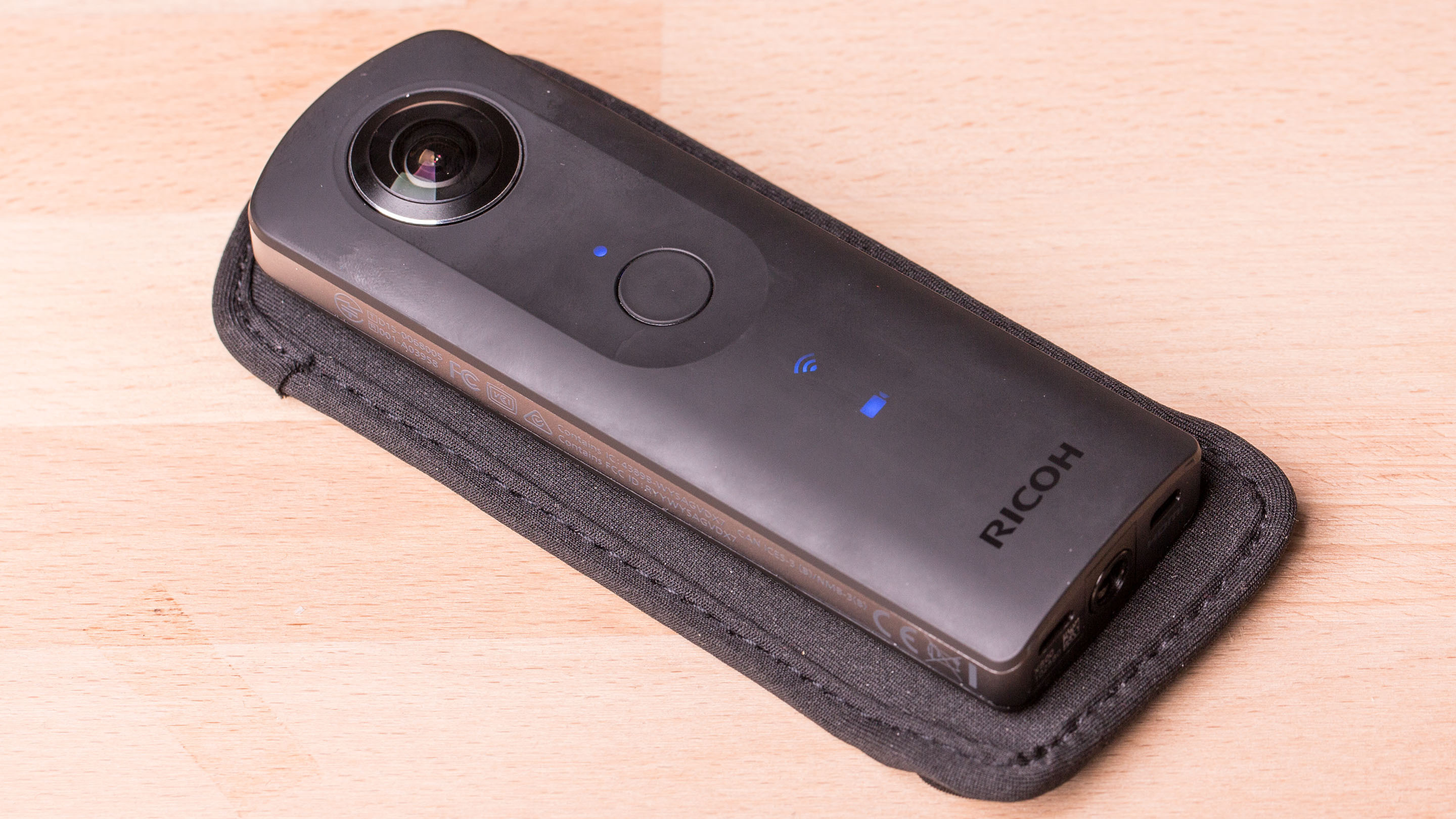 Die unverbindliche Preisempfehlung der Ricoh Theta S liegt bei 399 Euro. Dazu passt die Hardware unter der Haube. Um das Einfangen der Bilddaten kümmern sich zwei 1/2,3 Zoll große Bildsensoren, wie sie auch bei Einsteiger- bis Mittelklasse-Kompaktkameras üblich sind. Die Auflösung der beiden Chips beträgt jeweils 12 Megapixel.