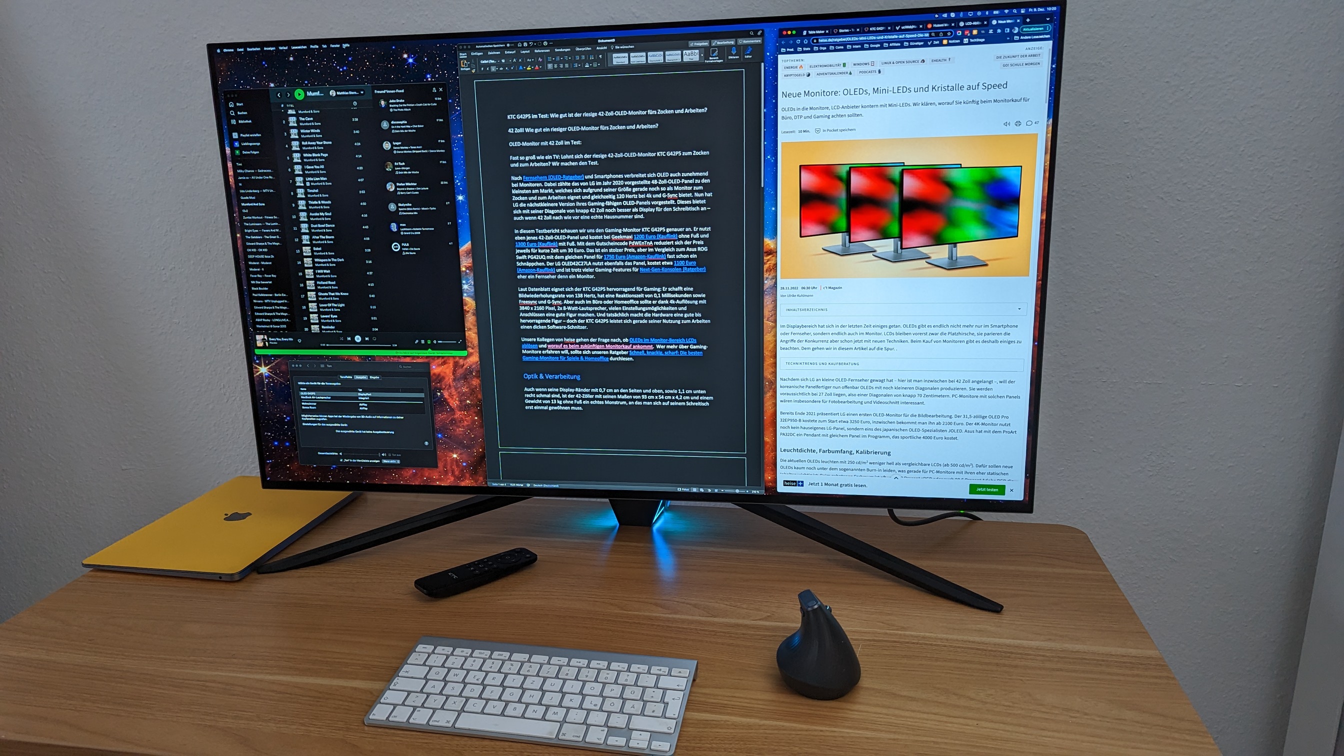 Fast so groß wie ein TV: Lohnt sich der riesige 42-Zoll-OLED-Monitor KTC G42P5 zum Zocken und zum Arbeiten? Wir machen den Test.