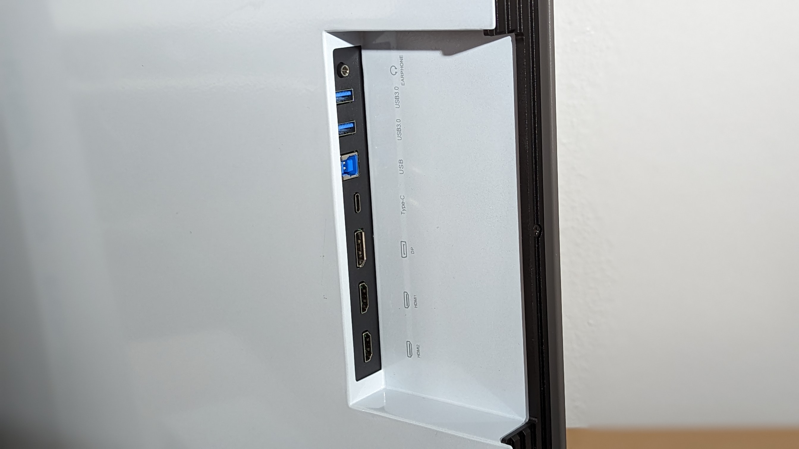 Die Anschlüsse des KTC G42P5 verstecken sich seitlich hinter einer magnetischen Metallabdeckung. Er bietet: