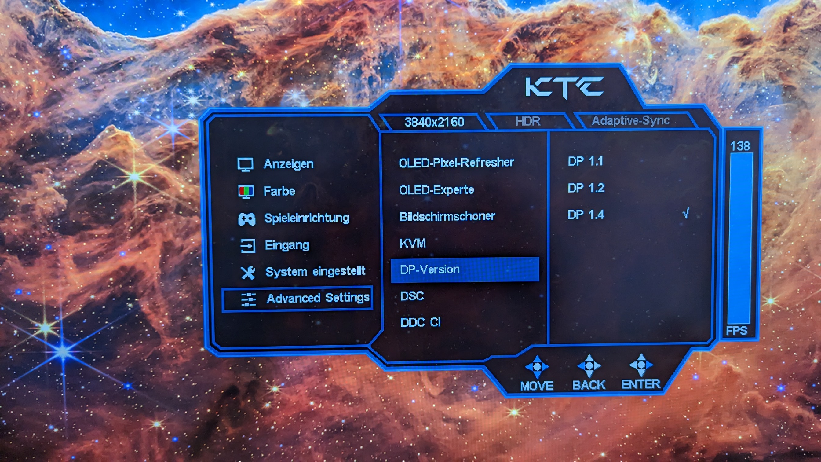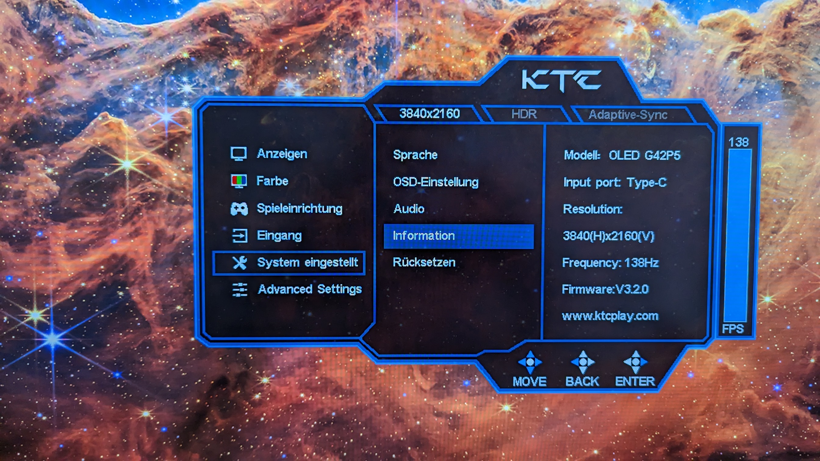 Der KTC G42P5 bietet eine maximale Bildwiederholungsfrequenz von 138 Hertz. Das ist viel und wird den meisten Gamern genügen. Trotzdem greifen Profi-Gamer eher zu Monitoren mit einer anderen Display-Technologie. So gibt es IPS-Panels, die bei 4K 240 Hertz schaffen. Konsolenspieler wird die Unterstützung von G-Sync und Freesync freuen.