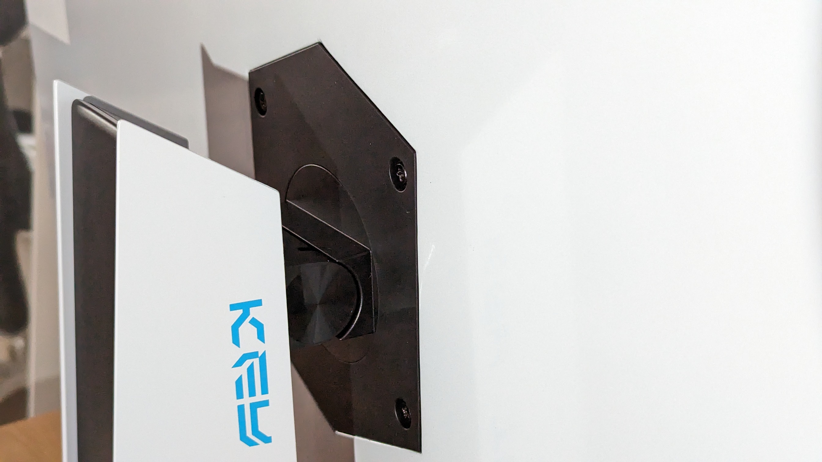 Alternativ zum Fuß können Käufer dank 10 cm x 10 cm Vesa-Mount auch einen Monitorarm eines beliebigen Herstellers wählen – insofern er das hohe Gewicht des KTC G42P5 trägt. Ein Monitorarm hat den Vorteil, dass sich der Monitor leicht in Höhe und Neigung verstellen lässt und er über dem Tisch „schwebt“, wodurch er gerade von vorne aufgeräumter wirkt und keinen Platz auf dem Tisch wegnimmt.