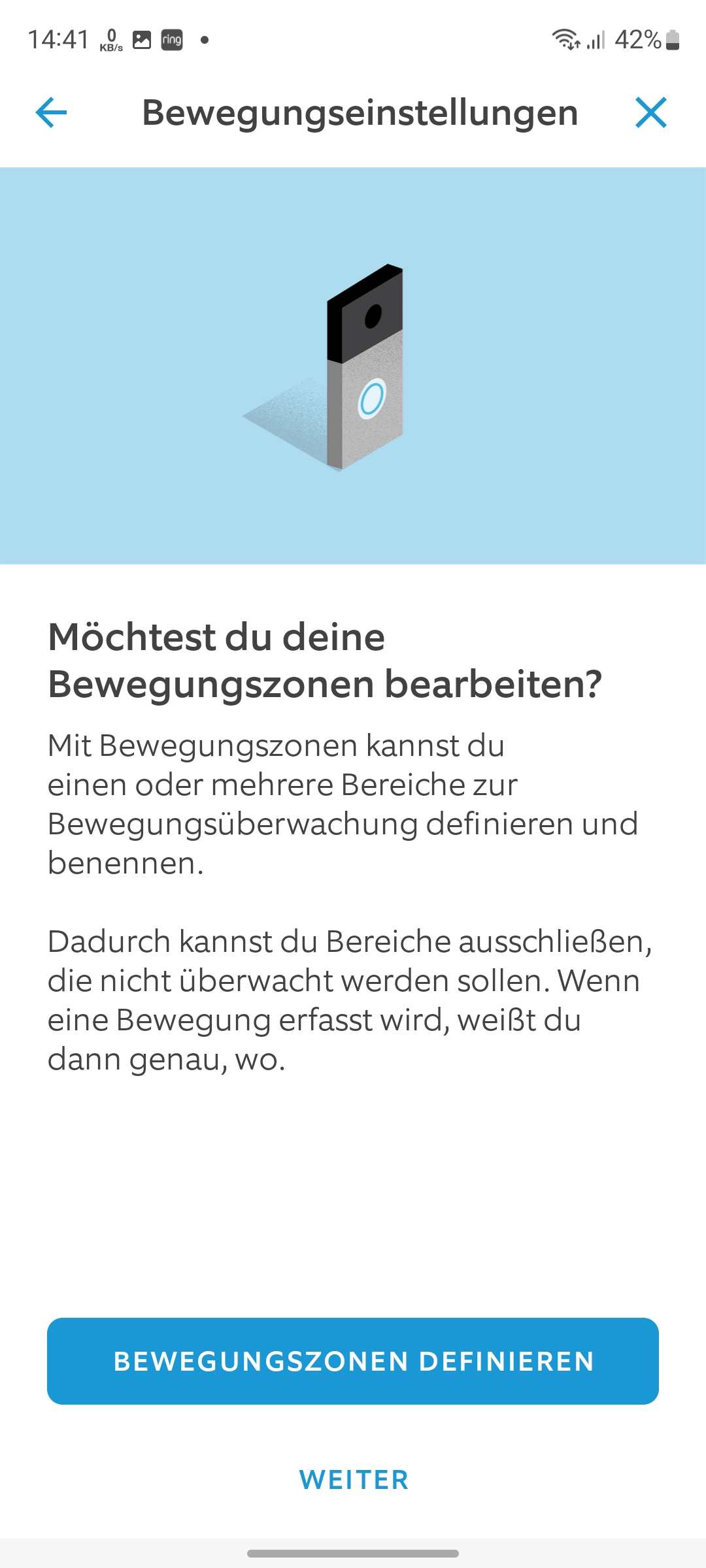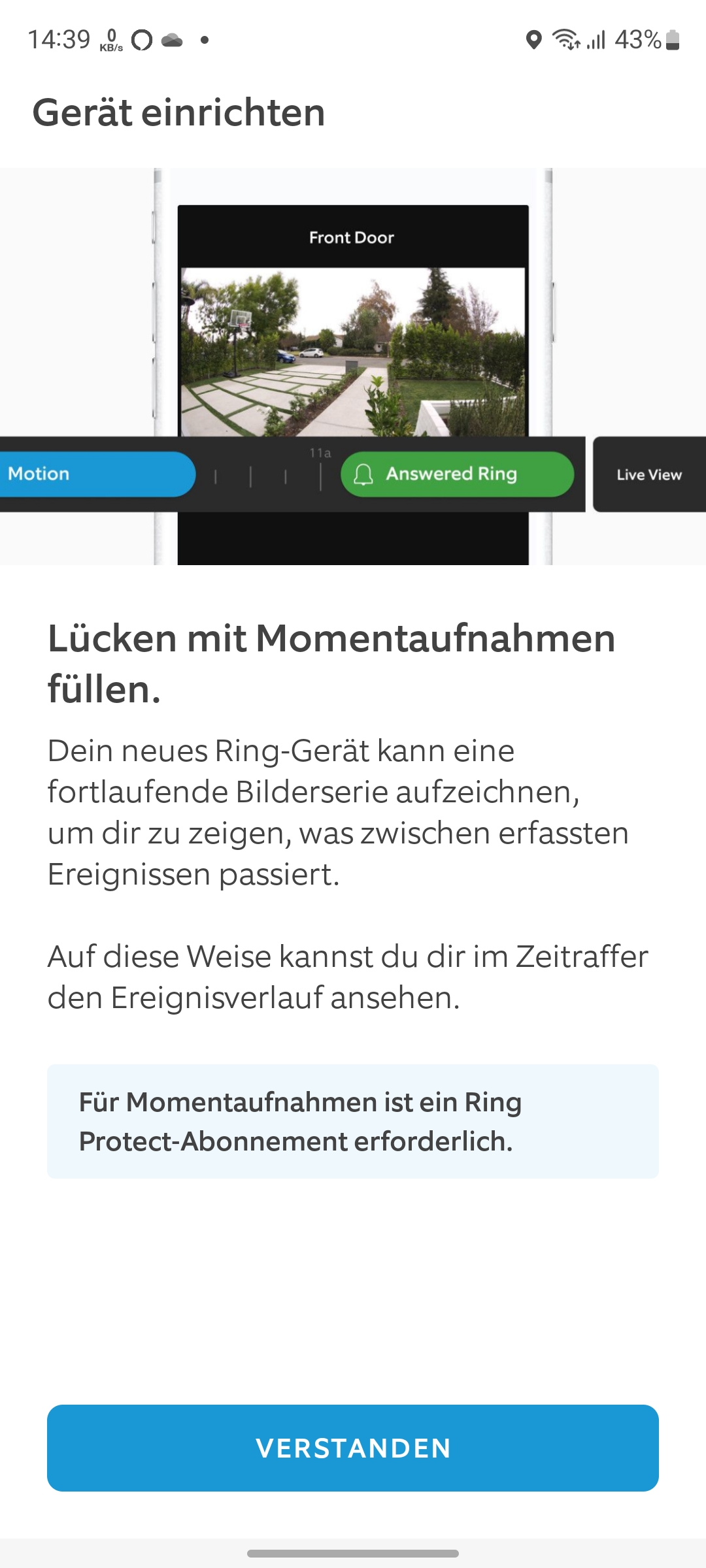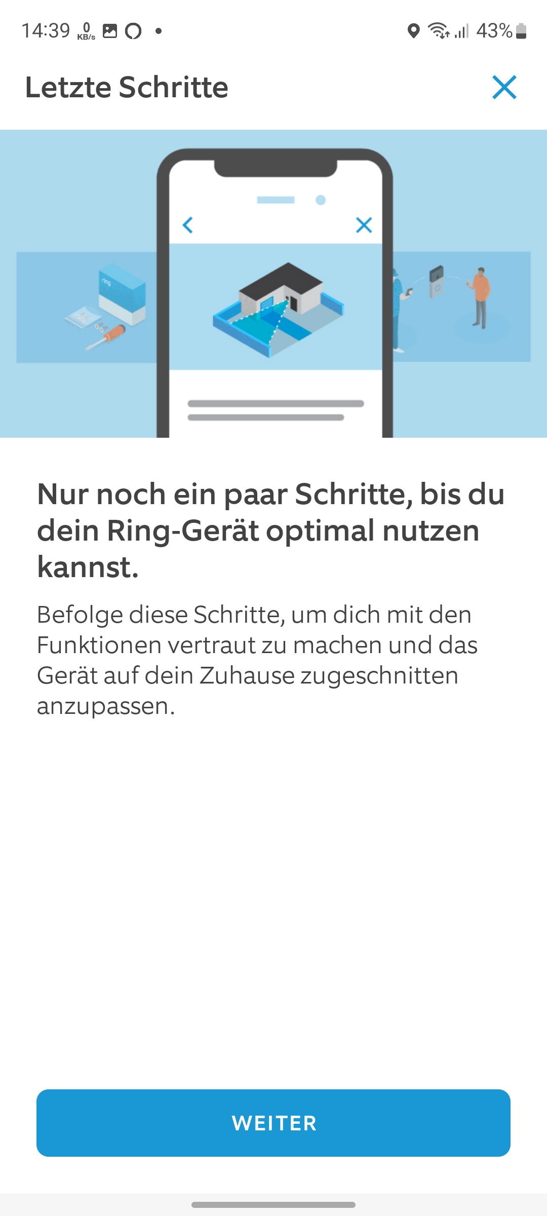 Nun schalten wir den Strom über die Hauptsicherung wieder ein und beginnen mit der Inbetriebnahme. Hierfür wird die Ring-App benötigt, für die man sich Angabe von Mobilfunknummer, E-Mail-Adresse und Standort registrieren muss. Der integrierte Installationsassistent hilft in Form grafischer Darstellungen und mit Sprachnachrichten – allerdings nur auf Englisch – über den Lautsprecher bei der Einrichtung, sodass diese nach wenigen Minuten abgeschlossen ist.