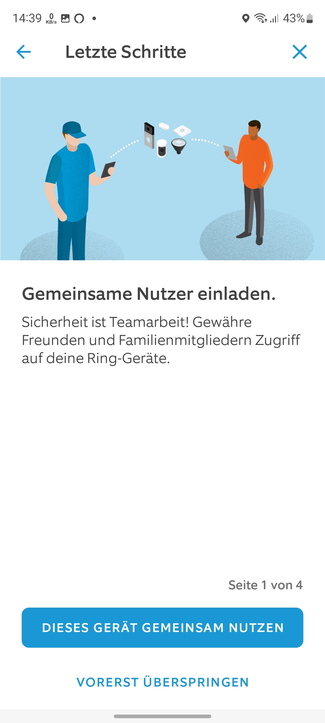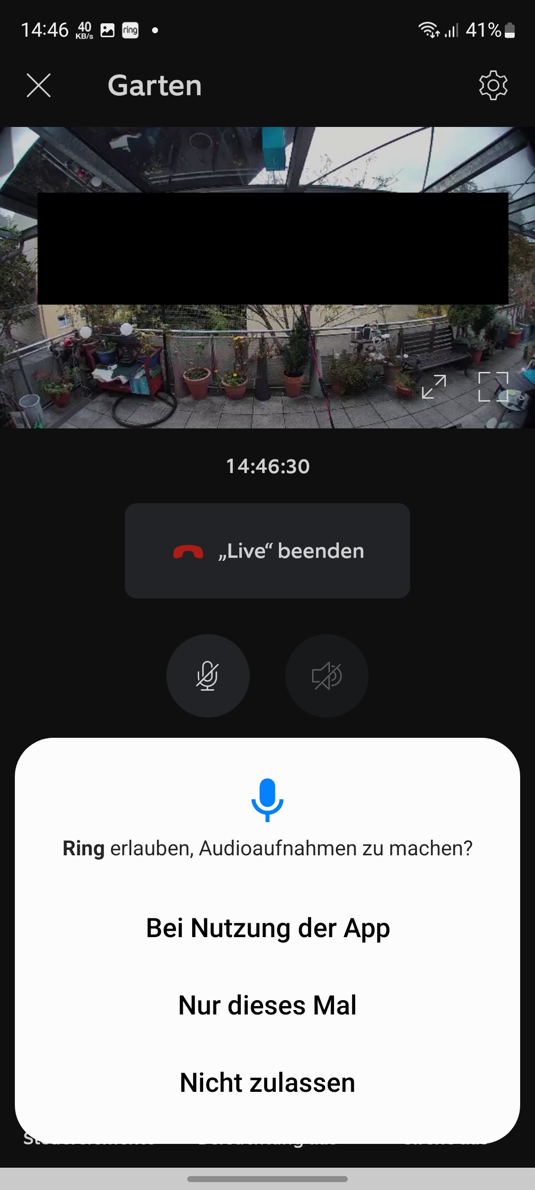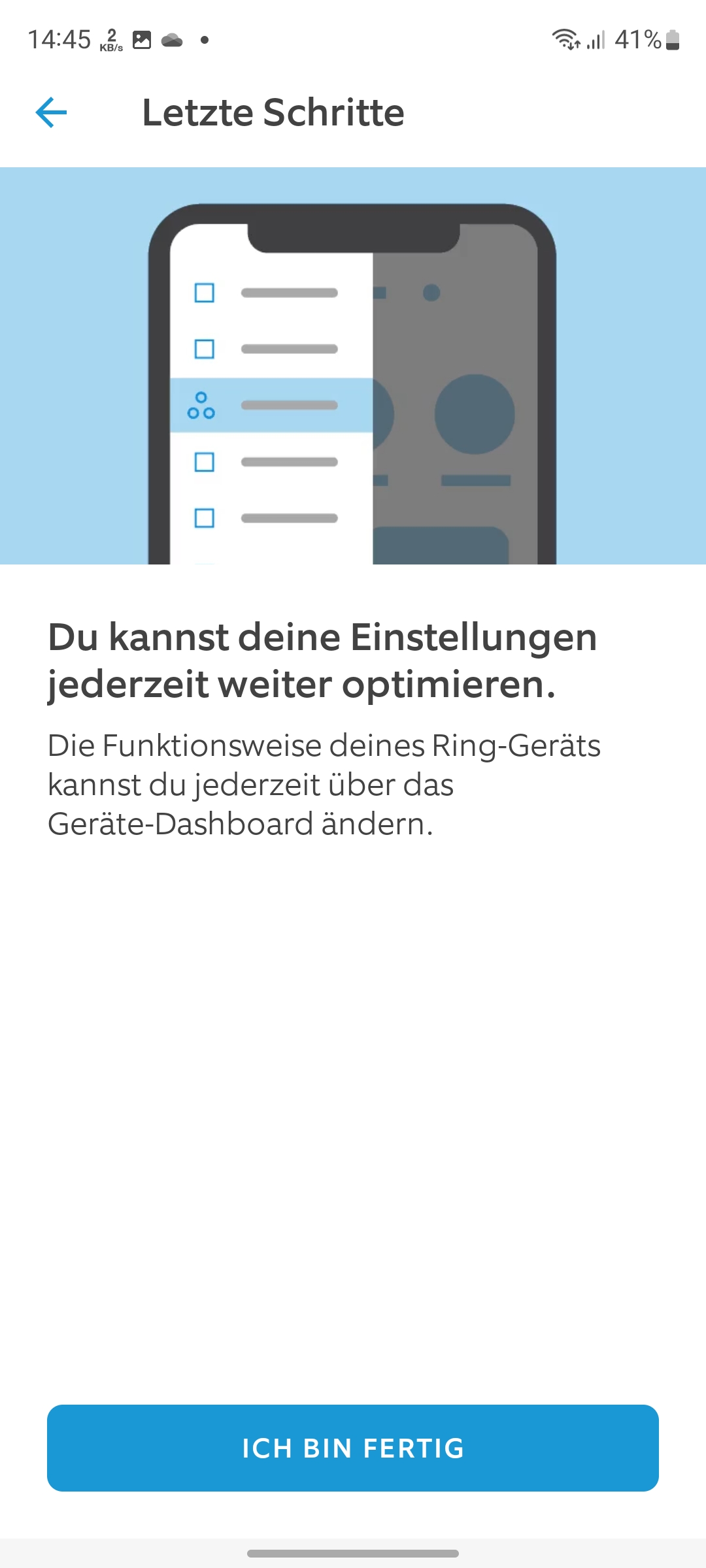 Nun schalten wir den Strom über die Hauptsicherung wieder ein und beginnen mit der Inbetriebnahme. Hierfür wird die Ring-App benötigt, für die man sich Angabe von Mobilfunknummer, E-Mail-Adresse und Standort registrieren muss. Der integrierte Installationsassistent hilft in Form grafischer Darstellungen und mit Sprachnachrichten – allerdings nur auf Englisch – über den Lautsprecher bei der Einrichtung, sodass diese nach wenigen Minuten abgeschlossen ist.