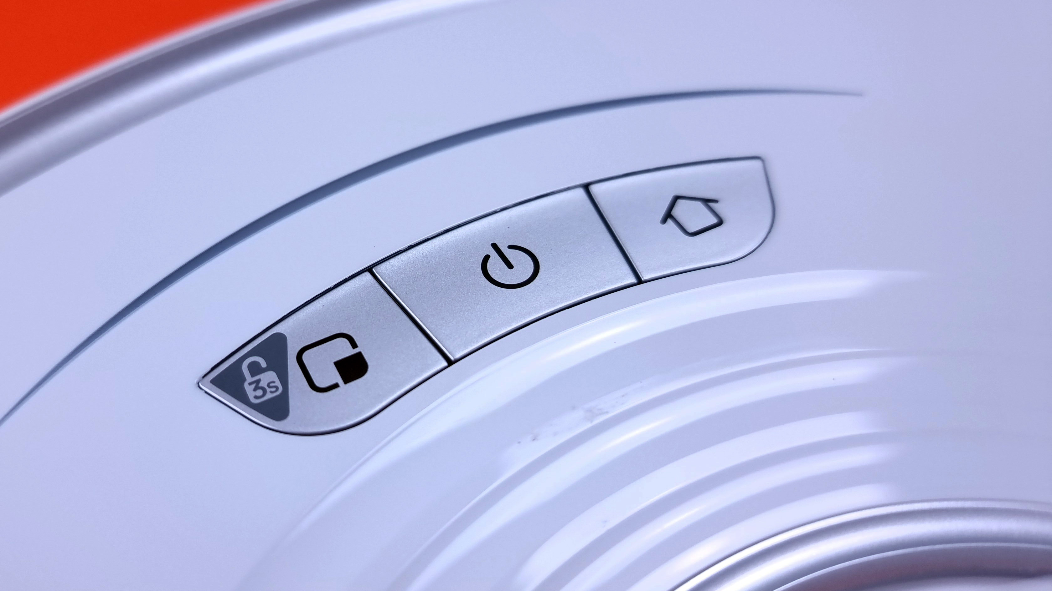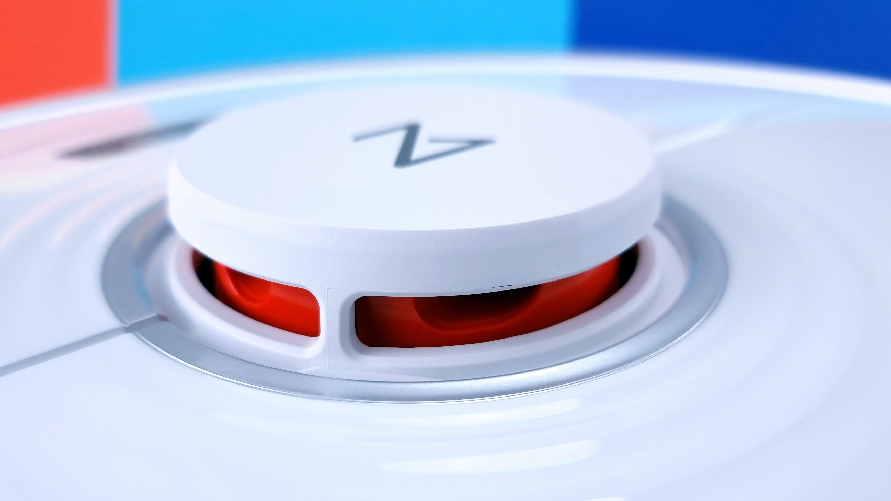 Beim Design gibt es wenig Neues zu berichten. Der Roborock S7 kommt gewohnt hochwertig daher, auch wenn er ausschließlich aus Kunststoff besteht. Es gibt noblere Modelle, etwa den Lenovo T1 Pro (Testbericht), dessen Oberseite aus Glas besteht. Einen schlechten Eindruck macht der S7 aber nicht. Statt schwarz ist er derzeit nur in Weiß zu haben, das wirkt freundlicher. Der Laser-Turm, der hauptsächlich zur Navigation dient und über einen eigenen Bumper verfügt, damit er nicht unbemerkt beim Unterfahren von Möbeln am Turm hängenbleibt, sitzt leicht nach vorn versetzt und nicht genau mittig auf dem Bot. Auf der Oberseite des Roboters platziert Roborock drei Tasten zur direkten Steuerung: Start/Stopp, Rückkehr zur Ladestation und Bereichsreinigung lassen sich hier aktivieren. Davor sieht man einen schmalen LED-Streifen, der abhängig von der ausgeführten Aktion des Roboters in verschiedenen Farben leuchtet.