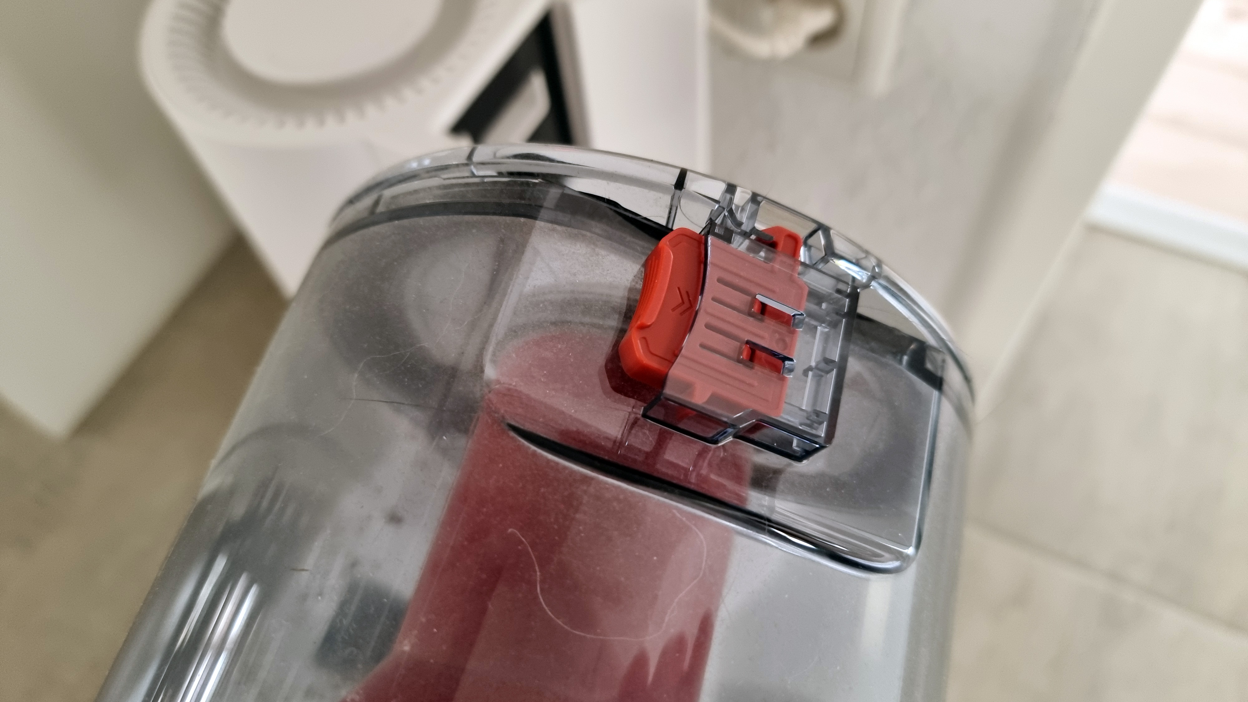 So glimmt der LED-Streifen vollflächig grün beim Laden, ein blaues Licht wandert – ähnlich dem roten “Scanner” beim KITT, dem schlauen Kult-Auto der 80er-Jahre – während der Navigation von einer Seite zur anderen und bei einem Fehler erstrahlt der Streifen in sattem Rot. Das bietet keinen nennenswerten Mehrwert, sieht aber cool aus. Unter dem hinteren Teil, dessen Deckel angehoben werden kann, sitzt der komplett überarbeitete Staubbehälter. Er sieht zwar viel kleiner als bei früheren Modellen aus, ist aber mit seinen 470 Milliliter sogar leicht größer. Schade: Eine Rückhalteklappe für den Schmutz gibt es nicht mehr, beim Entleeren müssen Nutzer jetzt also aufpassen, dass nicht schon vor dem Mülleimer kleine Schmutzreste verloren gehen.