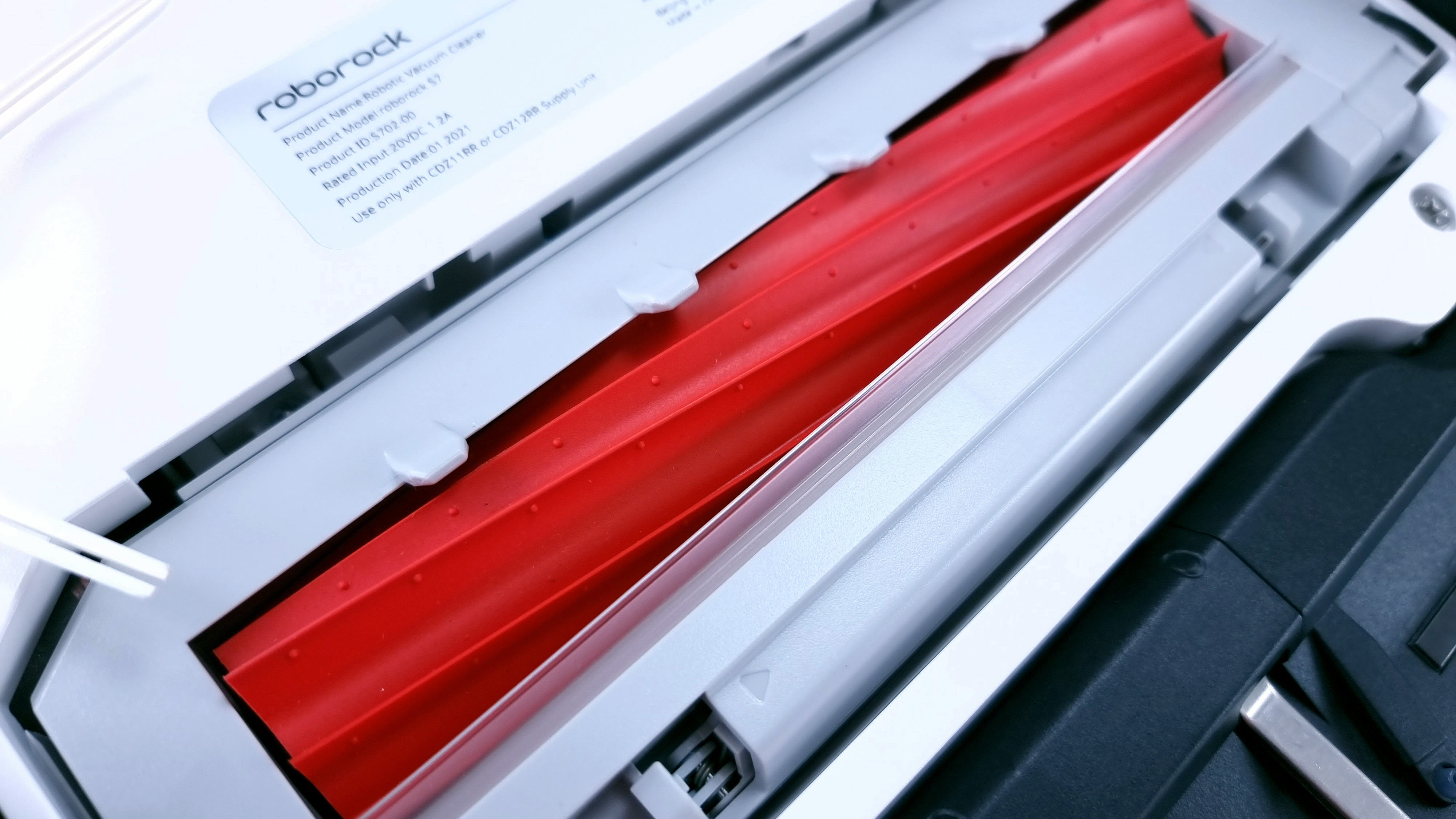 Ansonsten ist alles wie gehabt: Seitenbürste rechts vorne, großer Bumper vorn, um Hindernisse durch Auffahren wahrzunehmen, die dem überwiegend wachsamen Laser-”Auge” oben im Turm oder den Sensoren vorn und auf der rechten Seite entgehen. Gegen Abstürze schützen sechs Sensoren auf der Unterseite, im Test funktioniert das zuverlässig. Neu ist die Hauptbürste, die mittig unter dem Modell sitzt. Sie ist wie bei älteren Modellen ein einem frei schwingenden Käfig gelagert, um Unebenheiten des Untergrunds besser ausgleichen zu können. Der Käfig erlaubt jetzt aber noch mehr Bewegungsfreiheit. Außerdem hat Roborock die Bürste an sich überarbeitet. Während bei Saugrobotern des Herstellers bislang eine Mischung aus gedrehten Borstenreihen und Gummilippen zum Einsatz kam, setzt der S7 jetzt ganz auf Gummilippen. Ob das die Reinigungsleistung beeinträchtigt, klären wir an anderer Stelle.