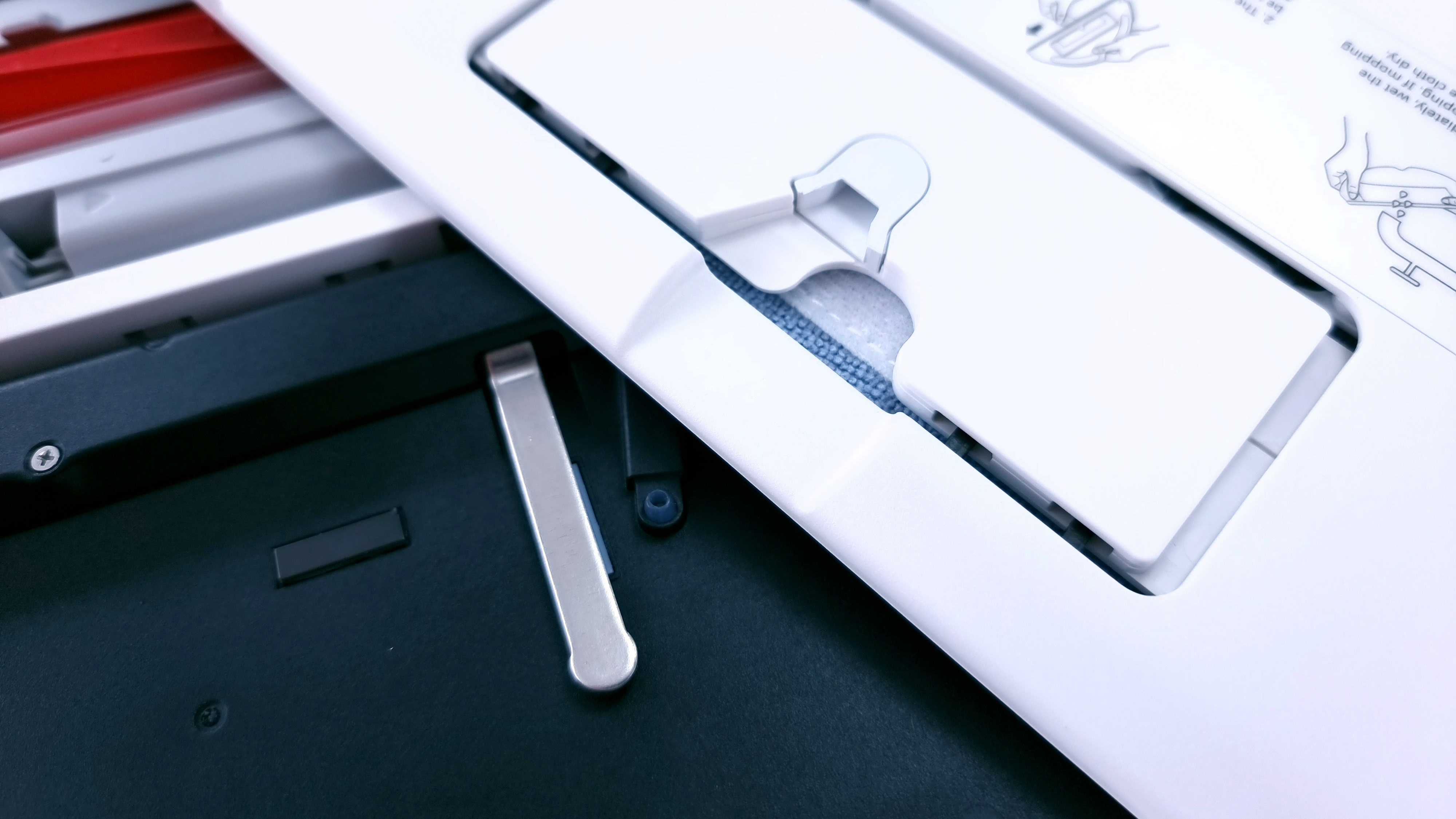 Apropos Tuch: Es wird an die separate Wischplatte geklettet und weist eine flexible Zone in der Mitte auf, die vom Roboter in Schwingung versetzt wird. Entsprechend passen die gleich großen Tücher von Vorgängermodellen zwar, dürften aber mangels dieser Zone die Funktion des S7 einschränken. Die Tücher sollte man übrigens regelmäßig waschen, da sie schnell sichtbar verschmutzt sind – und das im “sauberen” Heim!