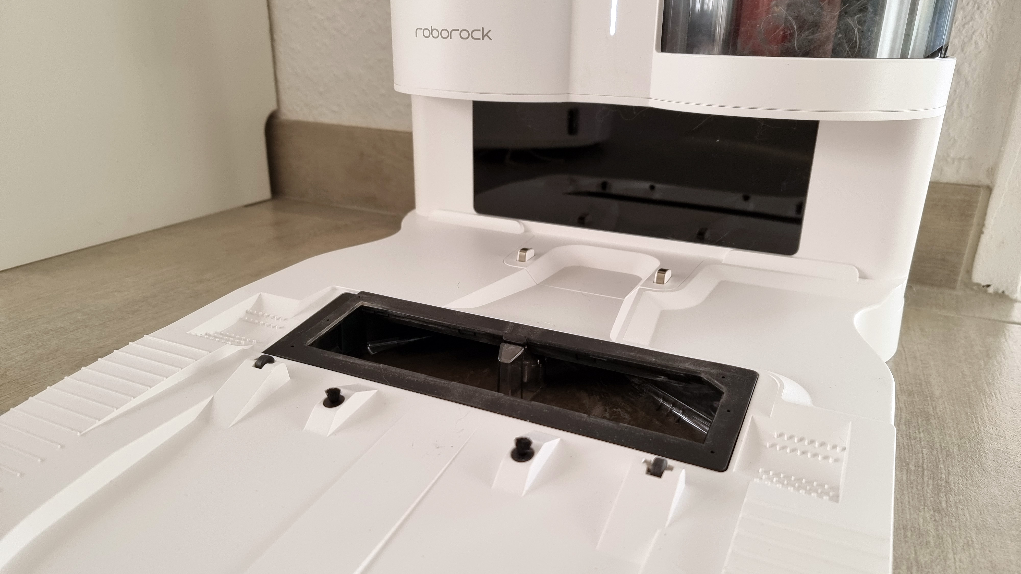 Wer realistisch bleibt und keine Wunder erwartet, die selbst einer Putzfrau den Schweiß auf die Stirn treiben würden, wird positiv überrascht sein - besser hat das bislang kein Saugroboter gemacht. Beim Schmutzbehälter hat Roborock hingegen noch etwas Nachholbedarf. Ist der voll, mahnt der Sauger das Leeren an. Wegen überstehender Ränder funktioniert das nicht ganz optimal und kleine Schmutzreste können schon mal neben den Mülleimer fallen. Eine Schmutz-Rückhalteklappe fehlt außerdem - wie bereits erwähnt. Das manuelle Entleeren des Staubbehälters könnte zukünftig allerdings entfallen, denn Roborock will für den S7 bald eine automatische Absaugstation auf den Markt bringen. Die Vorbereitung dafür findet man im Roboter in Form einer ab Werk verschlossenen, aber entfernbaren Klappe.