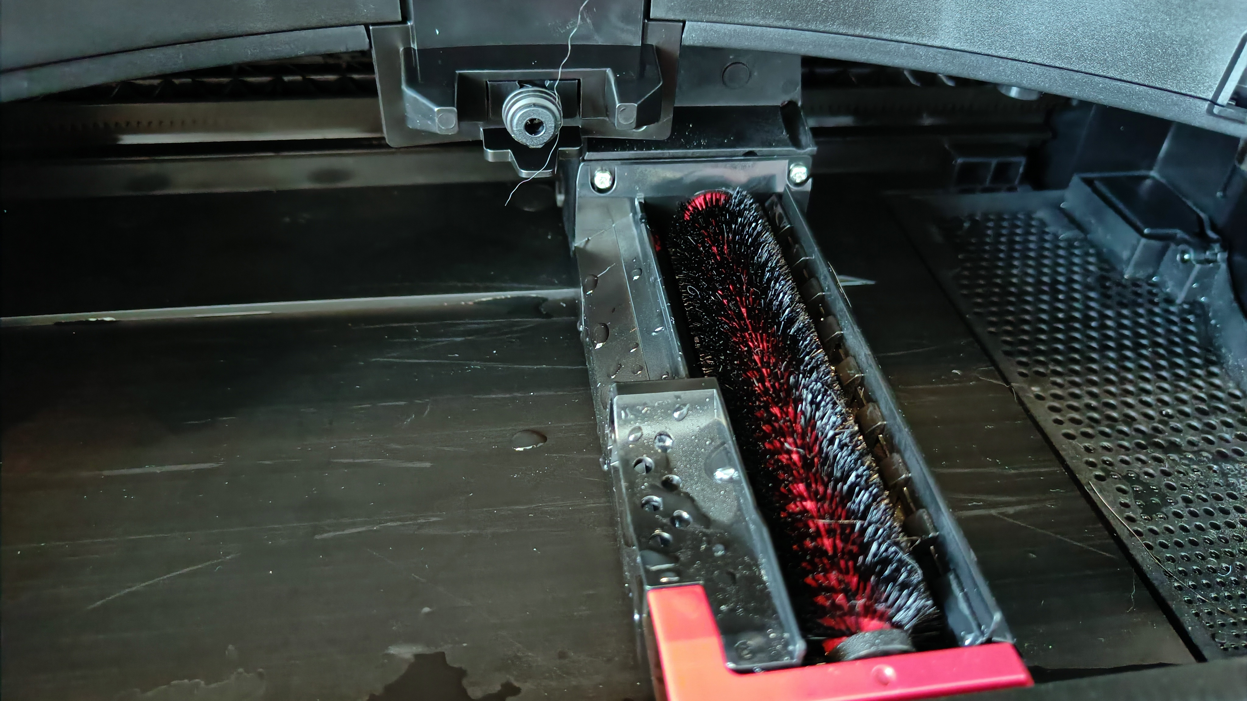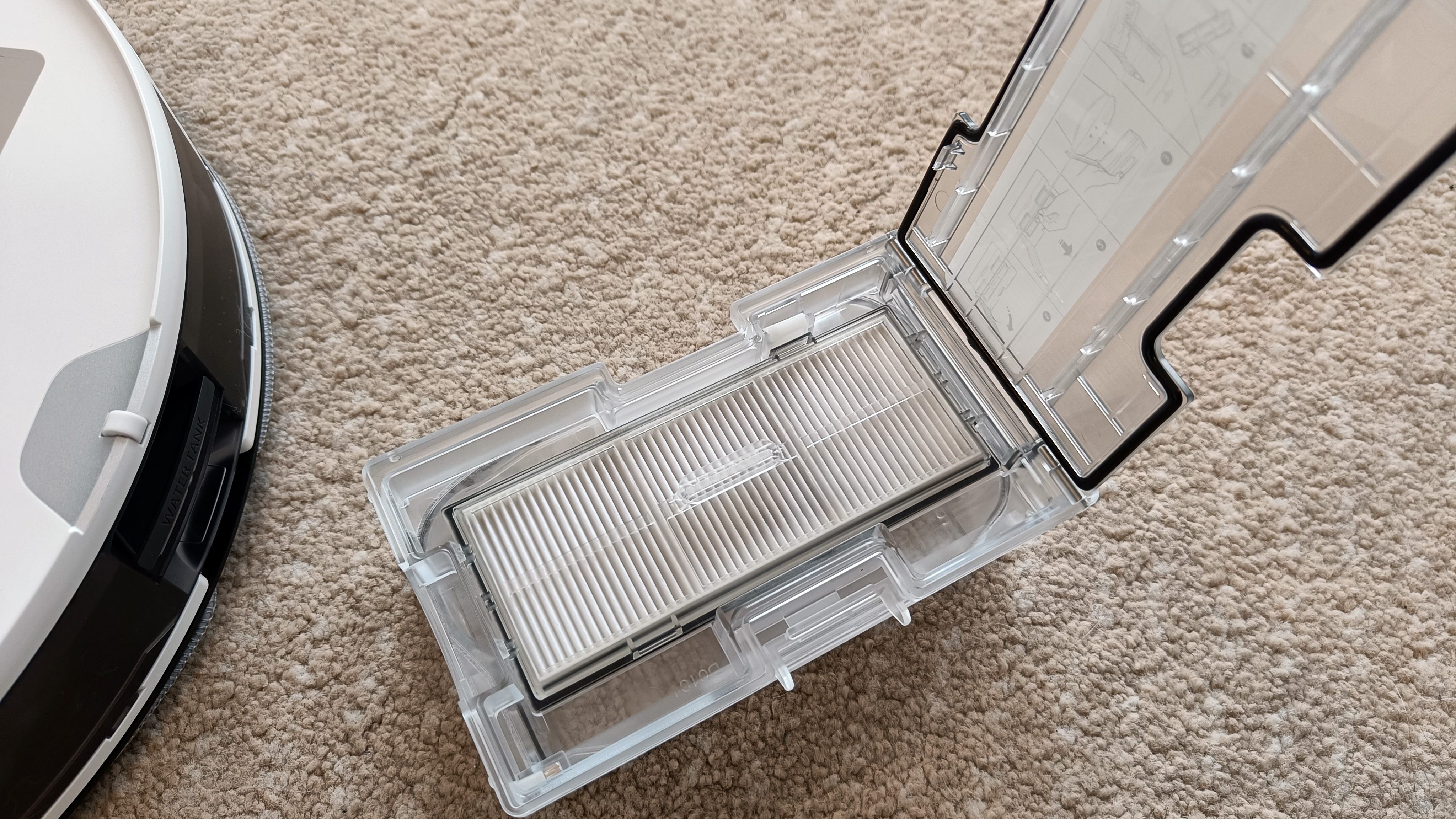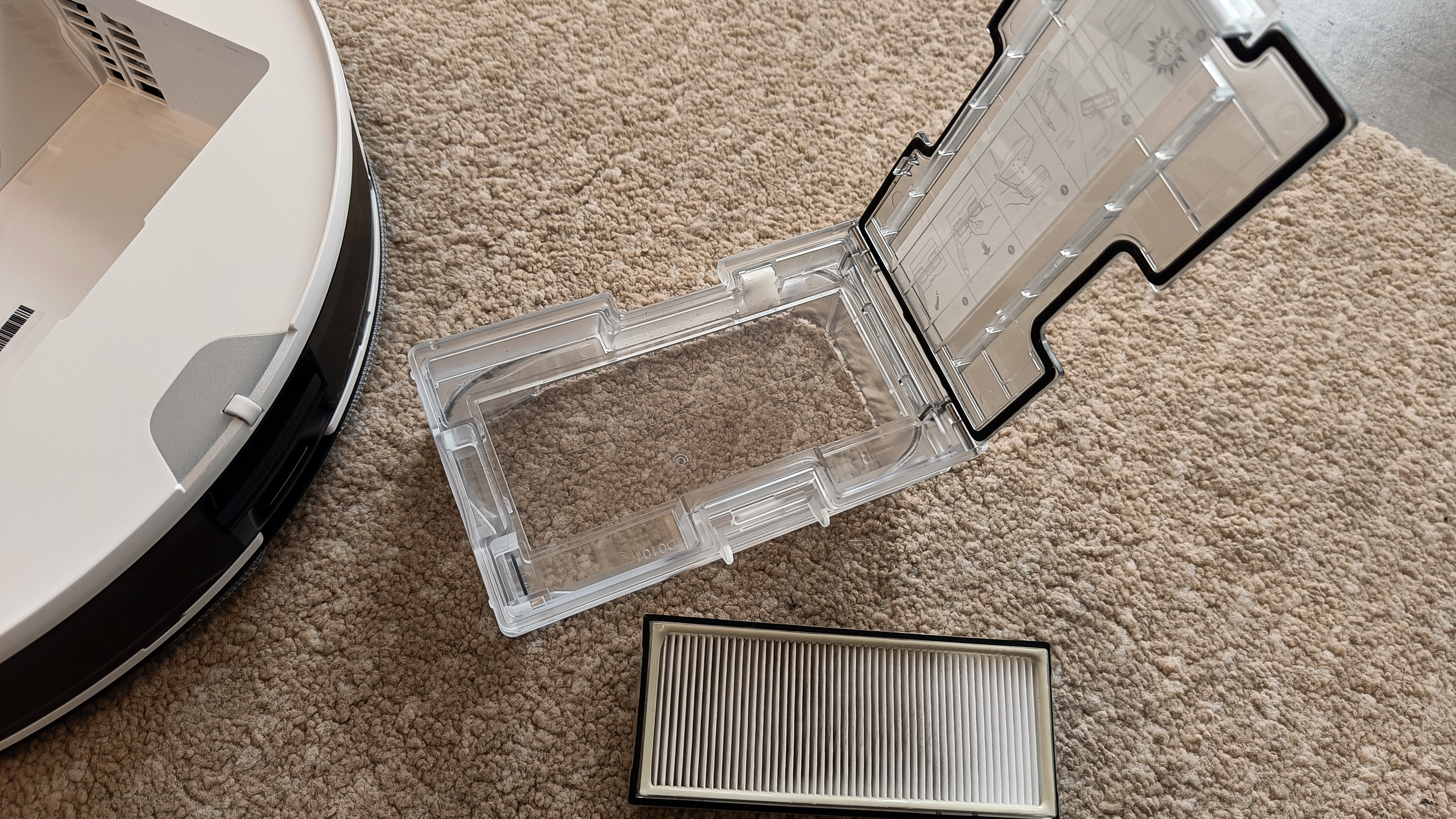 Der Rest ist gleich: Vorn gibt es drei mechanische Bedientasten, fast mittig oben den Laserturm und der hintere Teil der Oberseite lässt sich wieder aufklappen. Darunter versteckt sich der zu den anderen S7-Modellen mit Absaugstation kompatible Staubbehälter. Der Wassertank – hier nur zum MaxV kompatibel, da er von der Ultra-Reinigungsstattion selbstständig wieder mit Wasser befüllt wird – ist erneut hinten in den Sauger integriert. Der größte Unterschied zum teureren MaxV ist die Front, denn die verzichtet auf das Kameramodul und die beiden gekreuzten Laser, die den Bereich direkt vor dem Saugroboter vermessen. Auch die "Stirnlampe" des MaxV zum Ausleuchten der Szenerie für die Kamera gibt es beim Pro nicht. Die orangefarbenen Akzente – etwa im Inneren des Laserturms – des S7(+) entfallen, sie werden durch gediegenes Schwarz ersetzt. Insgesamt wirkt der neue Sauger dadurch trotz gleicher Form und Verarbeitungsqualität noch hochwertiger.