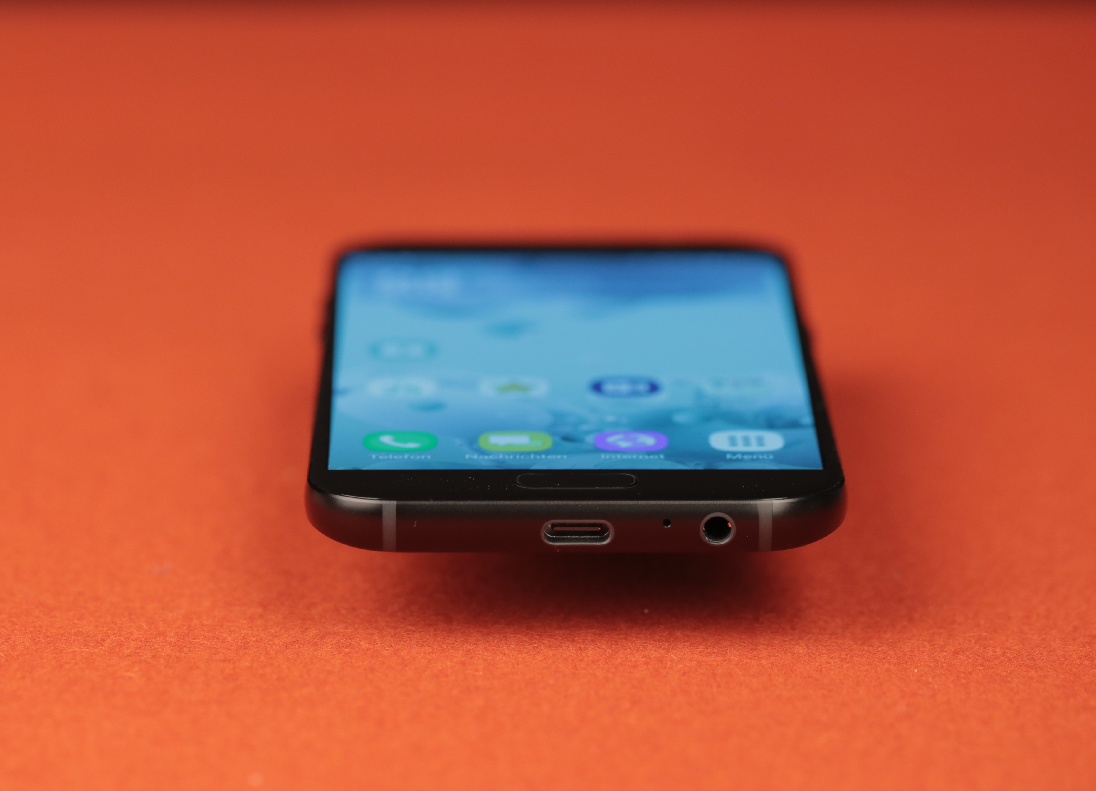 Das Galaxy A5 sieht nicht nur gut aus, es liegt auch sehr angenehm in der Hand. Das liegt neben dem passenden Gewicht vor allem an den abgerundeten Seiten. Die Rundung beginnt beim Display und endet auf der Glas-Rückseite. Die Verarbeitung ist hochwertig: Die Spaltmaße sind sehr gleichmäßig und das Gehäuse wirkt äußerst stabil. Auch starkem Druck widersteht das Galaxy A5 ohne Probleme. Das muss auch so sein, schließlich hat das Smartphone die IP68-Zertifizierung. Das Handy ist somit gegen Staub und Feuchtigkeit geschützt. Zwar übersteht es auch kurzes Untertauchen, zum Schnorcheln oder Schwimmen ist es aber nicht geeignet. Unterhalb des Displays sitzt der Homebutton mit integriertem Fingerabdruck-Sensor. Die Lautstärketasten sitzen auf der linken, der Power-Button auf der rechten Gehäuseseite. Die USB-Type-C-Ladebuchse und der klassische Kopfhörerausgang sind auf der Unterseite untergebracht. Die Linse und der LED-Blitz der Hauptkamera stehen nicht über, so dass unser Testgerät absolut plan aufliegt.
