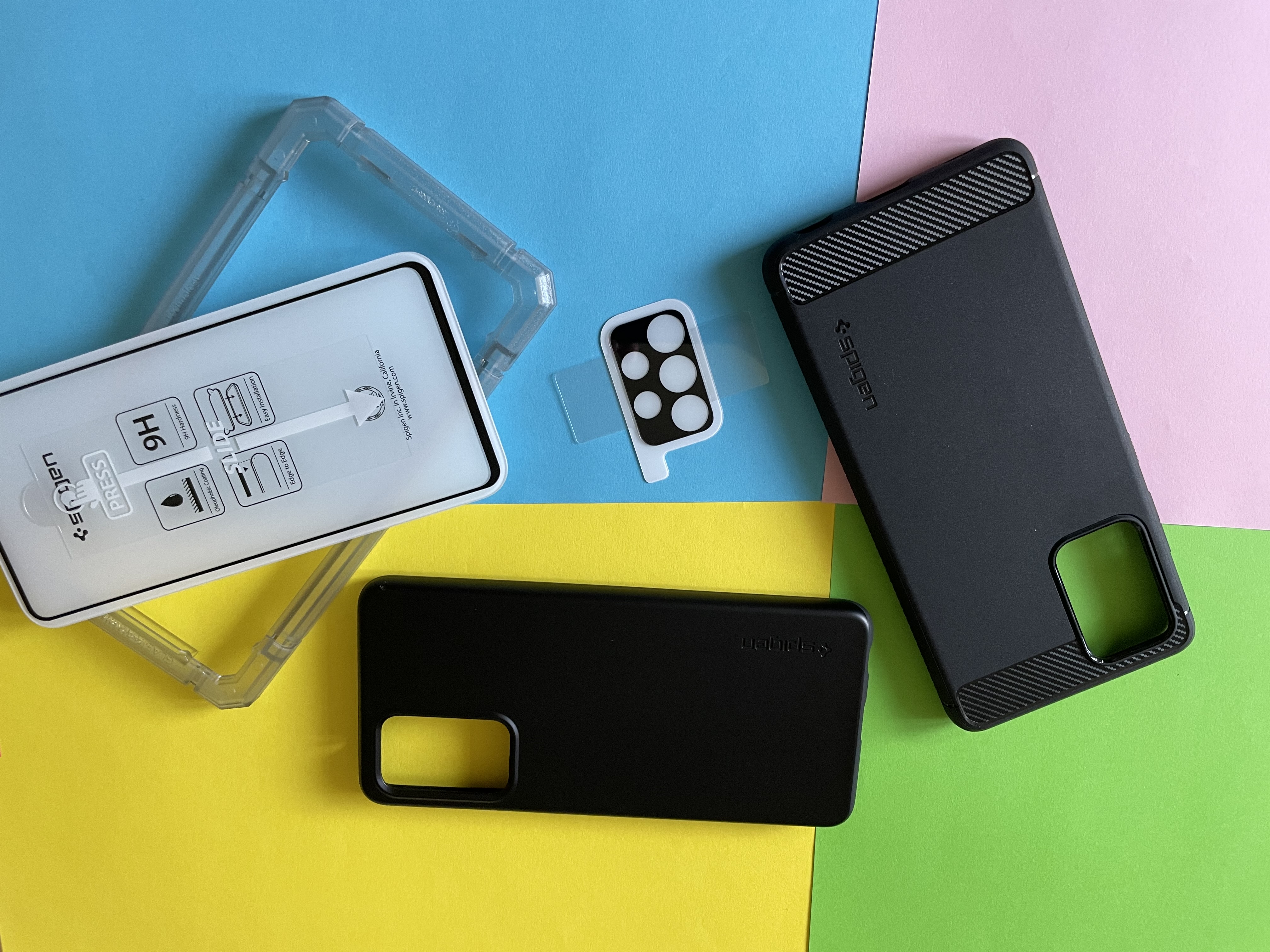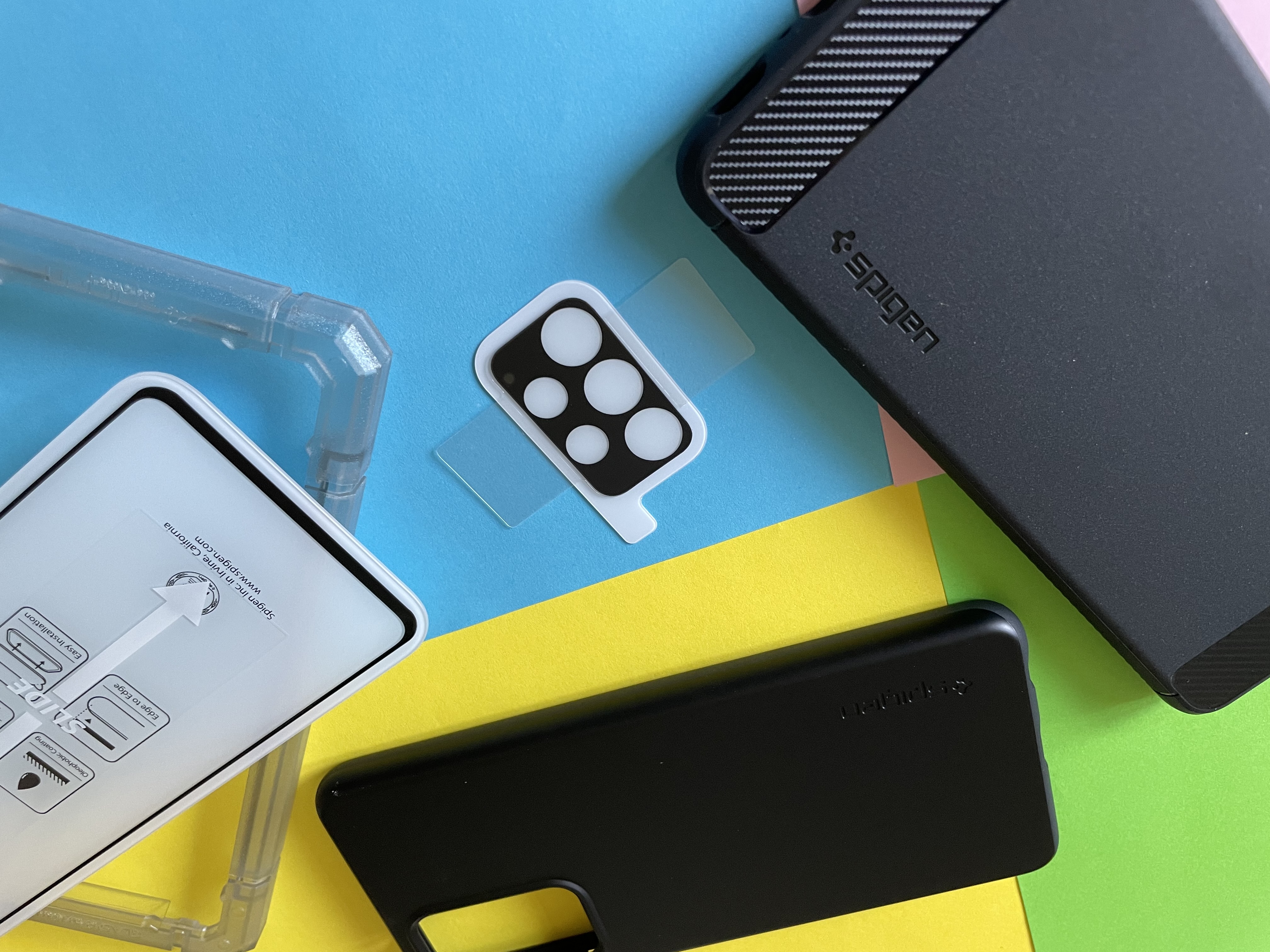 Als Zubehör empfehlen wir eine Schutzhülle – dann stört auch das eher unspektakuläre Plastik auf der Rückseite nicht so sehr. Besonders überzeugt haben uns die Schutzhüllen von Spigen, die auf Amazon angeboten werden und das Smartphone widerstandsfähig machen. Neben Schutzhüllen von Samsung selbst und weiteren Drittanbietern empfiehlt sich eine Schutzfolie für das Display. Eine Übersicht guter Hüllen und Displayschutzfolien haben wir an anderer Stelle zusammengefasst.