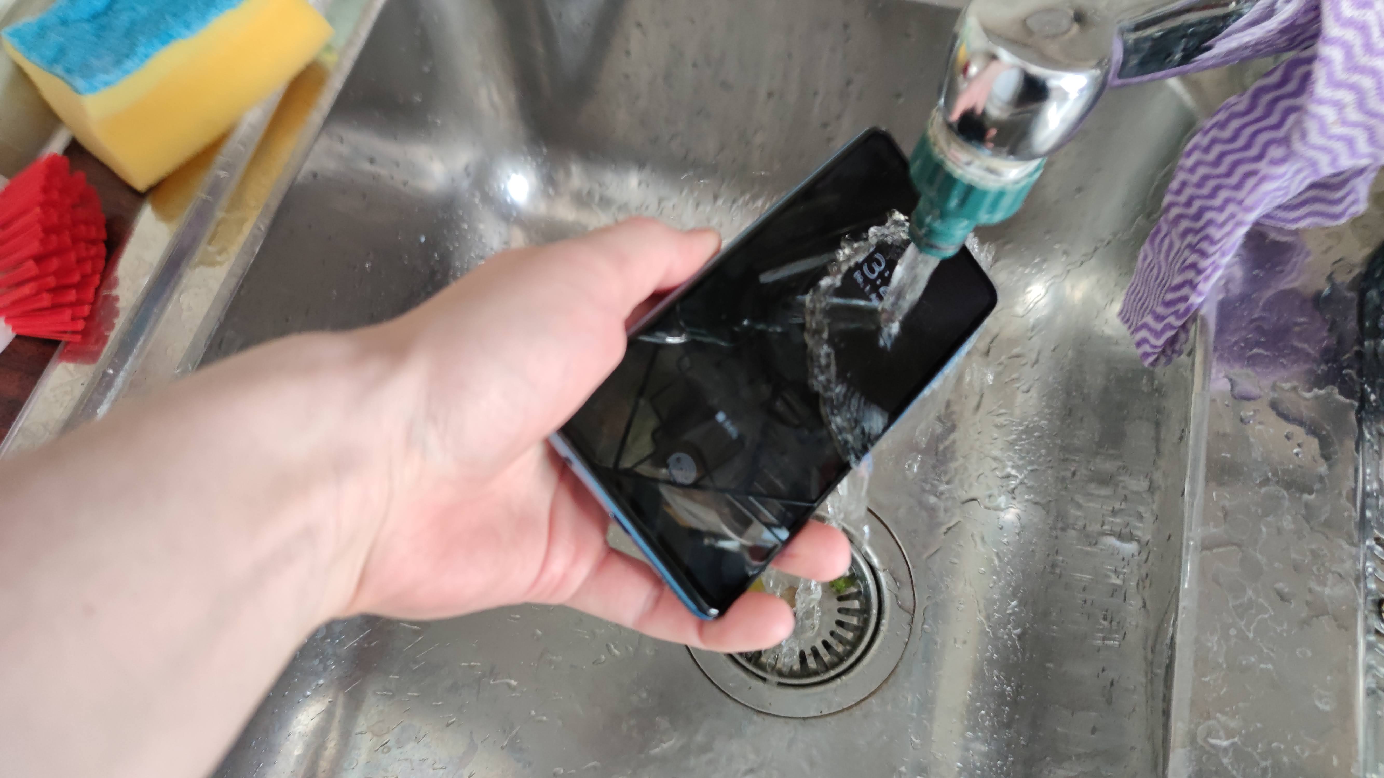 Sehr erfreulich: Dank IP67-Zertifizierung überlebt das Smartphone sogar, wenn es sprichwörtlich ins Wasser fällt. In dieser Preisklasse ist ein entsprechender Schutz nicht selbstverständlich. So gut die inneren Werte sind, das Äußere überzeugt uns mit der Kunststoffabdeckung auf der Rückseite nicht ganz, auch der Rand um das Display ist relativ groß.