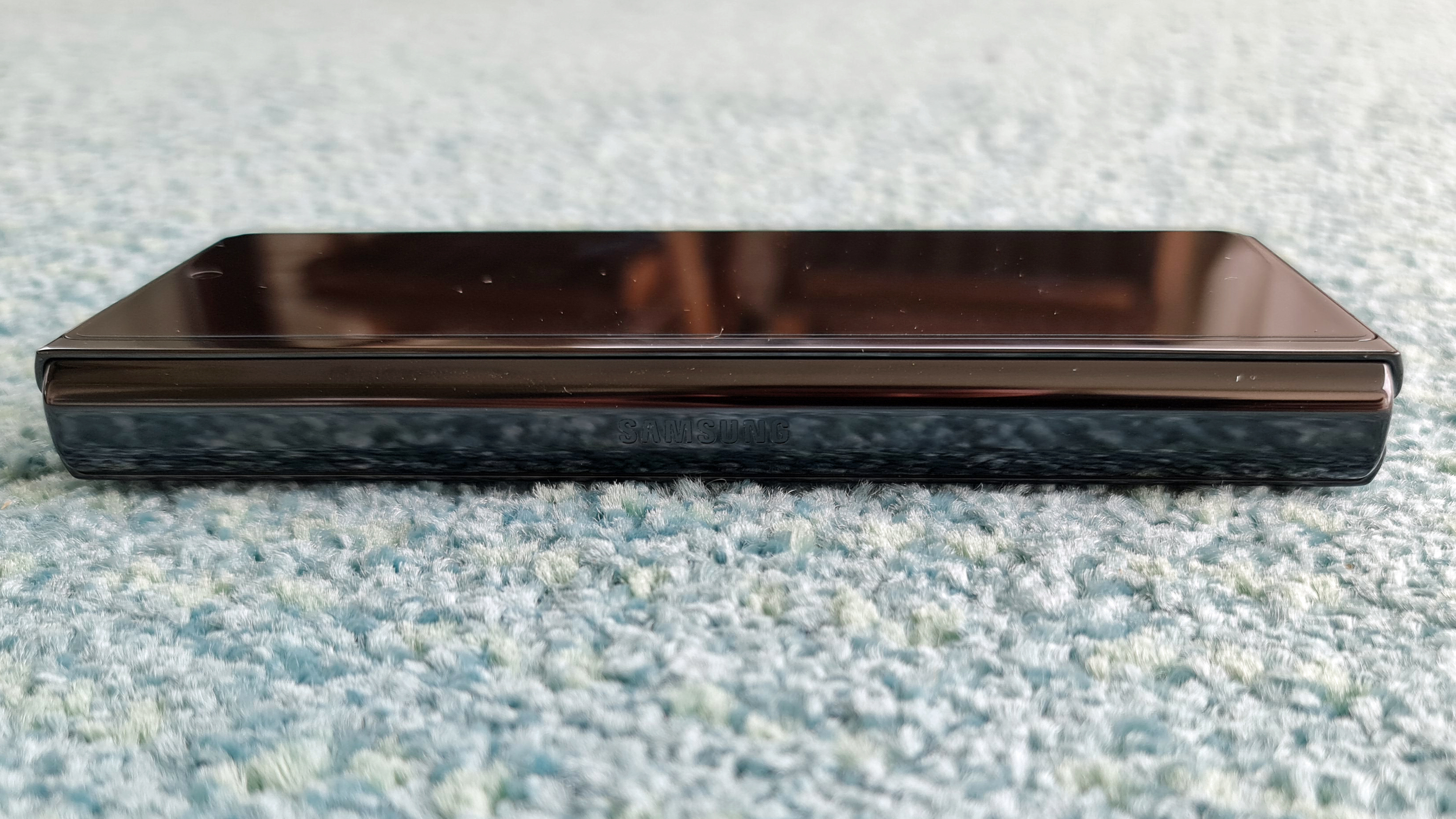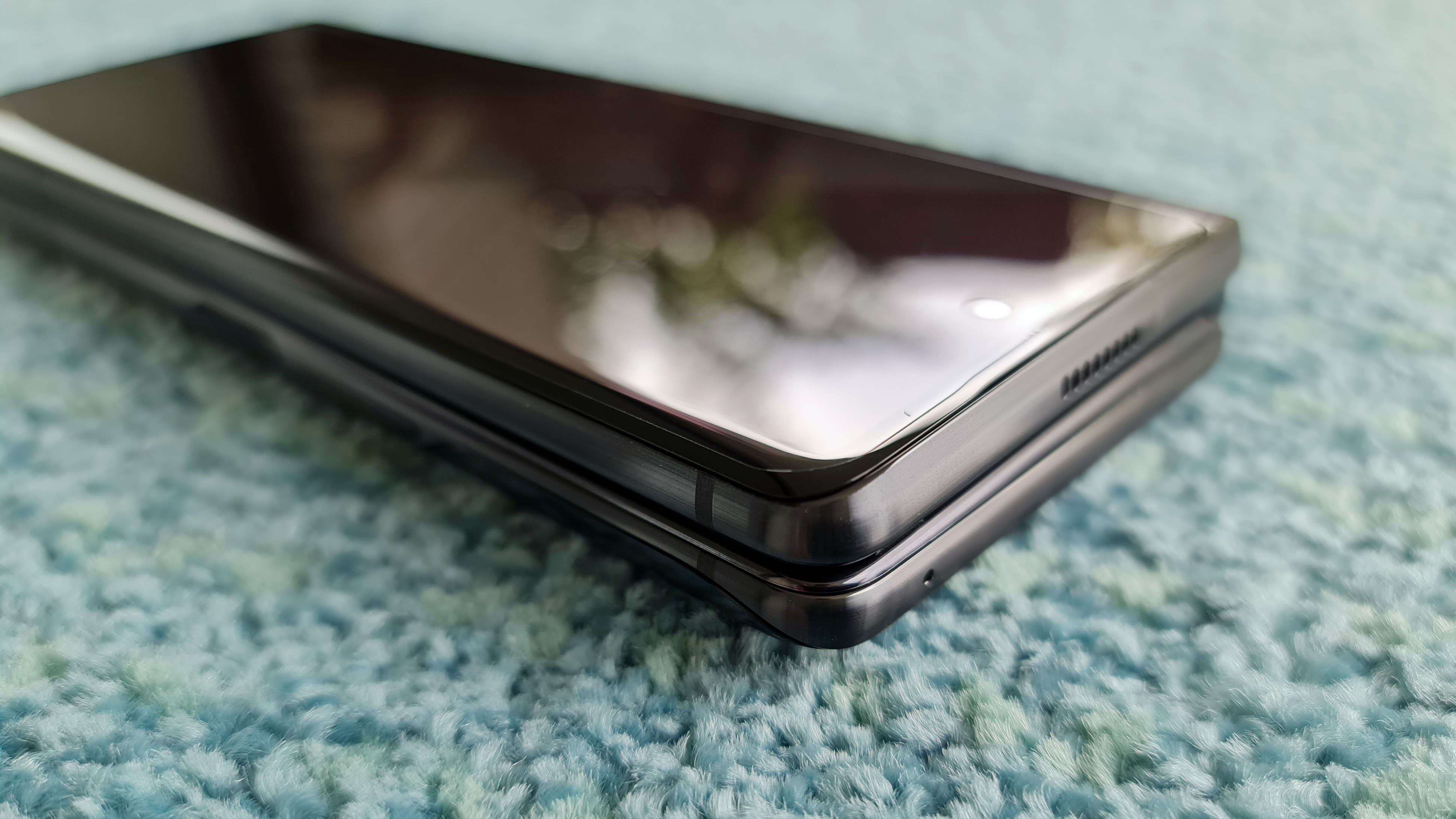Samsung verwendet für das Gehäuse des Smartphones Invictus-Glas von Corning, die Oberfläche des faltbaren Screens besteht hingegen aus einer selbstentwickelten Mischung aus Glas und Kunststoff. Sie fühlt sich mehr als zuvor nach Glas an und soll auch deutlich kratzresistenter sein, die Knickstelle sieht und spürt man allerdings wie zuvor. Das ist vor allem bei dunklen Inhalten zu sehen und auch dann gewöhnt man sich schnell daran, sodass der wellige Übergang später kaum mehr auffällt.
