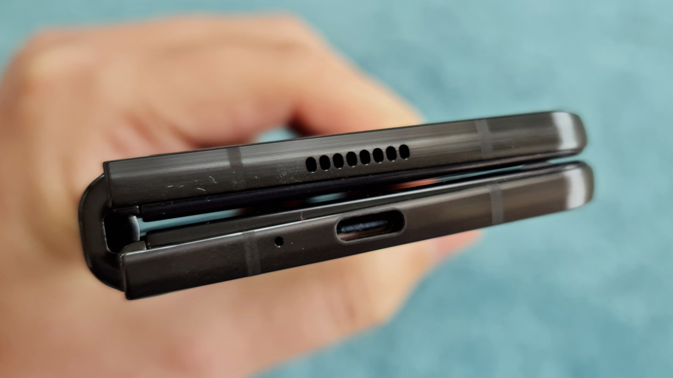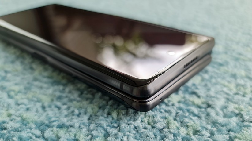 An der Verarbeitung gibt es wie beim Vorgänger schon nichts zu bemängeln. Unregelmäßige Spaltmaße findet man genauso wenig, wie ein knirschendes Scharnier. Das wirkt wie schon beim ersten Fold (nach dessen anfänglichen Problemen) sehr langlebig und robust. Trotz seiner potenziellen Fragilität wegen Glas als Werkstoff gilt das für das ganze Smartphone – auch wegen des Rahmens aus Aluminium mit den perfekt eingelassenen Antennenfugen.