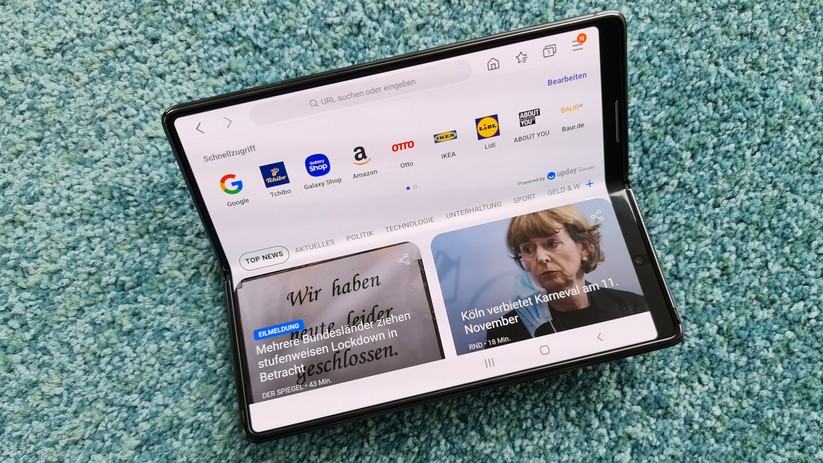 Generell haben Nutzer die Wahl zwischen Tablet- und Smartphone-Modus. Im Tablet-Modus sind Icons kleiner, entsprechend passt mehr auf den Bildschirm. Der Smartphone-Modus ist wie bei anderen Samsung-Smartphones. Einige Apps wie Outlook oder Spotify verwenden zudem automatisch im aufgeklappten Modus die Tablet-Ansicht, um mehr Informationen darstellen zu können. Auf unserem Testgerät ist Android 10 mit Sicherheits-Patch vom 1. Oktober installiert.