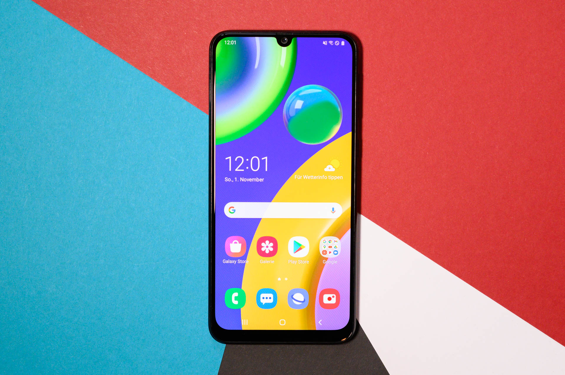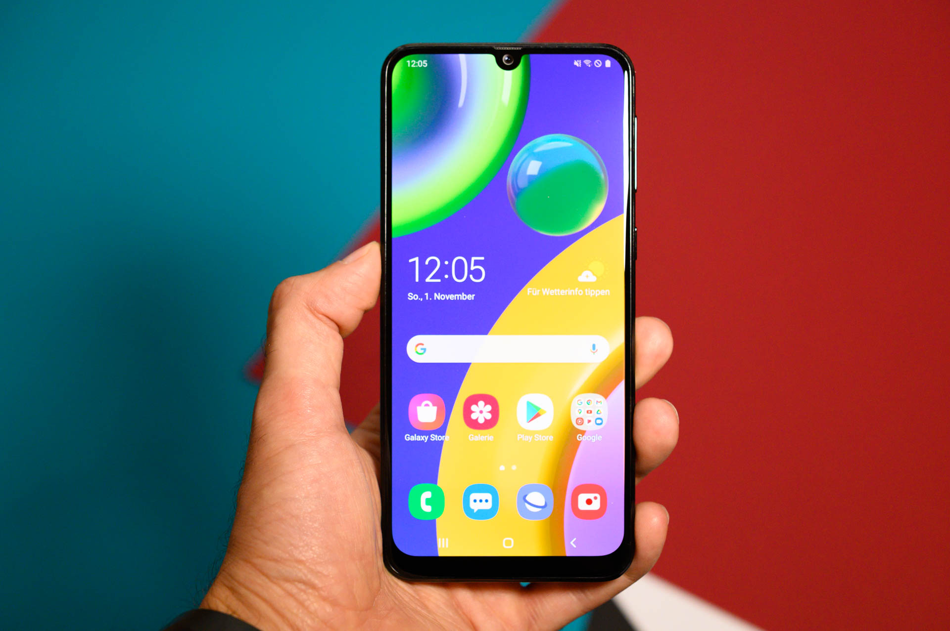 Für das Galaxy M21 setzt Samsung auf ein Infinity-U-Display – also einen Bildschirm mit einer oben mittig eingefassten Kamera. Der Rahmen ist an dieser Stelle entsprechend schmal, am Fußende ist er jedoch umso breiter. Der Bildschirm hat eine Diagonale von 6,4 Zoll. Trotz Budget-Klasse verbaut Samsung ein OLED-Panel, das mit kräftigen Farben, hervorragendem Kontrast und überraschend heller Strahlkraft punkten kann. Die Auflösung von 2.340 x 1.080 Pixel (402 PPI) geht in Ordnung, die Anzeige ist scharf. In dieser Preisklasse ebenfalls zu verschmerzen ist die gewöhnliche 60-Hertz-Bildrate – nur wenige Smartphones um 200 Euro bieten 90 Hertz oder mehr.