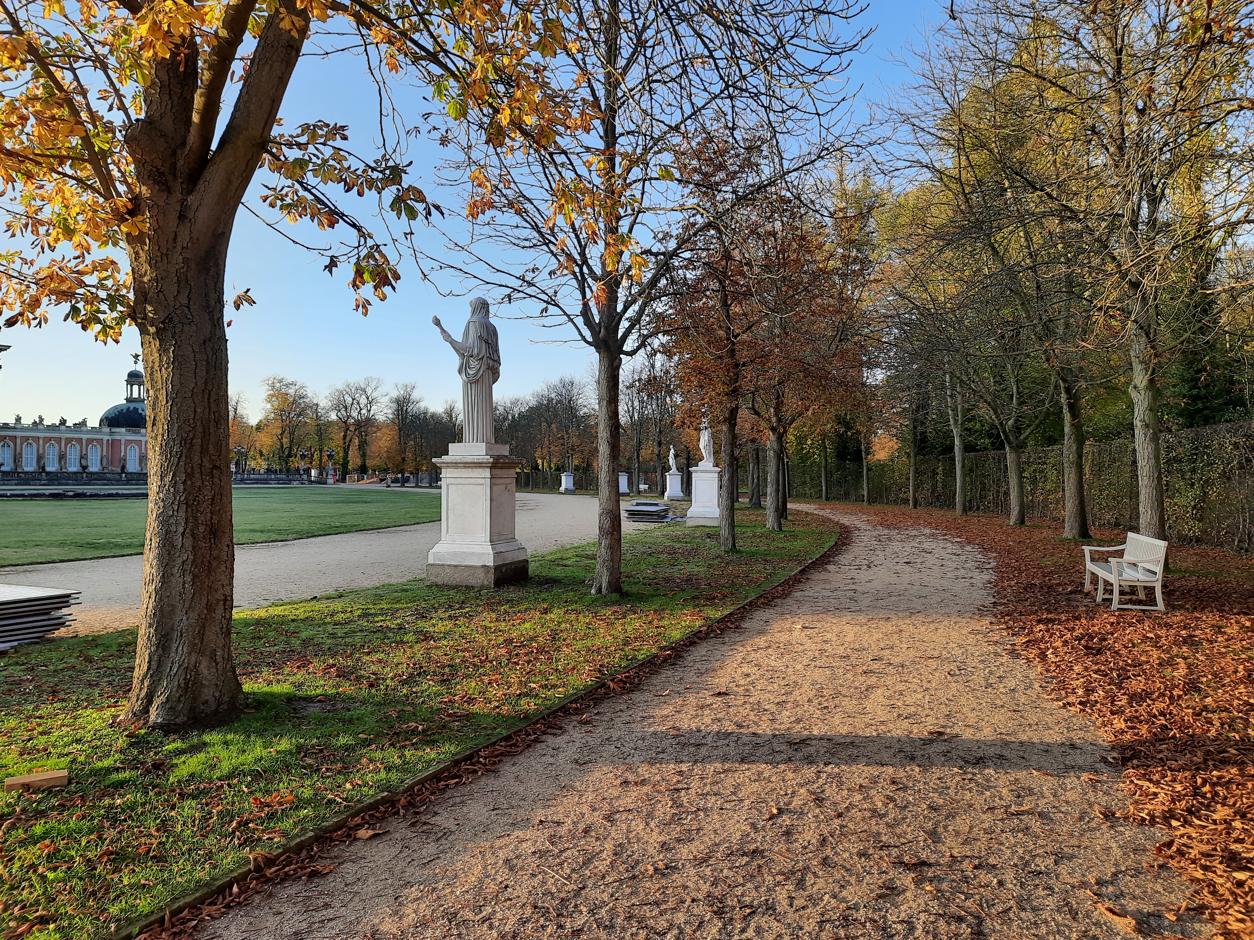 Auf dem tollen OLED-Display des Galaxy M21 werden die Aufnahmen farbenfroh und kontraststark präsentiert, auf dem Großbildschirm zeigen sich aber Schwächen. So sind die Fotos eben gar nicht so prächtig, sondern im Gegenteil mitunter ziemlich fahl. Eine lichtdurchflutete und durch das Herbstlaub eigentlich knallbunte Parkanlage erscheint noch halbwegs lebendig, lässt aber bereits Nuancen in den Farben vermissen. Schon bei etwas tieferem Sonnenstand verblassen die Farben merklich, durch die kühle Tönung wirken sie bisweilen eher etwas künstlich. Besonders deutlich wird das beim Einsatz der Ultraweitwinkelkamera, die unter anderem bei Weißabgleich und Farbwiedergabe anders kalibriert zu sein scheint als die Standardkamera.