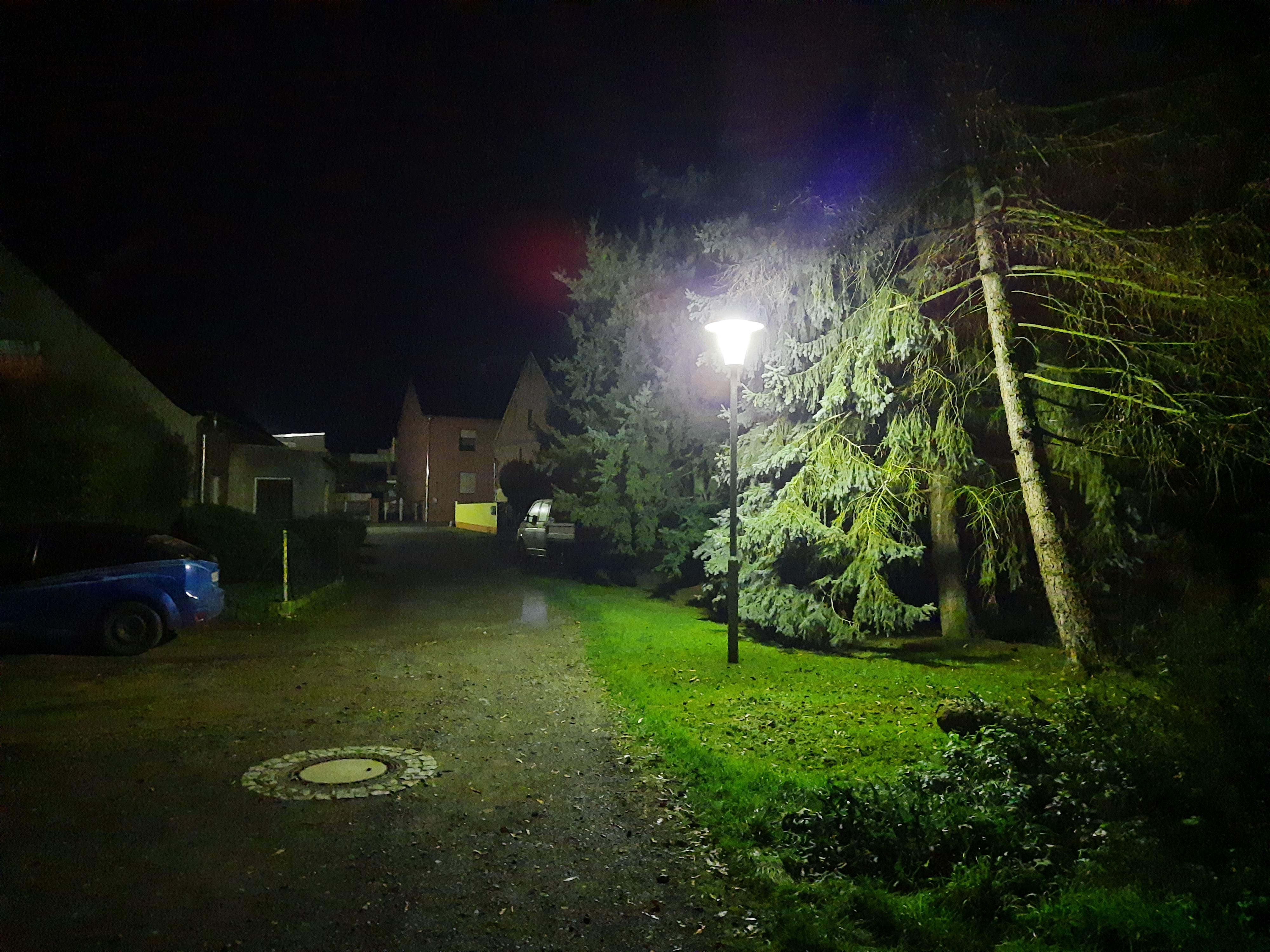 Die Bilddynamik des Hauptmoduls ist nicht zuletzt dank Auto-HDR-Funktion vorzeigbar, auch die Schärfe geht – bis auf die leicht ausgeprägten Lichtsäume – in Ordnung. Im Ultraweitwinkel sieht die Sache anders aus, vor allem in den Dunkeltönen saufen Informationen ab und wirken matschig. Die Schärfe fällt gegenüber der Standardkamera ab, dazu gesellt sich ein auch bei Tageslichtaufnahmen merkliches Bildrauschen. Besonders deutlich werden all diese Schwächen bei Nachtaufnahmen, die unterbelichtet, farblos und unscharf daherkommen. Die Hauptkamera schlägt sich in dieser Disziplin zwar etwas besser, das starke Rauschen lässt die Fotos aber mehr zweckmäßig denn wirklich ansehnlich erscheinen.