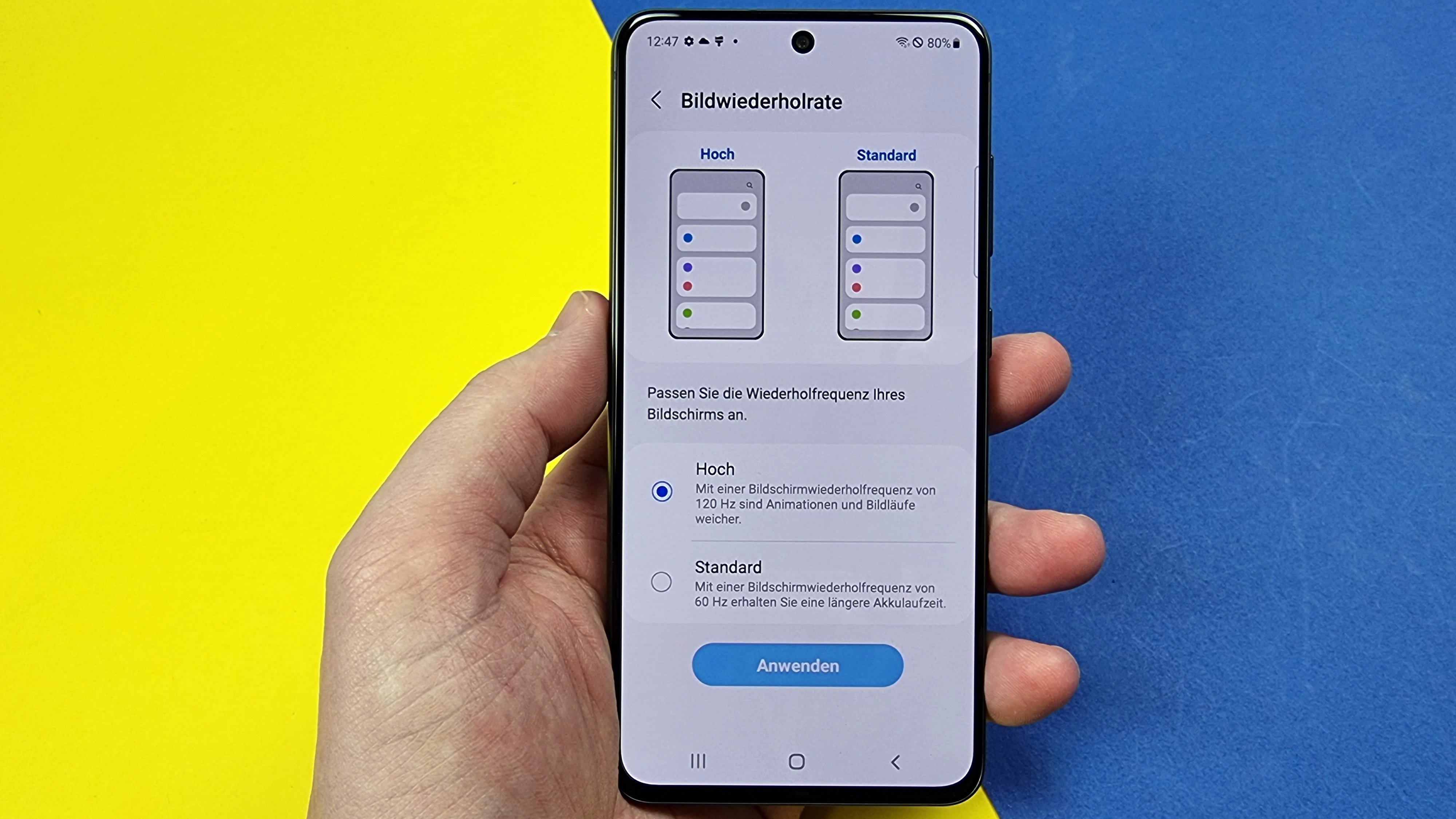 Bei der Darstellungsqualität liegt das neue FE-Modell in etwa auf S21- oder S21+-Niveau. Die hohe Helligkeit von knapp 700 cd/m² im Automatikmodus und ungefähr 400 cd/m² im manuellen Modus liegen etwas unter Ultra-, aber in etwa auf Augenhöhe mit den anderen beiden S21-Modellen. Das gilt für die gesamte Darstellungsqualität: Schwarzwert, Farbwiedergabe, Kontraste – alles richtig gut, vielleicht sogar besser als bei den beiden kleinen S21-Modellen außer dem Ultra. Echte Kritik fällt da schwer.