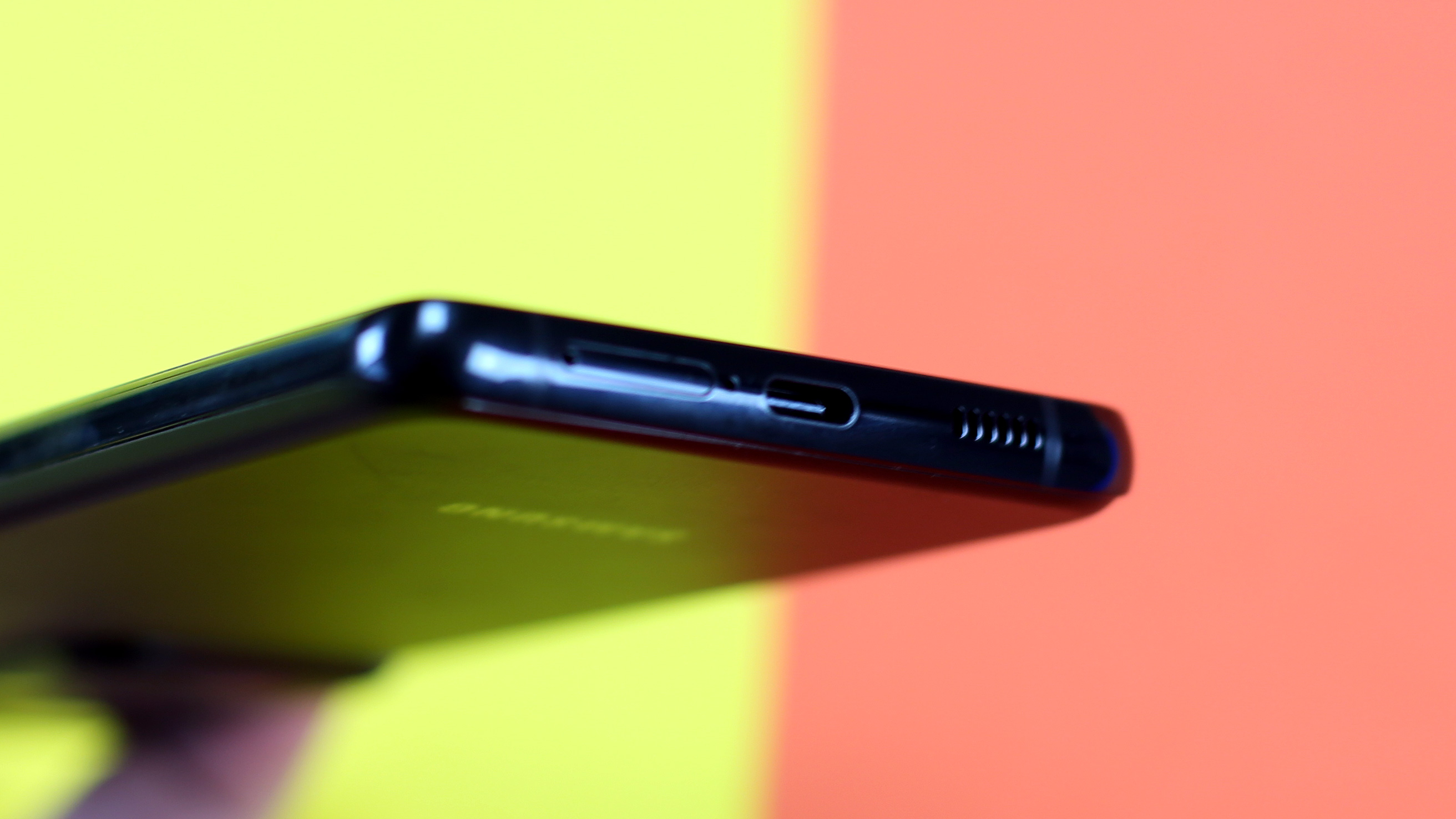 Die matte Rückseite sorgt nicht nur dafür, dass Fingerabdrücke kaum sichtbar sind, sondern auch für etwas besseren Grip – das S21 Ultra wirkt nicht ganz so rutschig wie andere Glas-Smartphones. Außerdem ist es dank der seitlichen Rundungen der Front und der besseren Gewichtsverteilung im Vergleich zum Vorgänger trotz höherem Gewicht sogar handlicher als das S20 Ultra. Die Front wird wie immer vom riesigen Bildschirm dominiert, das seitlich von kaum sichtbaren, oben und unten von minimal unterschiedlich, aber generell sehr schmalen Rahmen umfasst wird. Die Frontkamera sitzt mittig am oberen Display-Rand in einer Punchhole-Notch. Durch die gebogenen seitlichen Ränder wirkt das Ultra-Modell hochwertiger als S21 und S21+ mit weitestgehend gerader Panel-Oberfläche. Zu störenden Reflexionen kommt es dabei kaum, da die Rundung nur weit außen und in überschaubarem Radius platziert wurde. Wie der Vorgänger ist auch das S21 Ultra wieder IP68-Zertifiziert.
