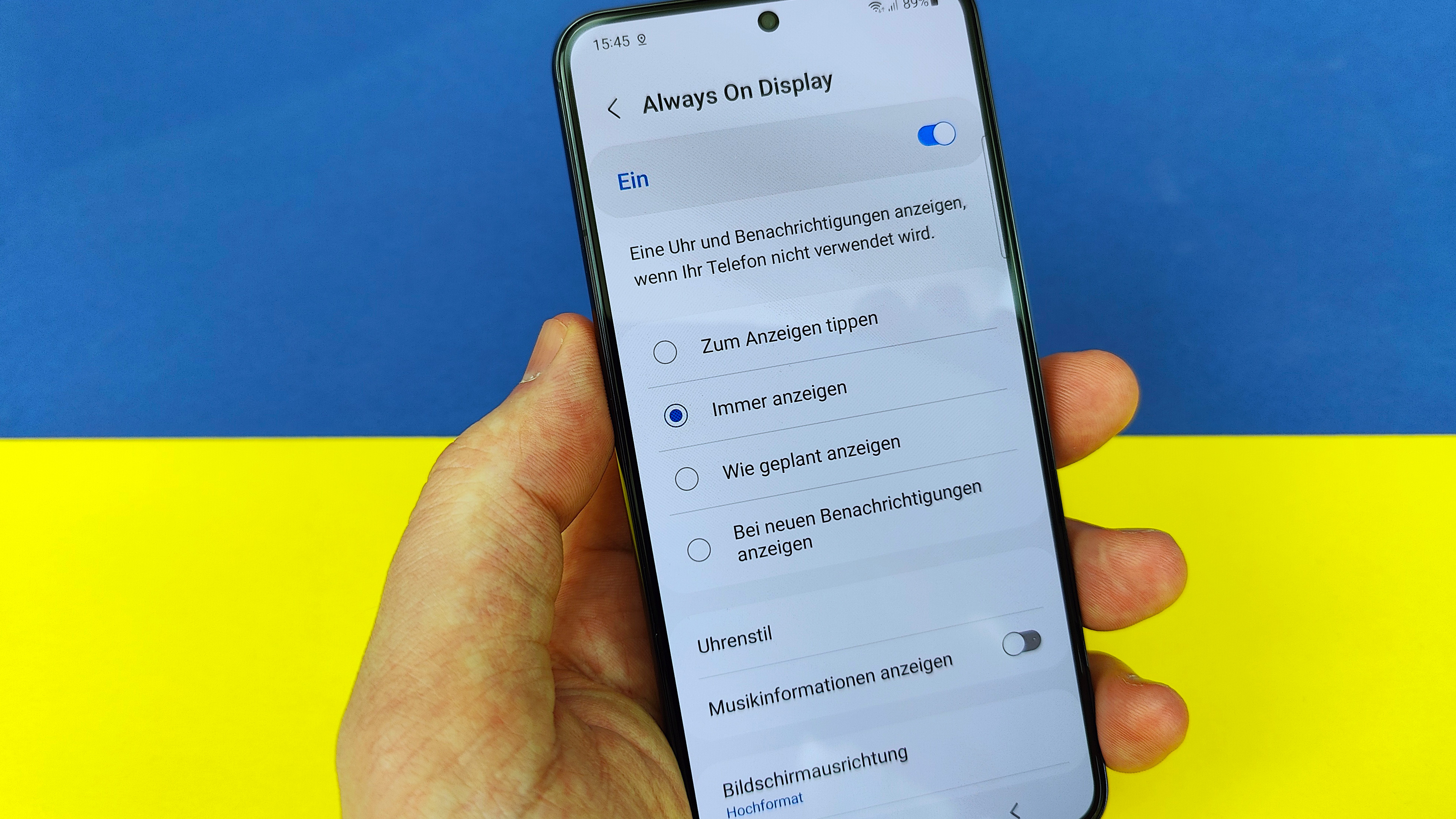 Die haben wir im manuellen Modus beim S22 ebenfalls mit 700 cd/m² gemessen, im Automatikmodus bleibt das kleine S22 aber mit 870 cd/m² deutlich hinter dem Ultra-Modell mit 1350 Candela zurück. Schwierigkeiten bei der Ablesbarkeit sollte aber auch beim kleinen Topmodell niemand haben, selbst in direkter Sonneneinstrahlung zumindest nur sehr eingeschränkt. Insgesamt ist der Screen des S22 vorbildlich und bietet weitgehend die gleichen Optionen wie die manuelle Helligkeitsanhebung und das tolle Always-on-Display. Nur bei der 120-Hz-Wiedergabe ist das S22 leicht im Nachteil, hier reicht die adaptive Regelung nach Angaben des Herstellers nur von 48 bis 120 Hz.