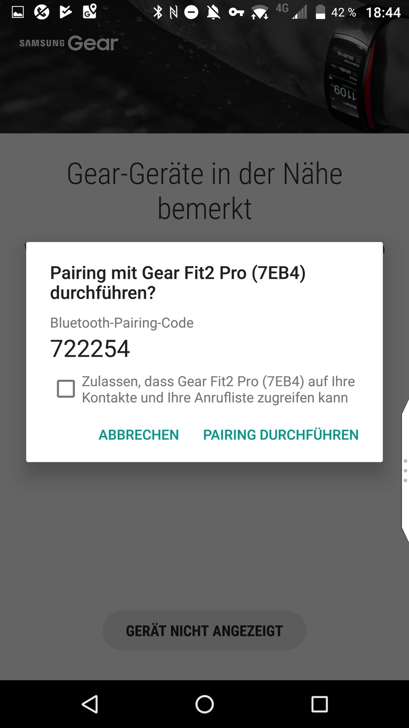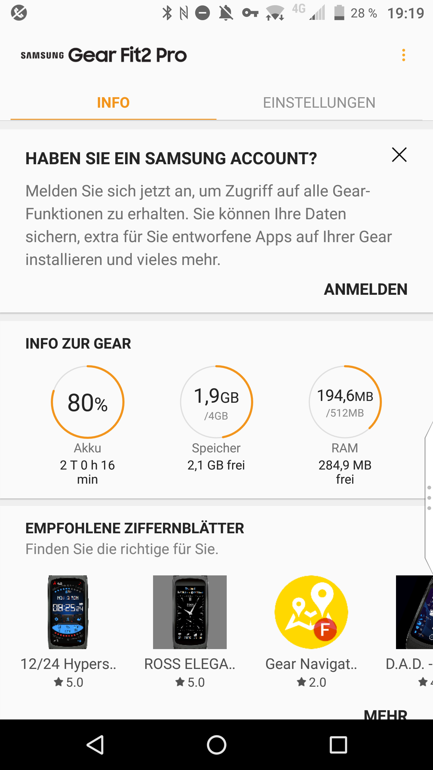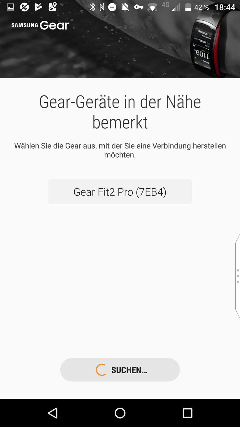 Die gute Nachricht: Die Gear Fit Pro 2 lässt ohne Anmeldung oder externe App nutzen – man kann also direkt nach dem Auspacken loslegen. Eine Smartphone-App ist aber spätestens dann notwendig, wenn man Dinge wie Schlaf oder Trainingsfortschritte trackt und analysiert. Dann startet eine kleine Odyssee: Zunächst sollten wir die Samsung Gear App installieren, diese verlangt dann nach einer Zusatz-App für die Gear Fit 2 Pro und, damit wirklich alle Funktionen zur Verfügung stehen, die Gesundheits-App Samsung Health. Die gute Nachricht: Solange man Daten nicht in die Cloud synchronisieren oder neue Uhren-Designs oder Apps nutzen möchte, braucht man kein Konto – sehr lobenswert.