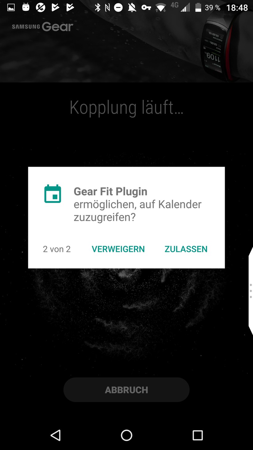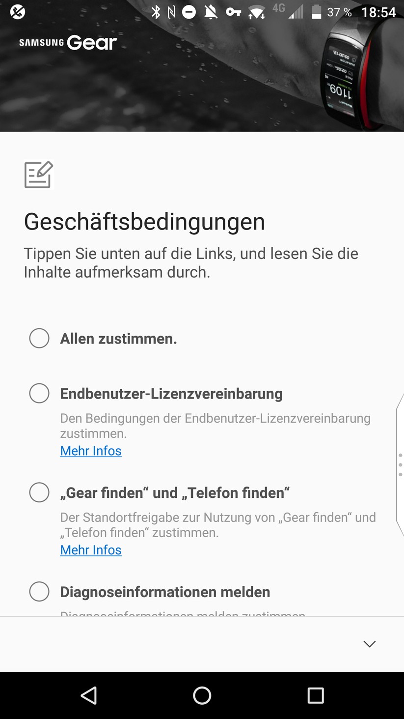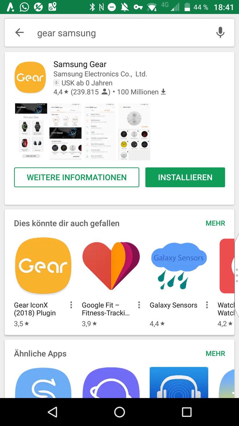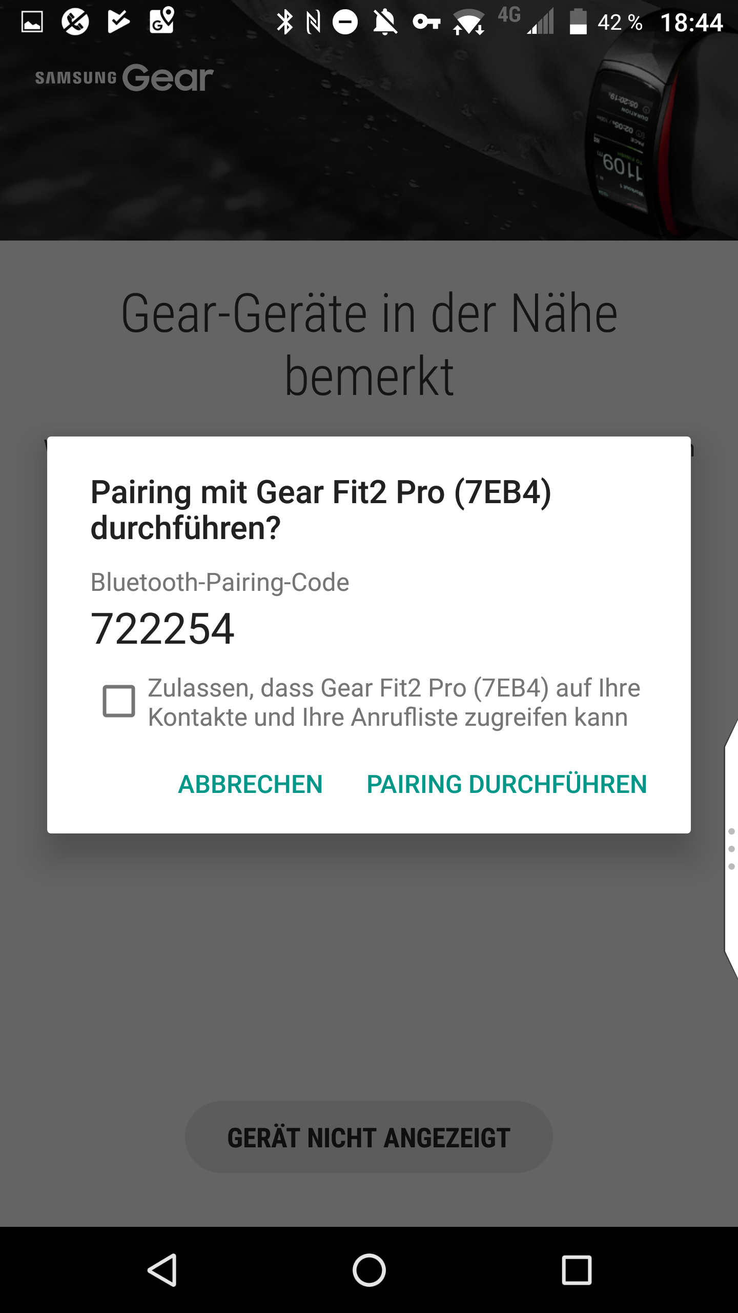 Die gute Nachricht: Die Gear Fit Pro 2 lässt ohne Anmeldung oder externe App nutzen – man kann also direkt nach dem Auspacken loslegen. Eine Smartphone-App ist aber spätestens dann notwendig, wenn man Dinge wie Schlaf oder Trainingsfortschritte trackt und analysiert. Dann startet eine kleine Odyssee: Zunächst sollten wir die Samsung Gear App installieren, diese verlangt dann nach einer Zusatz-App für die Gear Fit 2 Pro und, damit wirklich alle Funktionen zur Verfügung stehen, die Gesundheits-App Samsung Health. Die gute Nachricht: Solange man Daten nicht in die Cloud synchronisieren oder neue Uhren-Designs oder Apps nutzen möchte, braucht man kein Konto – sehr lobenswert.