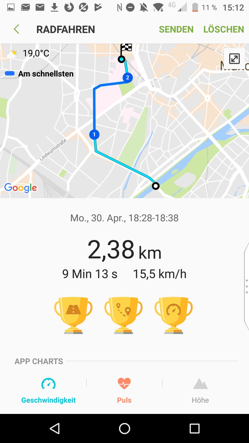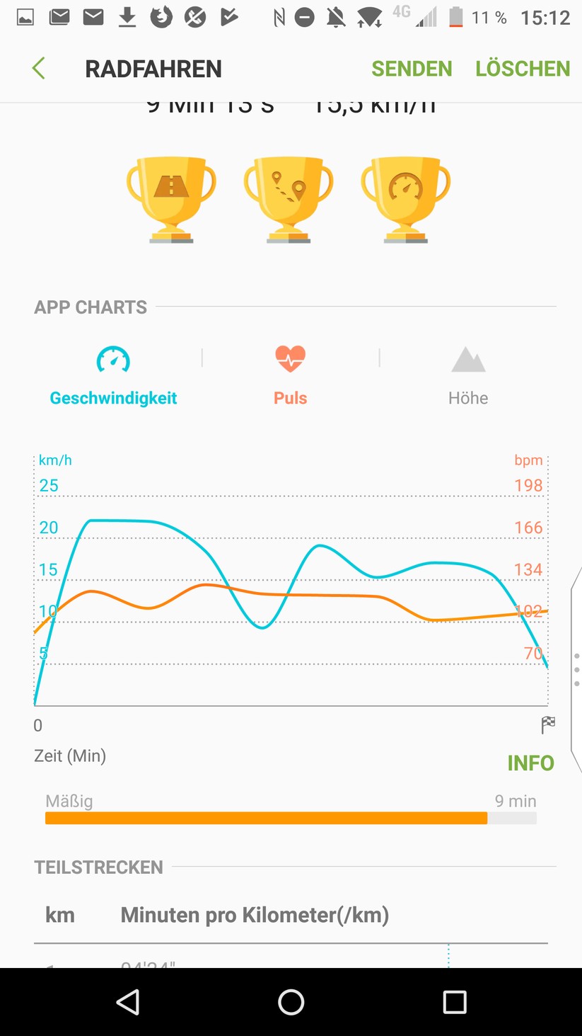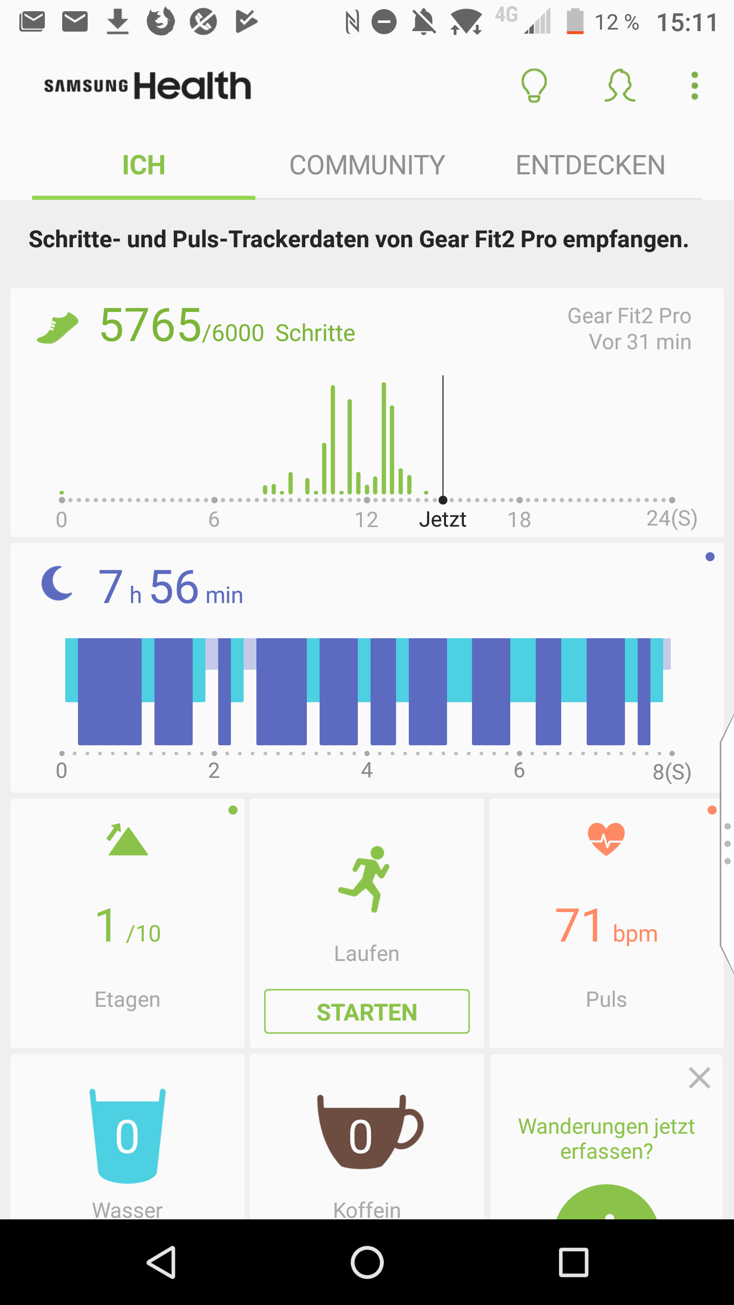 Die eigentliche Samsung Health App gefiel uns sehr gut. Sie ist übersichtlich aufgebaut und bereitet alle Daten des Trackers ansehnlich auf. Als Nutzer kann man sich selbst zusammenstellen, welche Funktionen und Sportarten auf der Startseite hinterlegt werden sollen. Samsung liefert verschiedene Trainingsprogramme mit, etwa für 5-km- oder 10-km-Läufe.